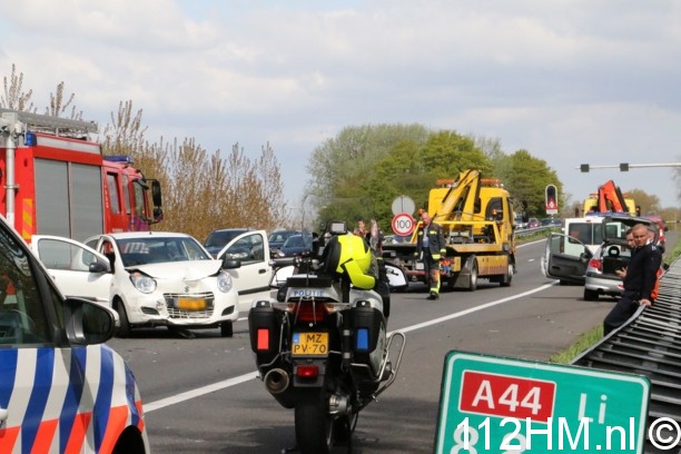 Volgens getuige stond er een file op de snelweg richting Amsterdam, vermoedelijk zag een automobilist dit te laat en botste deze op zijn voorganger. De ambulancedienst heeft twee personen behandeld en met spoed naar het LUMC in Leiden vervoerd. De verkeersdienst van de politie heeft het ongeval onderzocht. Tijdens de hulpverlening, het onderzoek en de berging was de gehele A44 richting Amsterdam afgesloten voor al het verkeer. Vanwege de afsluiting ontstond er al snel een kilometerslange stilstaande file op de A44, ook de lokale wegen stonden al snel vast door automobilisten welk de file wilden ontwijken. Omstreeks vijf uur werd de snelweg weer vrijgegeven door de politie.