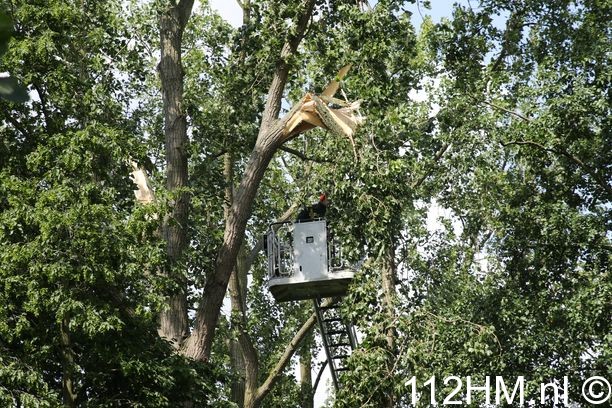 De brandweer is ter plaatse gegaan waarna zij de enorme tak hebben neergehaald en in stukken hebben gezaagd. Hierna is de brandweer weer retour gegaan.