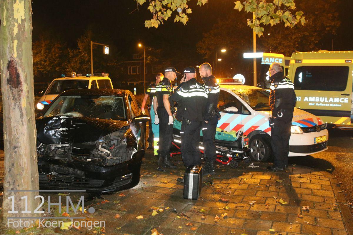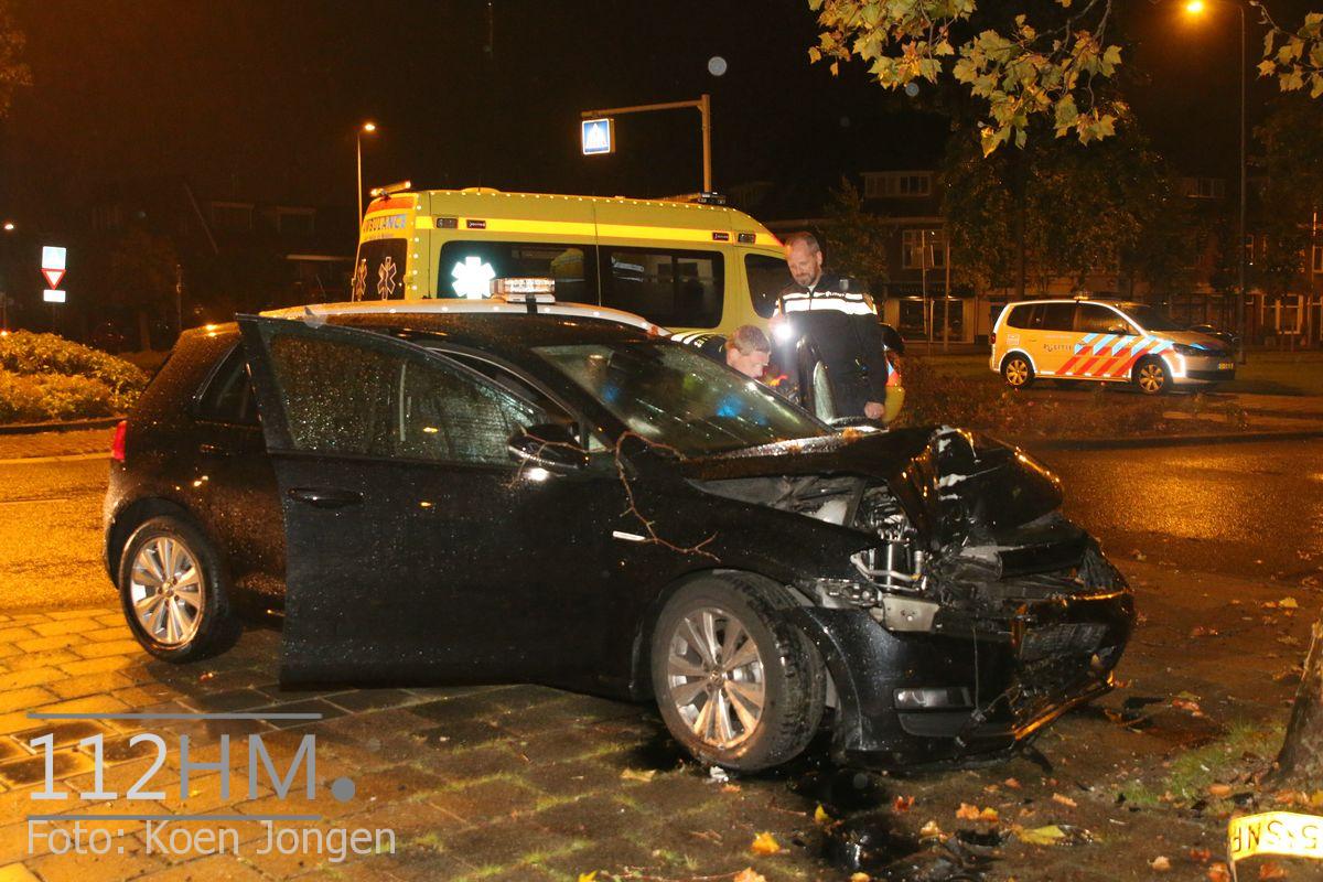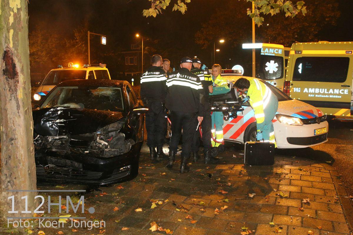 Op de Lammenschansweg, ter hoogte van de kruising met de Koninginnelaan, zagen zij dat de auto tegen een boom aan was gereden. De bestuurder zat nog gewond in zijn auto. Het was duidelijk te zien dat de man zijn been had gebroken, waarschijnlijk door de klap van de aanrijding. Ook was hij met zijn hoofd tegen de voorruit gekomen.
