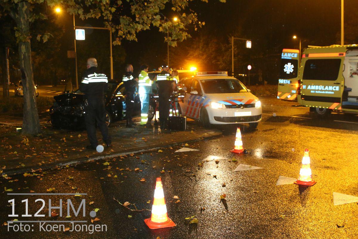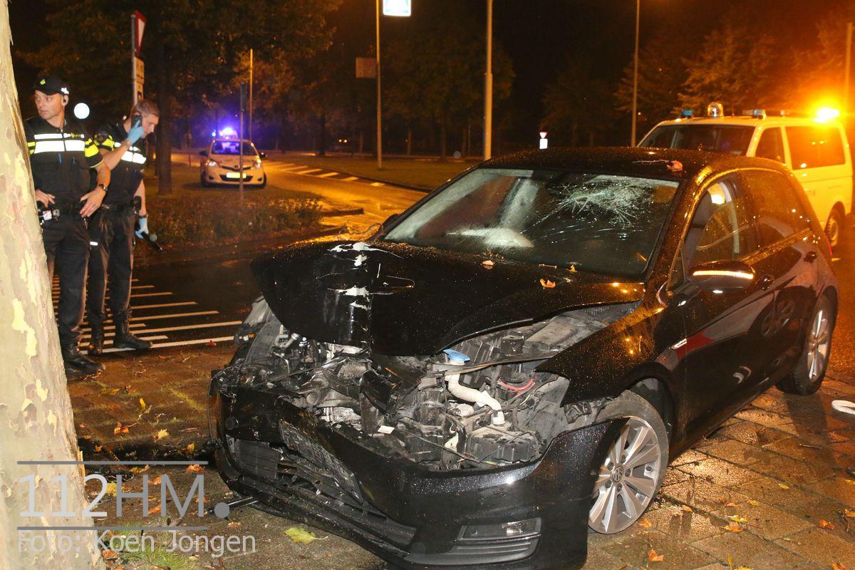 Auto botst met hoge snelheid op boom, bestuurder aangehouden, Lammenschansweg Leiden