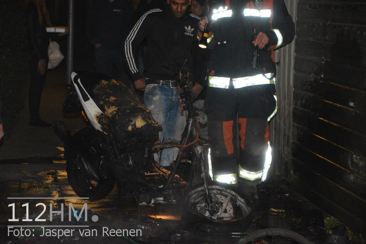Ter plaatse was tijdens het tanken van de scooter wat benzine gemorst en dit vloog in de brand nadat een sigaret er op viel. De eigenaar van de scooter wist de scooter nog net in de poort te zetten maar deze brande volledig uit. Door snel optreden van de brandweer bleef de brand beperkt tot de scooter. Na controle van het naastgelegen schuurtje kon de brandweer retour kazerne.