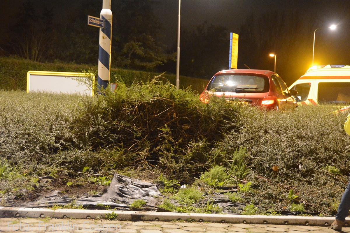 Nieuwerkerk aan den IJssel – Deze avond werden de hulpdiensten gealarmeerd voor een ongeval met letsel op de Schielandweg – N219 in Nieuwerkerk aan den IJssel. Ter plaatse bleek een auto midden op een rotonde te zijn beland.