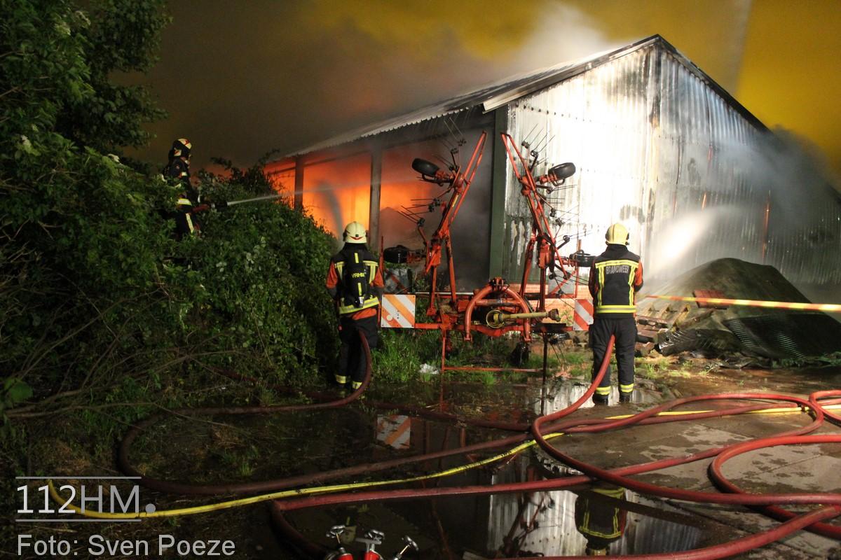 De brand was met de grote vlammen van grote afstand zichtbaar en ging gepaard met hevige rookontwikkeling. In de bewuste schuur lagen hooibalen, maar gelukkig waren er geen mensen of dieren aanwezig. Wel kon de brandweer voorkomen dat de brand oversloeg naar een naastgelegen stal, waar wel dieren in waren.