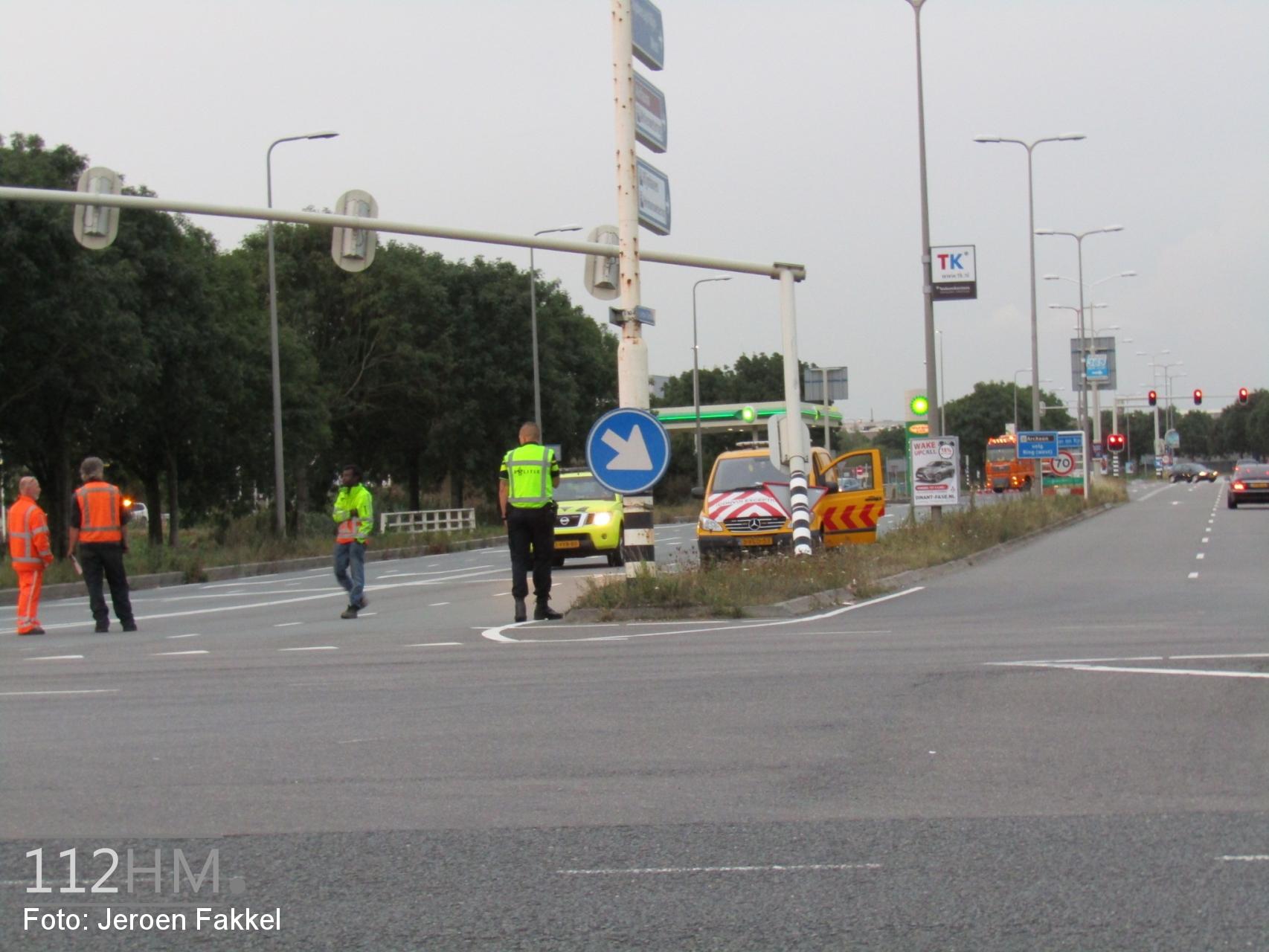 Ter plaatse bleek een transport exceptionele vrachtwagen in de bocht een stoplicht te hebben geraakt. Volgens de politie moest het transport uitwijken, waardoor hij in botsing kwam met het verkeersmeubilair. Waar voor hij uit moest wijken is niet bekend.