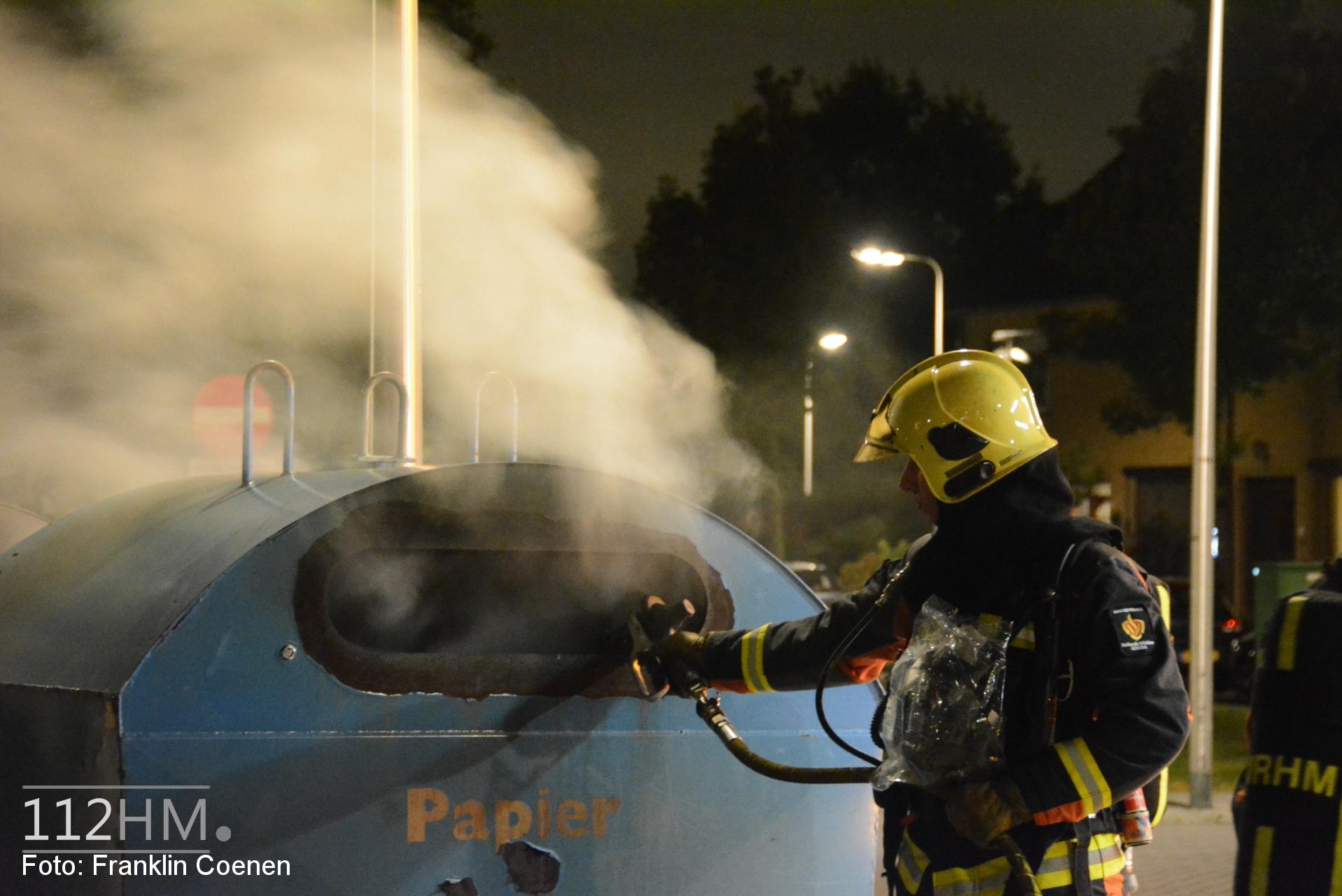 Brandweer rukt wederom uit voor brand in papiercontainer, ditmaal aan de Aernout Drostkade in Gouda