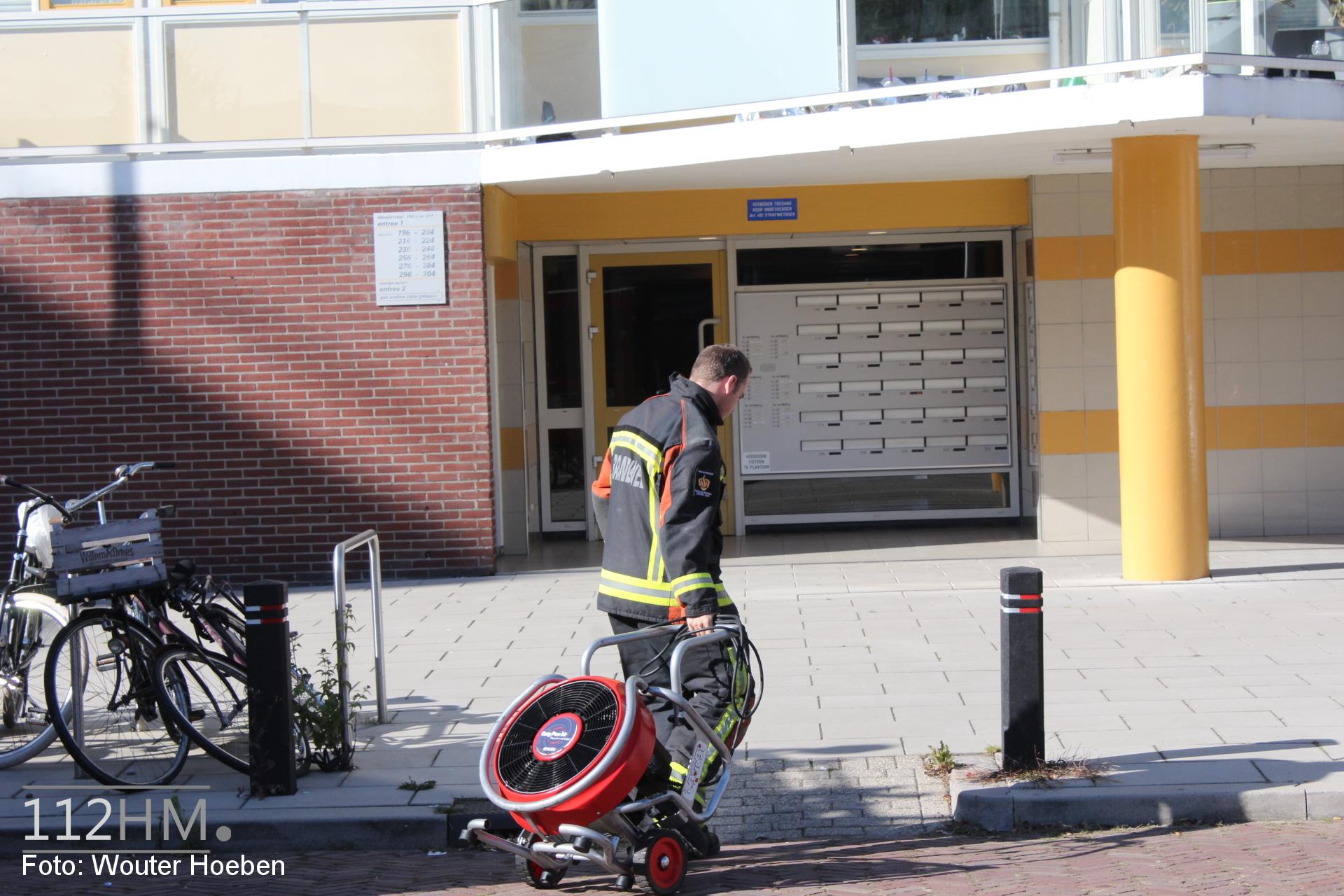 Ter plaatse roken meerdere bewoners van de flat een rare lucht waarop de brandweer werd gealarmeerd. De brandweer heeft diverse metingen verricht maar niks kunnen vinden waarna de bergingen werden geventileerd.