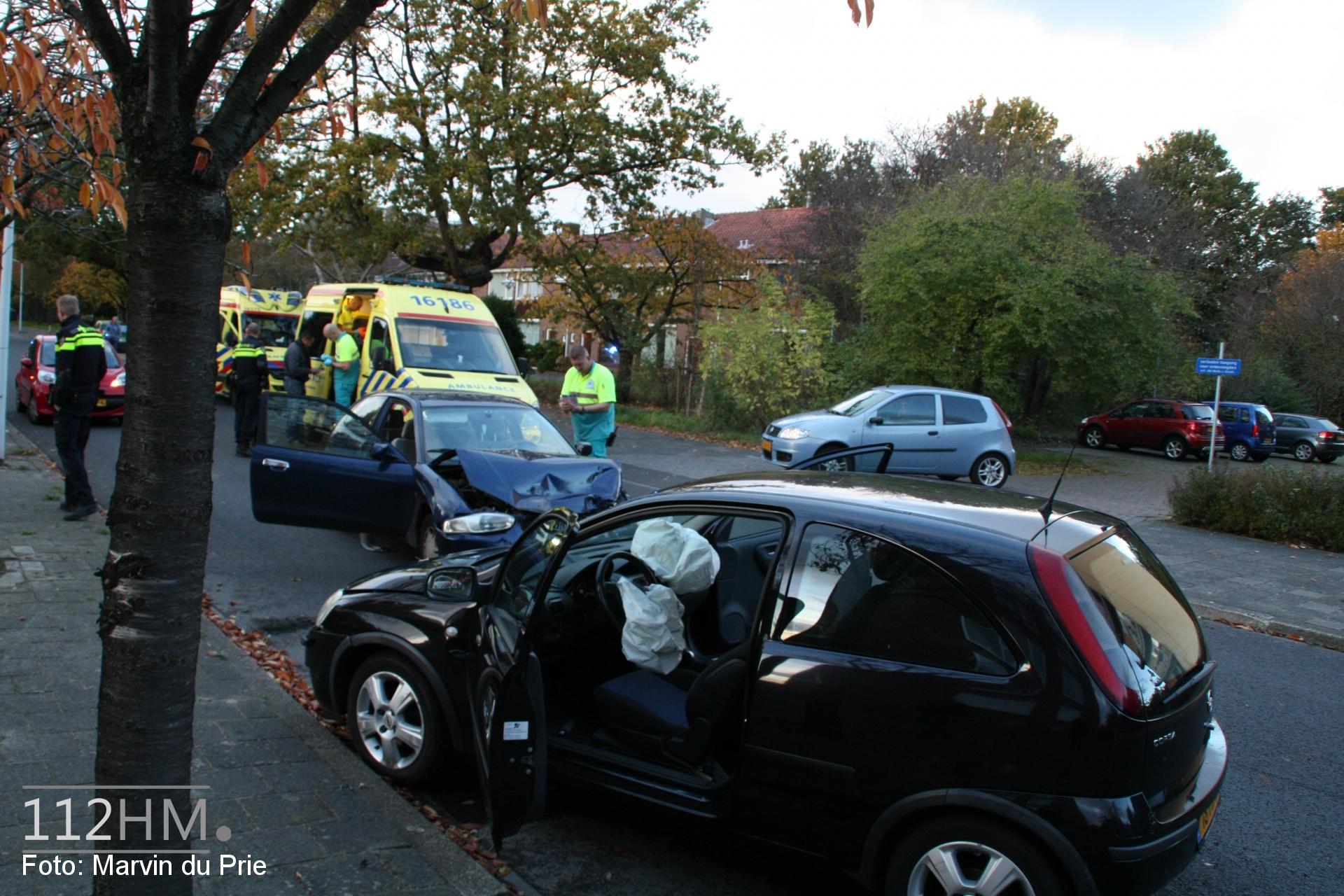 Frontale botsing tussen twee voertuigen Debussystraat Leiden