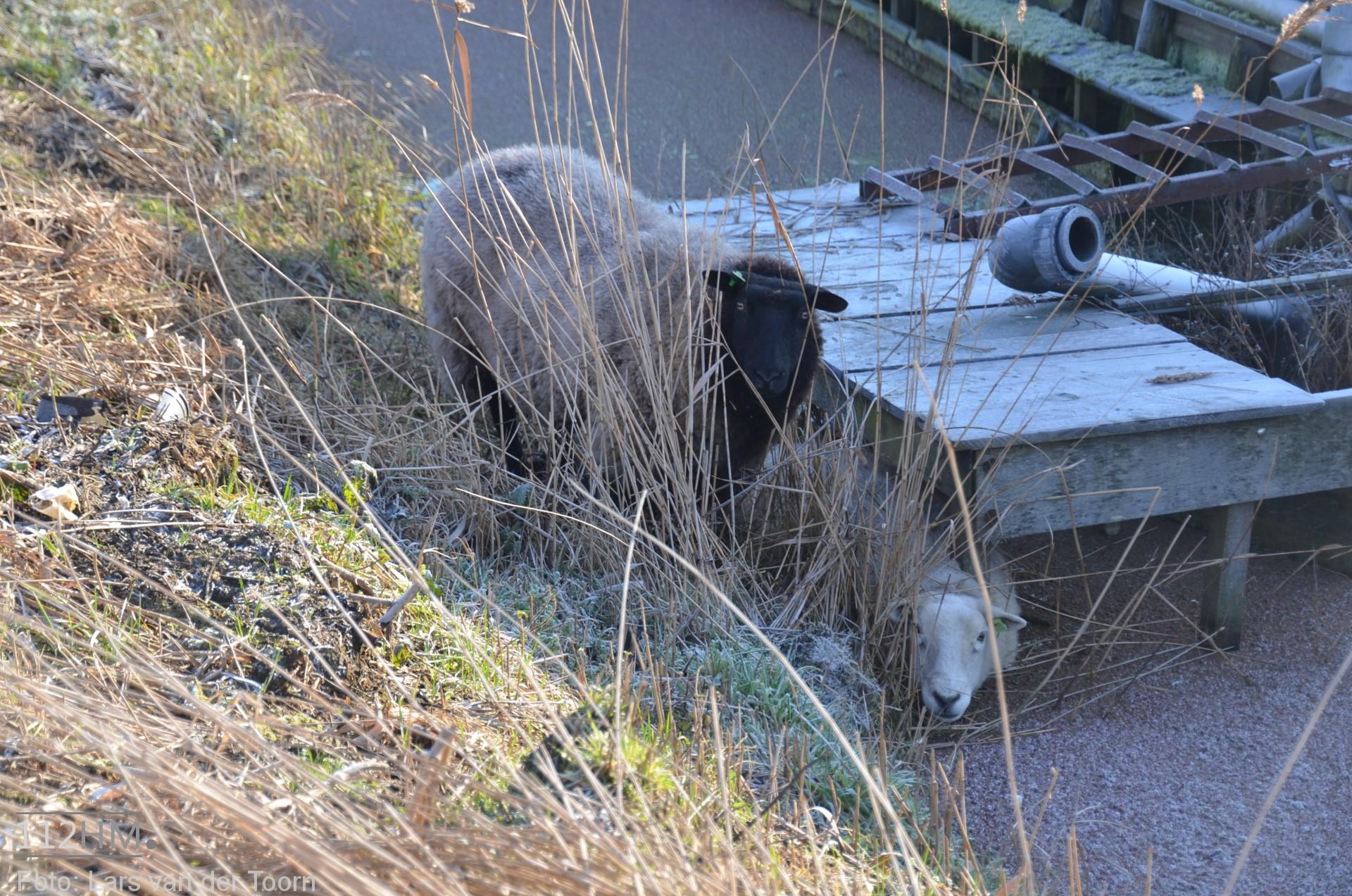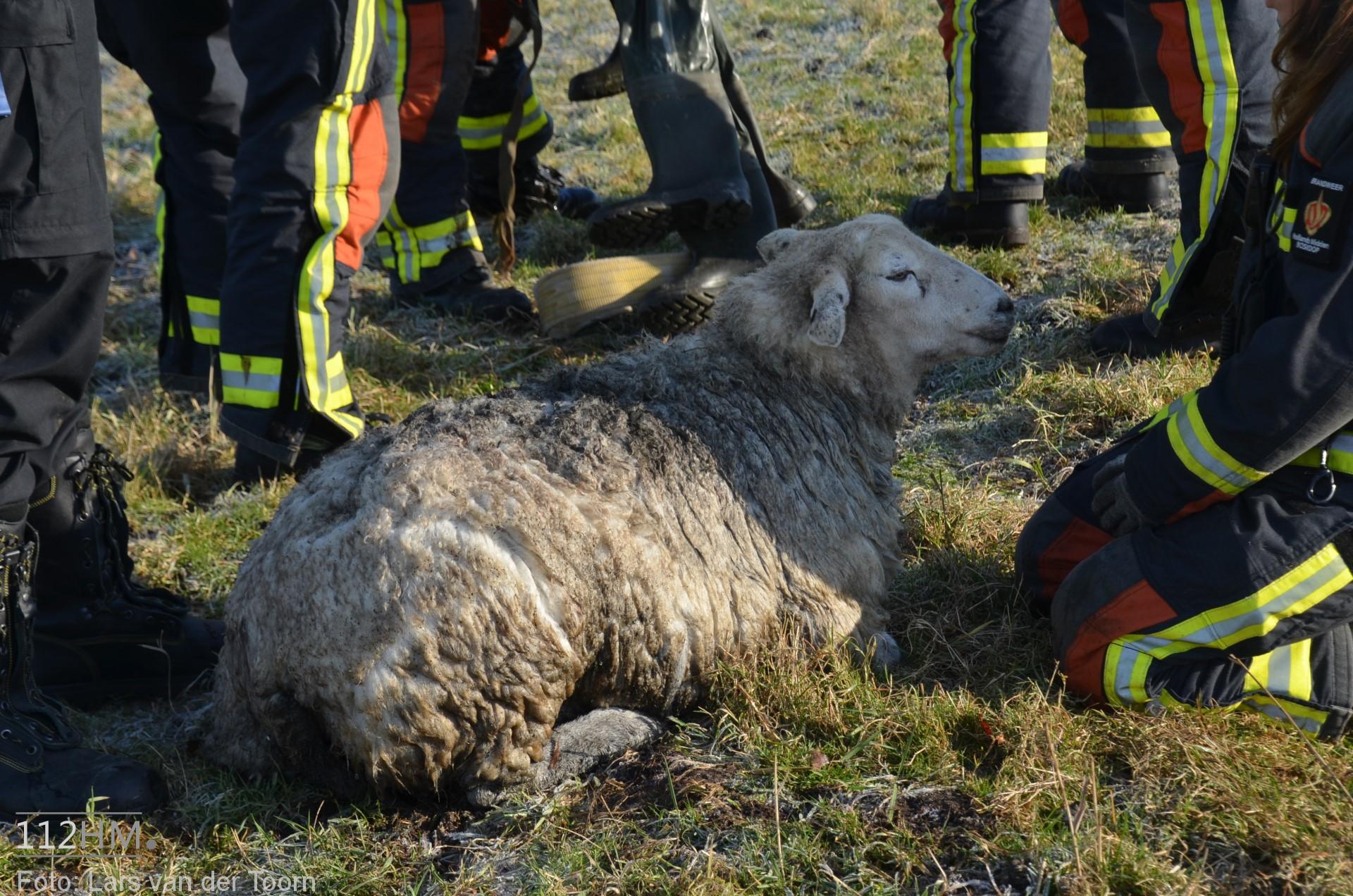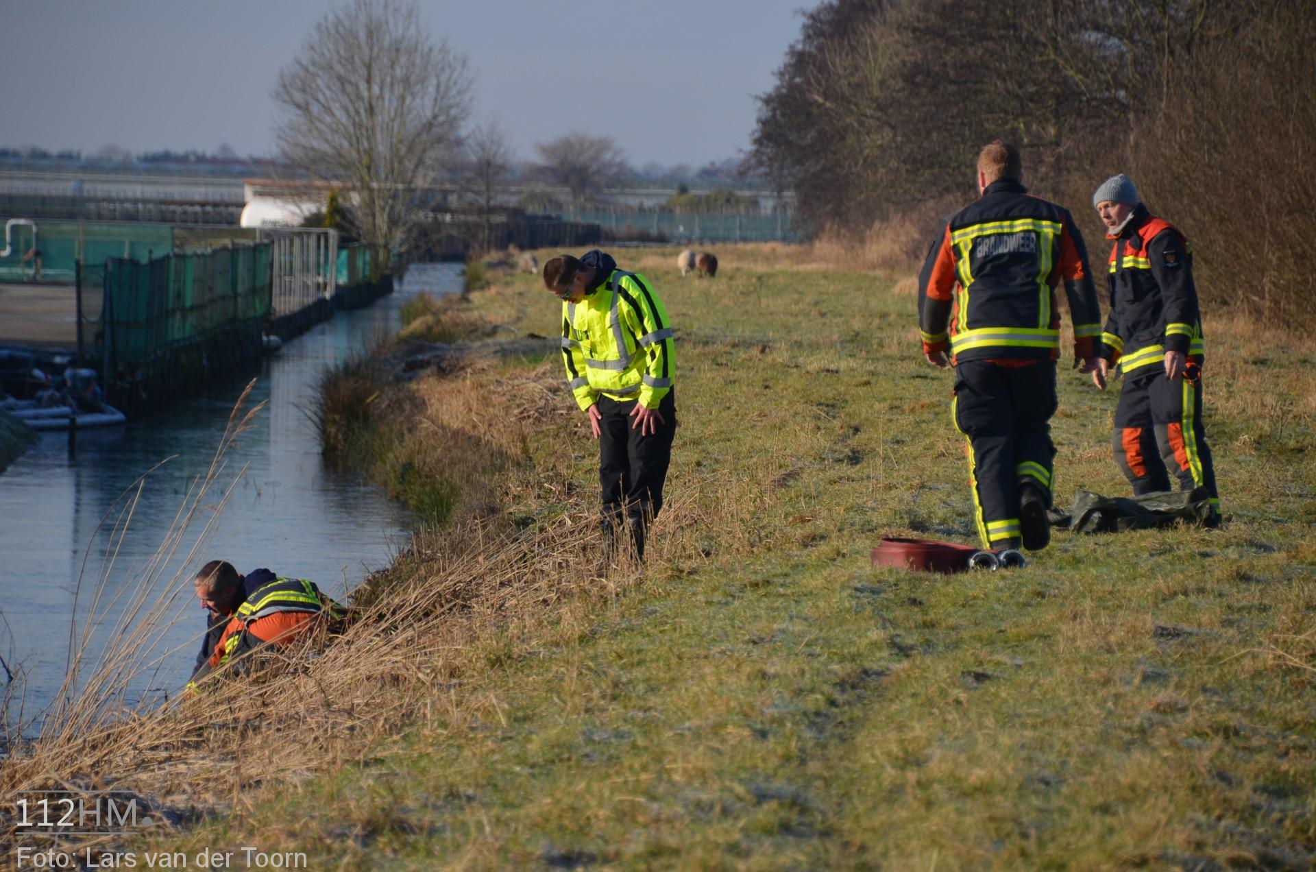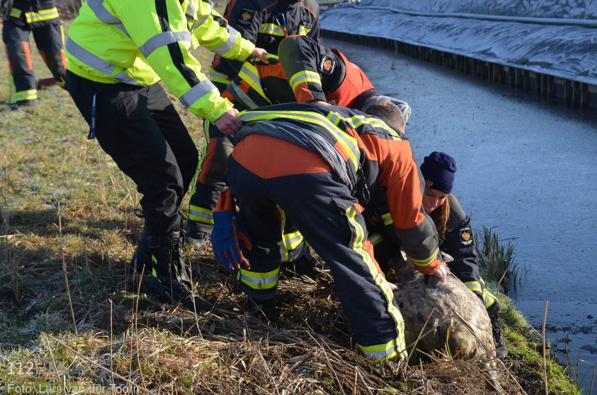Boskoopse brandweer red twee schapen uit water langs voetpad aan de Goudse Rijweg Boskoop