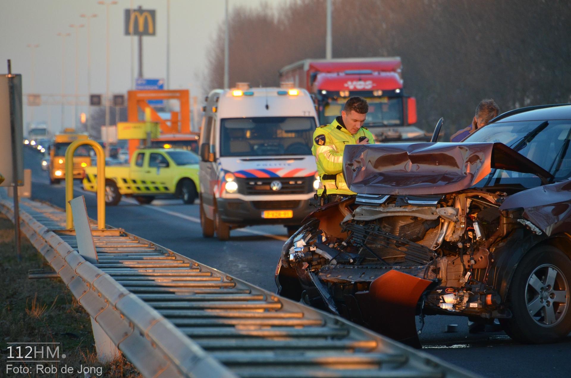 Flinke ravage na ongeval tussen twee personenauto’s op de A20 bij Moordrecht