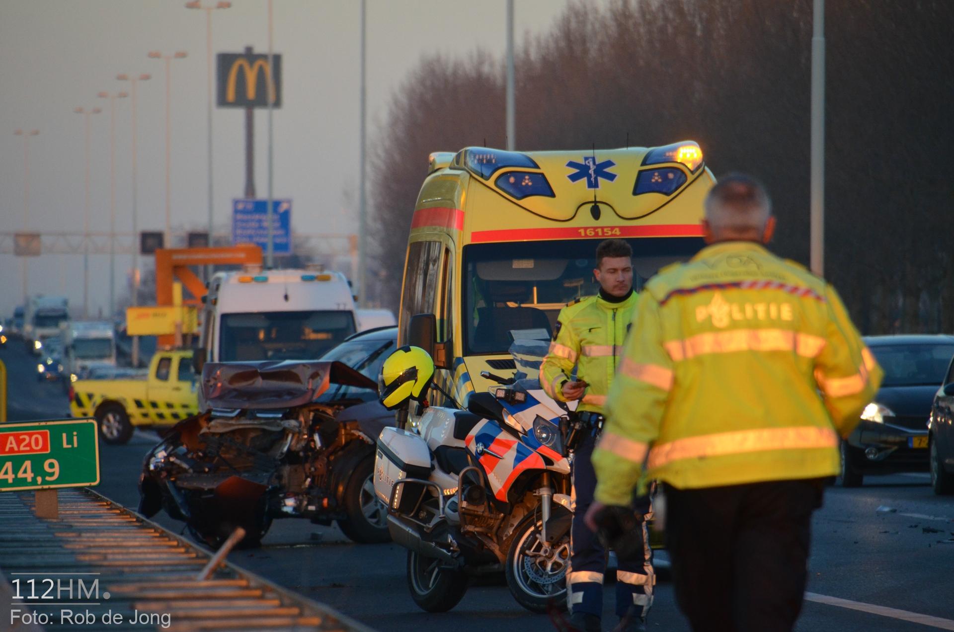 MOORDRECHT – Zaterdagmiddag 21 januari omstreeks 16:10 uur werden politie en twee ambulances gealarmeerd voor een ongeval op de A20 bij Moordrecht. Enige tijd later werd ook de brandweer opgeroepen voor de melding van een beknelling.