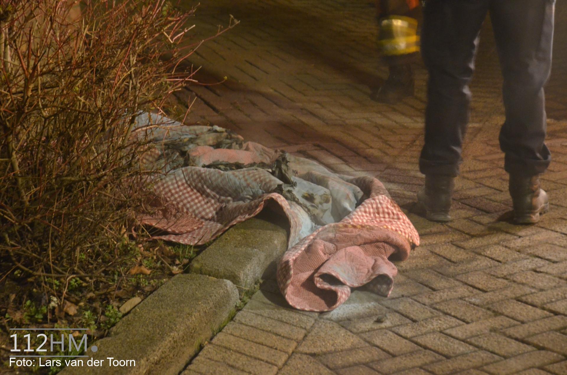 Ter plaatse trof men een brandende deken aan. Meerdere omstanders hoorde iets vallen waarna ze een brandende deken in de bosjes zagen liggen. Deze hebben ze eruit getrokken waarop de hulpdiensten werden gealarmeerd. De politie, die als eerste ter plaatse kwam, heeft de deken met de poederblusser geblust. Hierop kon de brandweer zonder spoed doorkomen naar de melding.