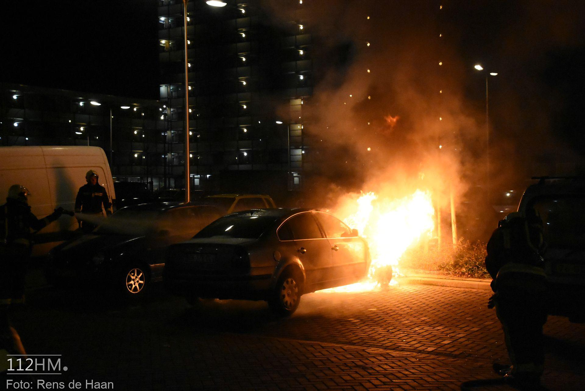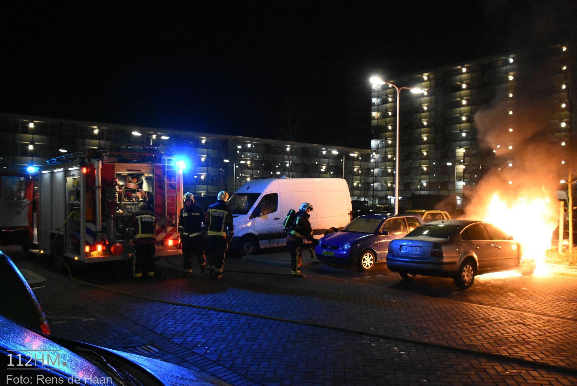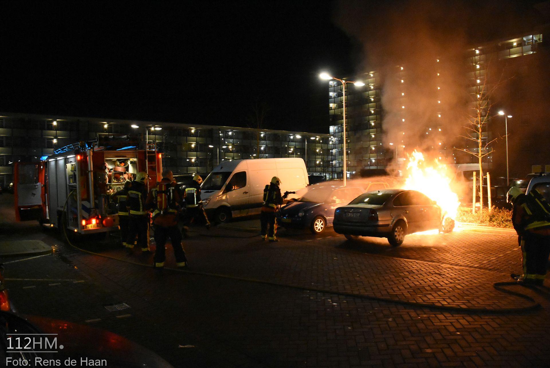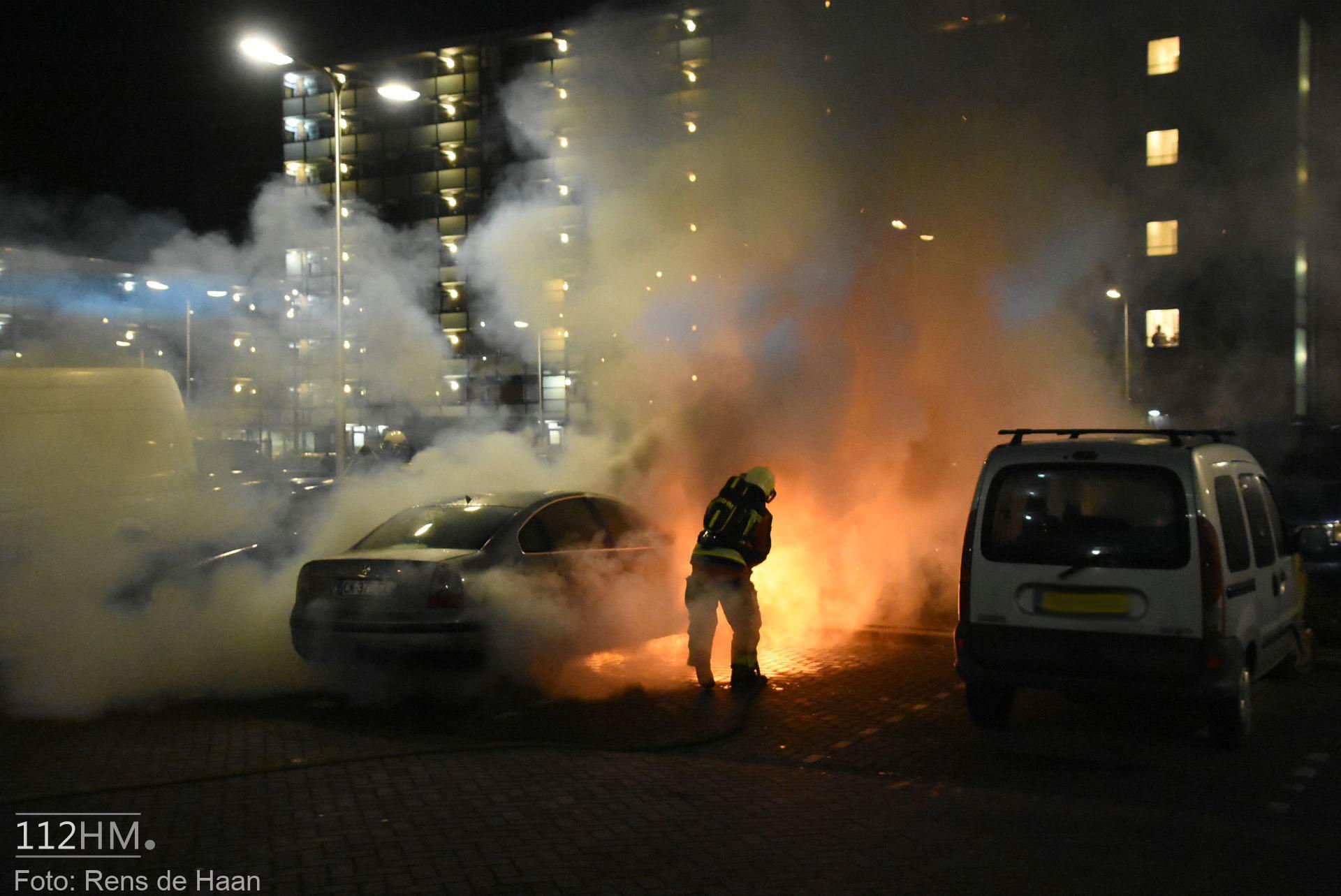 GOUDA – Donderdagnacht 16 februari werd de brandweer van post Haastrecht gealarmeerd voor een voertuigbrand op de Marathonlaan in Gouda. Ter plaatse bleek het juiste adres het Olympiadeplein te zijn. Er stond hier een auto vrijwel volledig in brand.