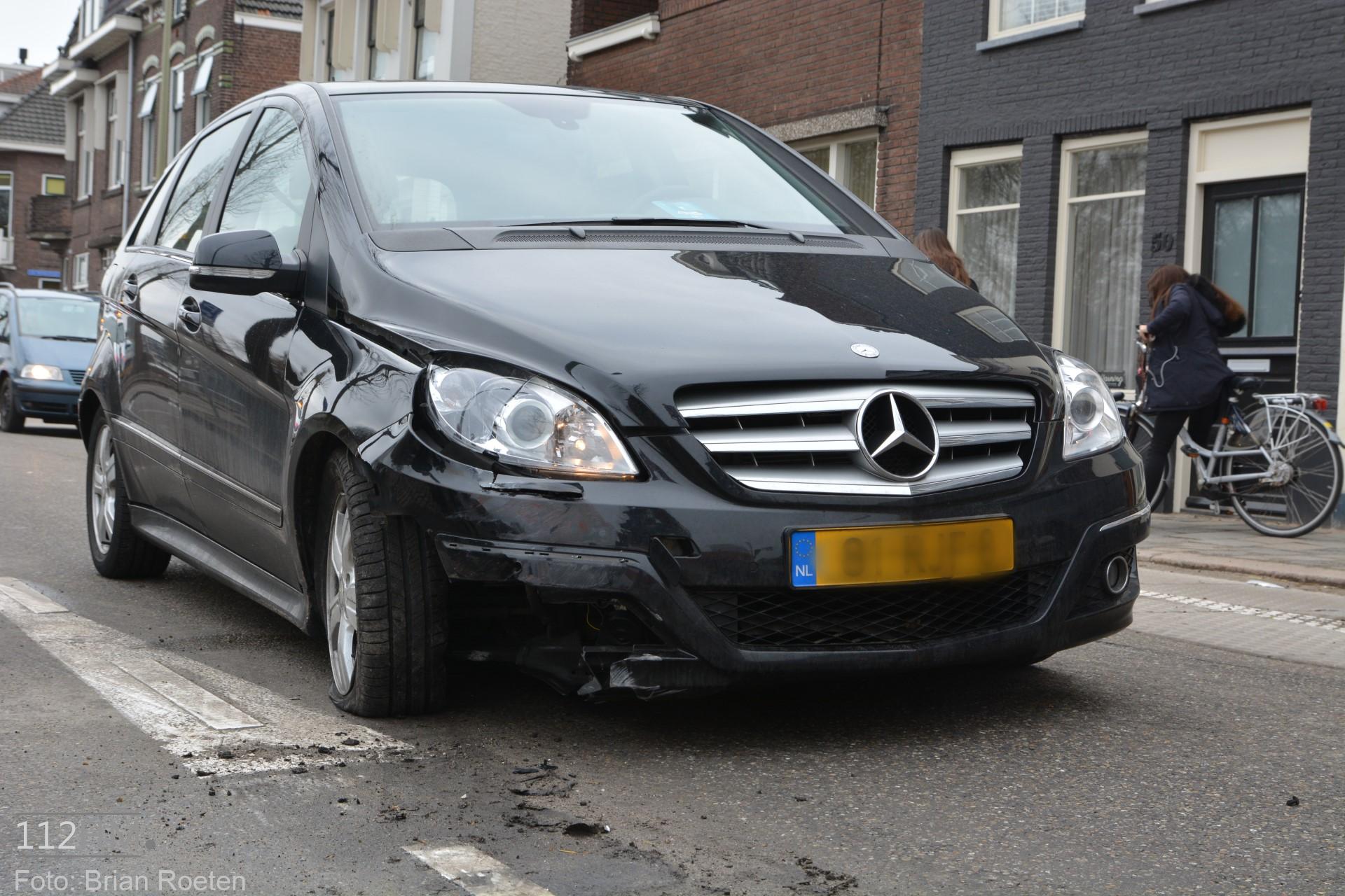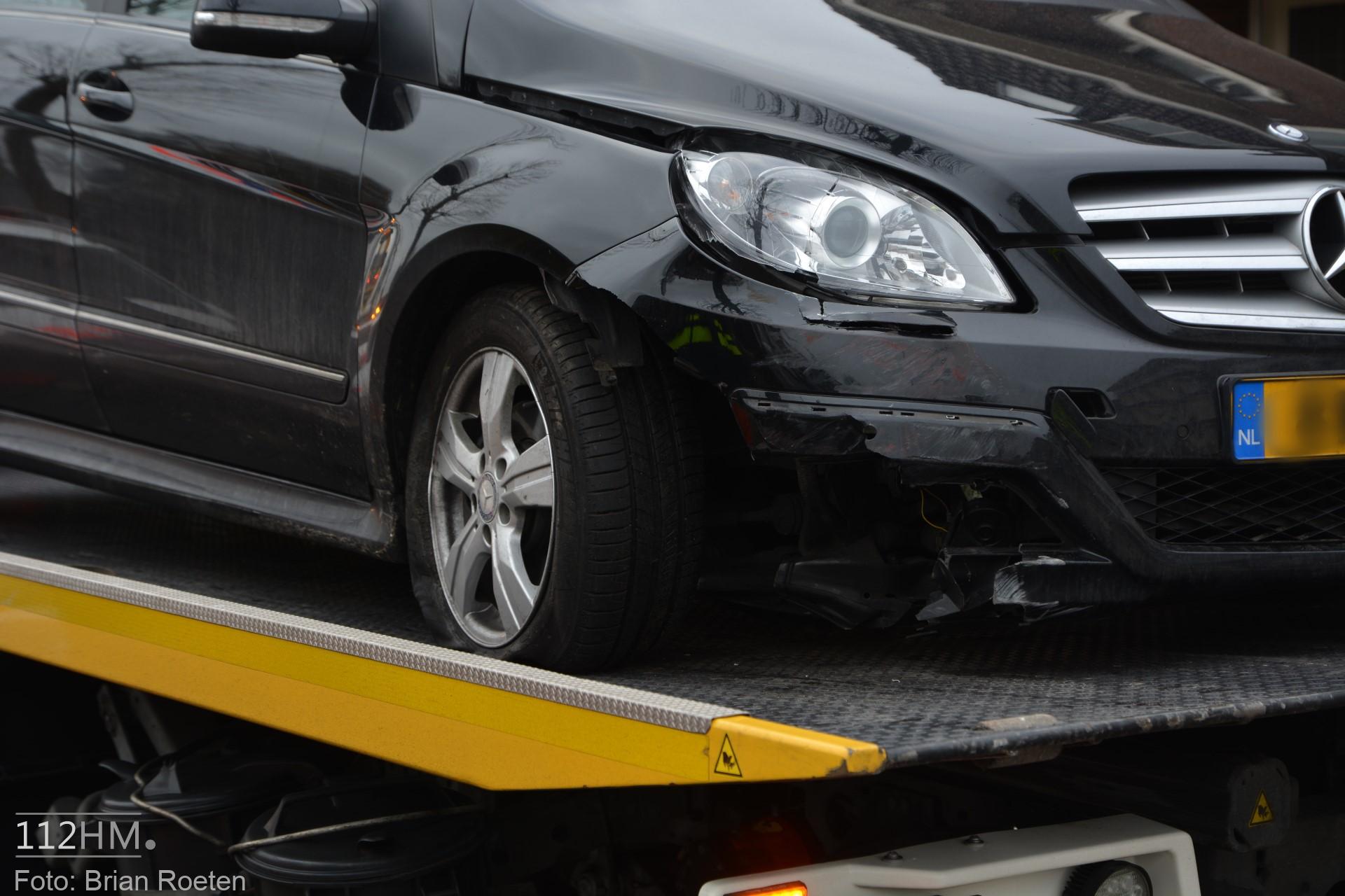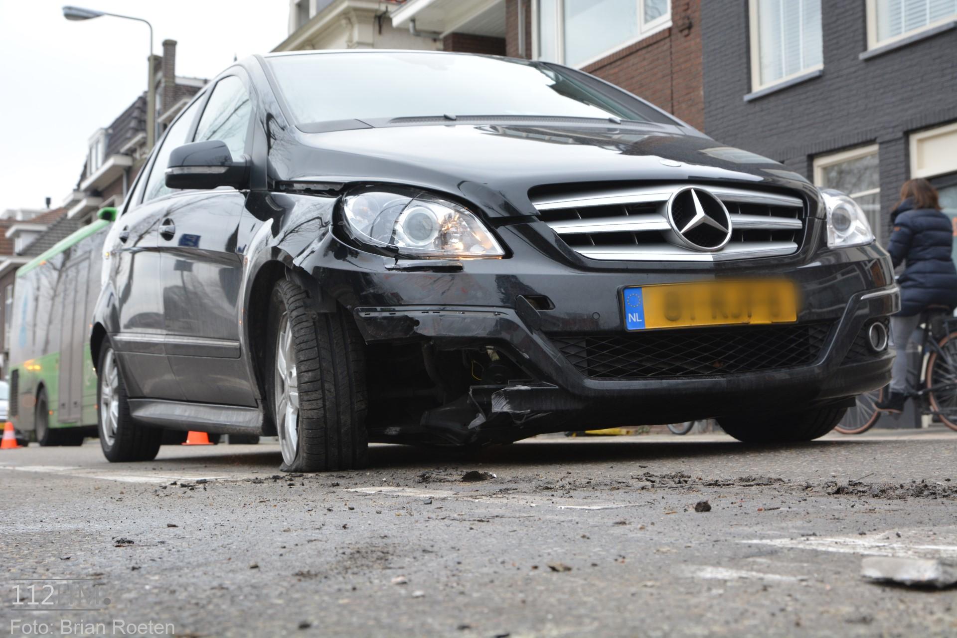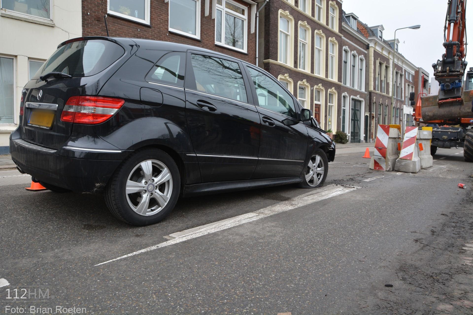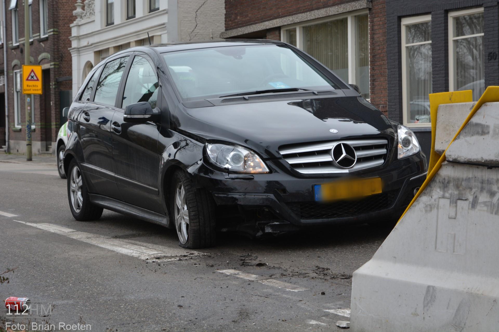 Auto botst op Betonnen wegversmalling op de Kattensingel in Gouda