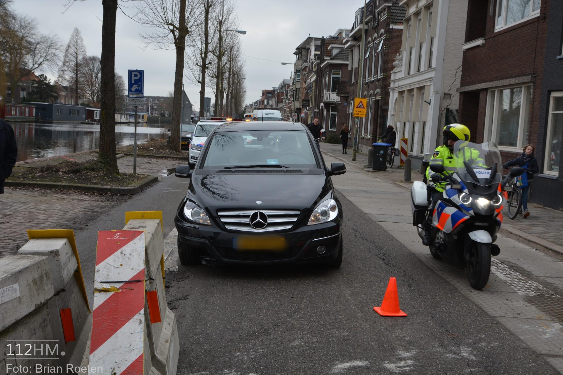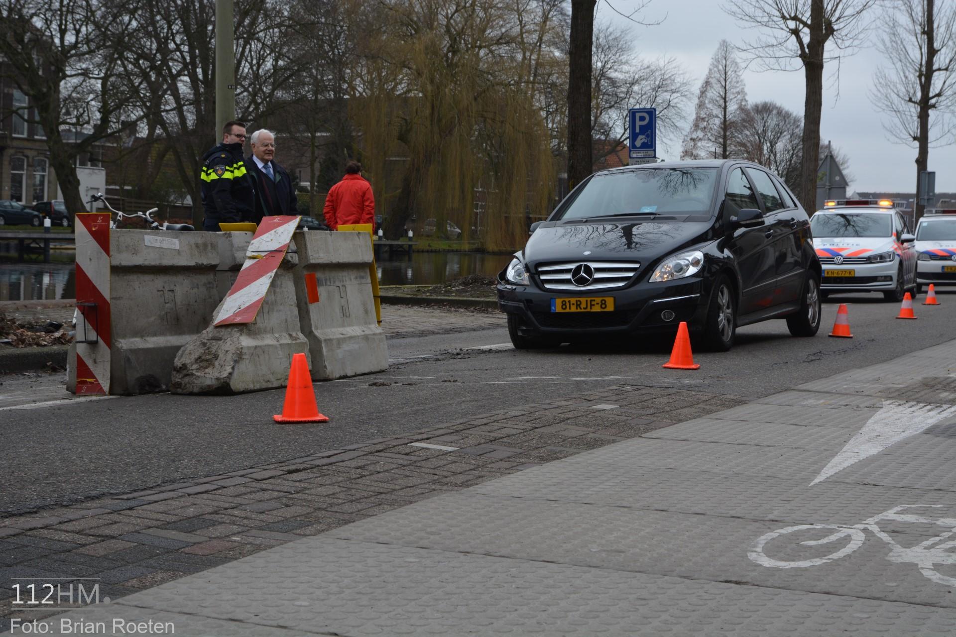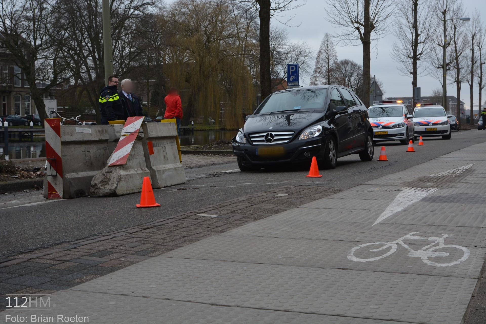 GOUDA – Politie en ambulance zijn deze middag gealarmeerd voor een aanrijding op de Kattensingel in Gouda. Ter plaatse trof men een voertuig dat op de betonnen wegversmalling was gebotst.
