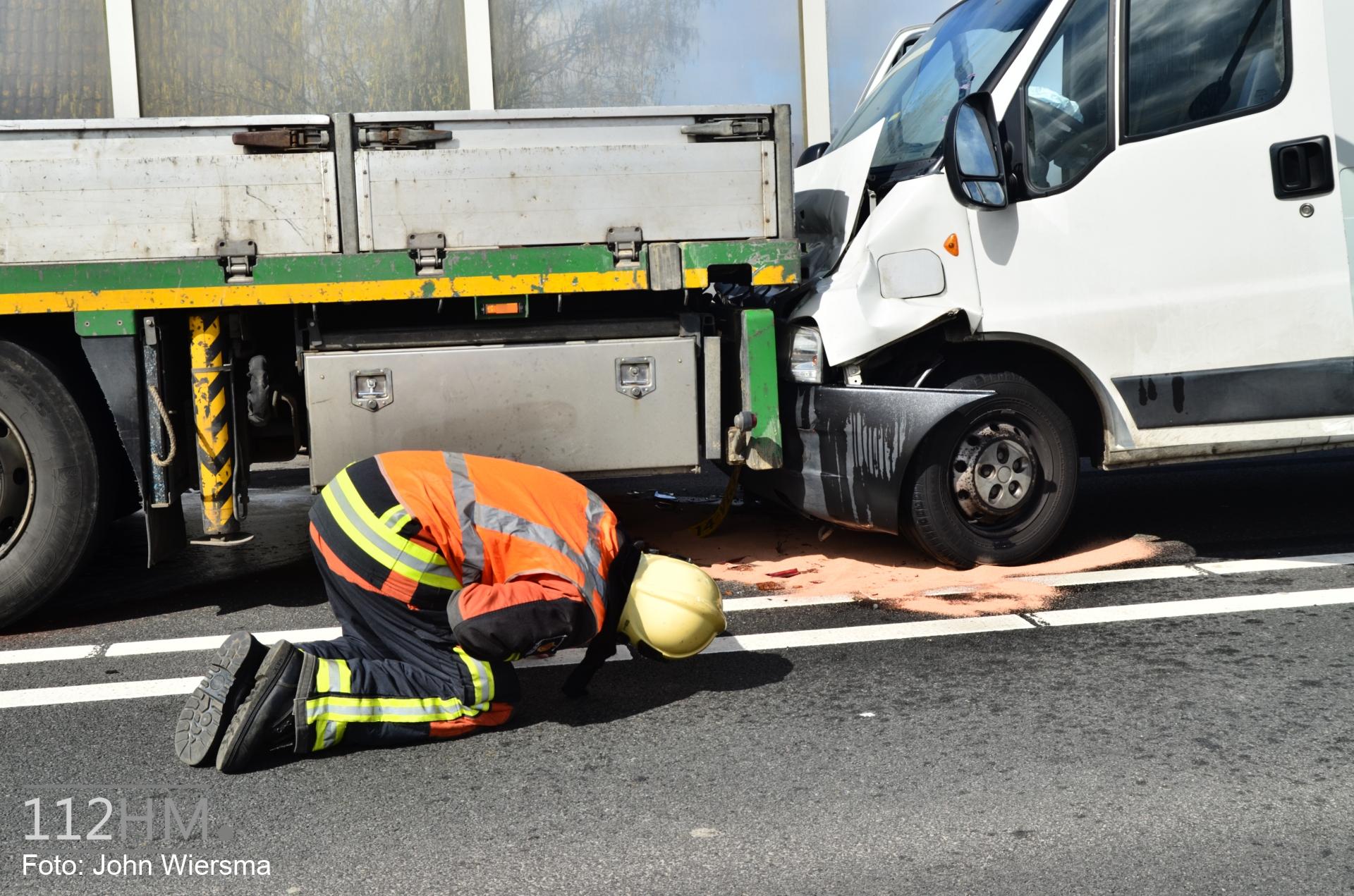Een bestelbus is achterop een vrachtwagen gebotst. Hoe dit heeft kunnen gebeuren, is niet bekend. Mogelijk hebben de wegwerkzaamheden op de N207 hiermee te maken. De bestuurder van de bestelbus is gewond geraakt en is per ambulance naar het ziekenhuis vervoerd.
