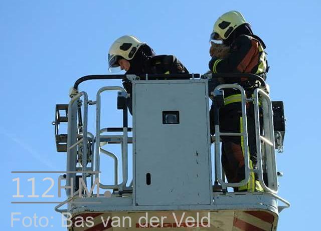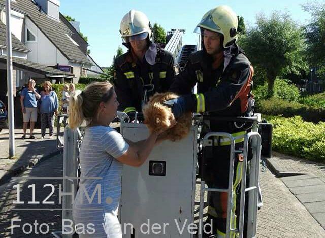 Door middel van de autoladder konden de brandweermensen bij de kat komen en hebben hem of haar mee naar beneden genomen.