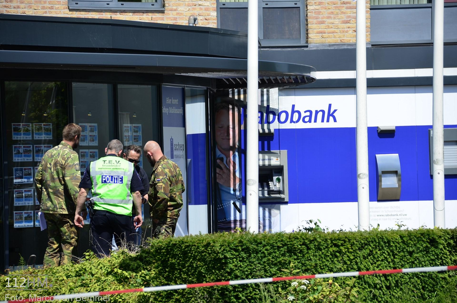 SCHOONHOVEN – Vrijdagmiddag 26 mei rond 12:00 werden passerende politieagenten door een persoon aangesproken over verdachte omstandigheden bij de pinautomaat van de Rabobank aan het Lopikerplein in Schoonhoven. Al snel kwam de verdenking van een explosief in het pinautomaat.