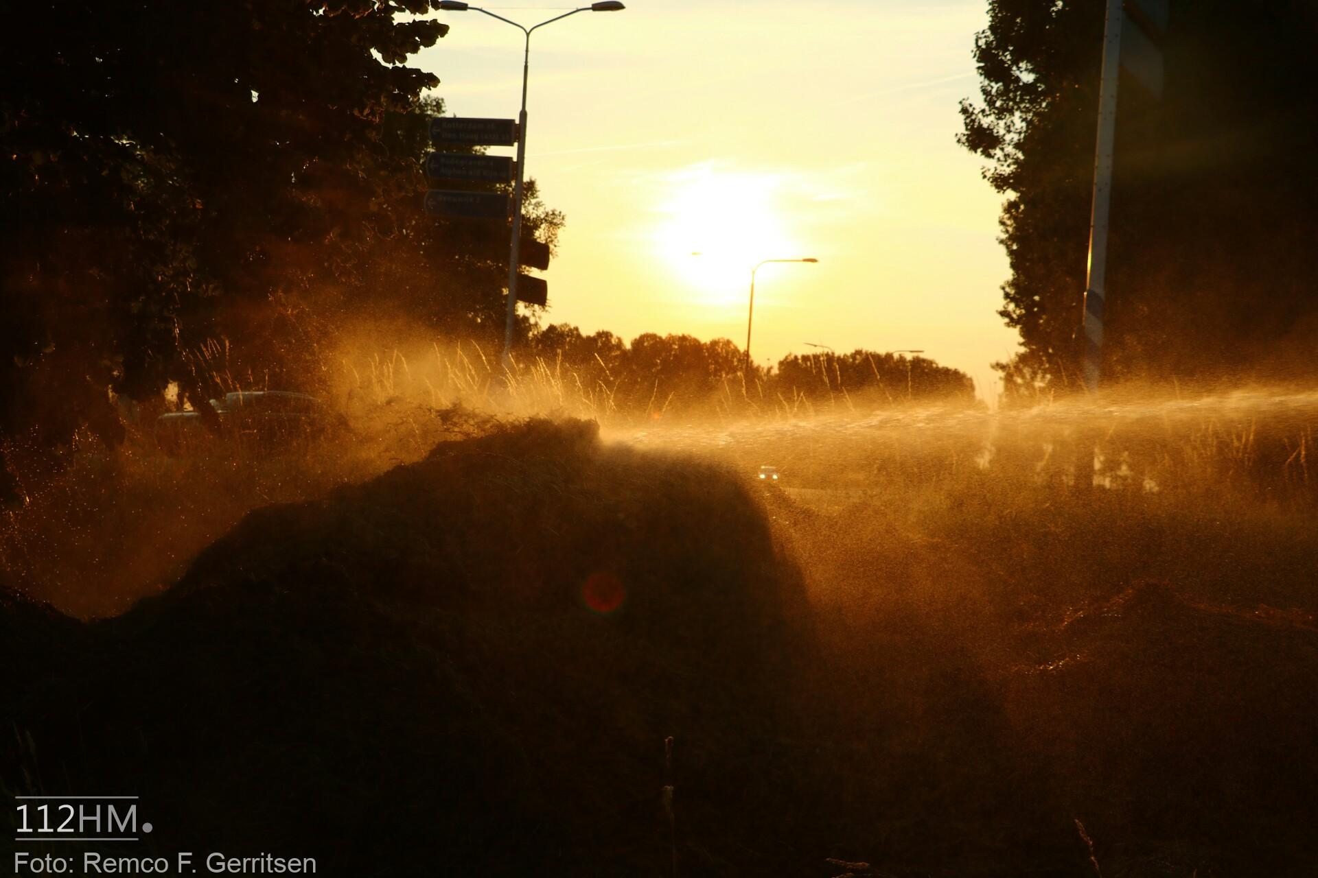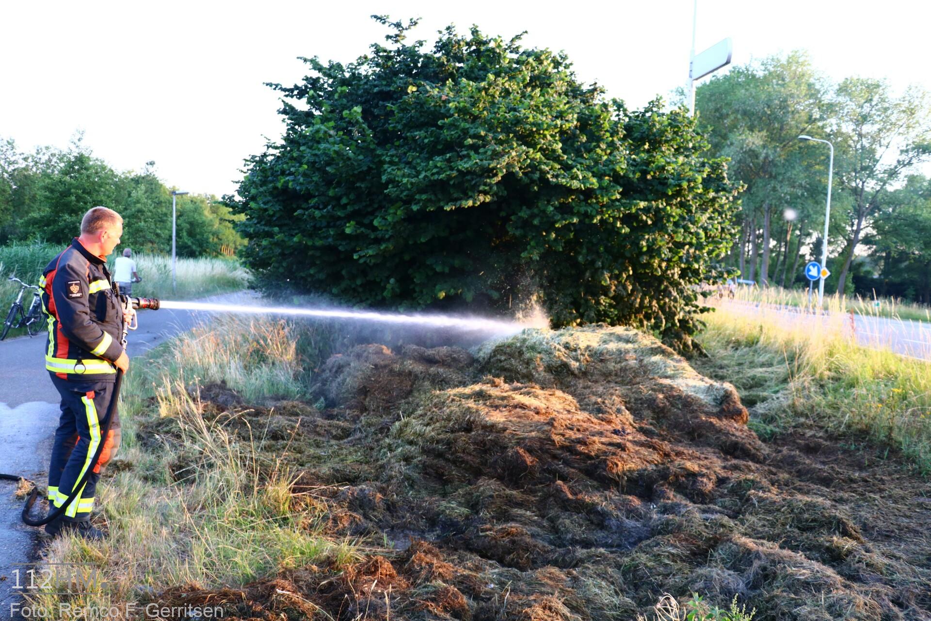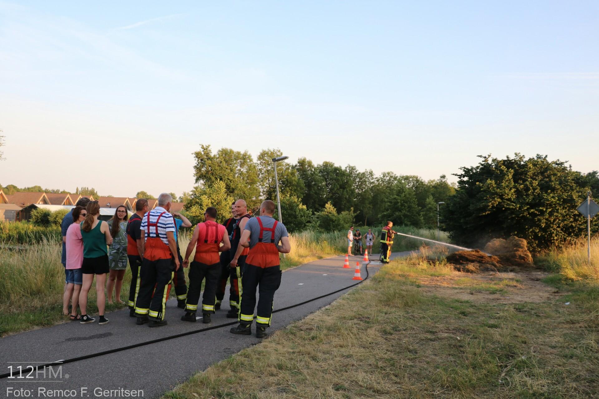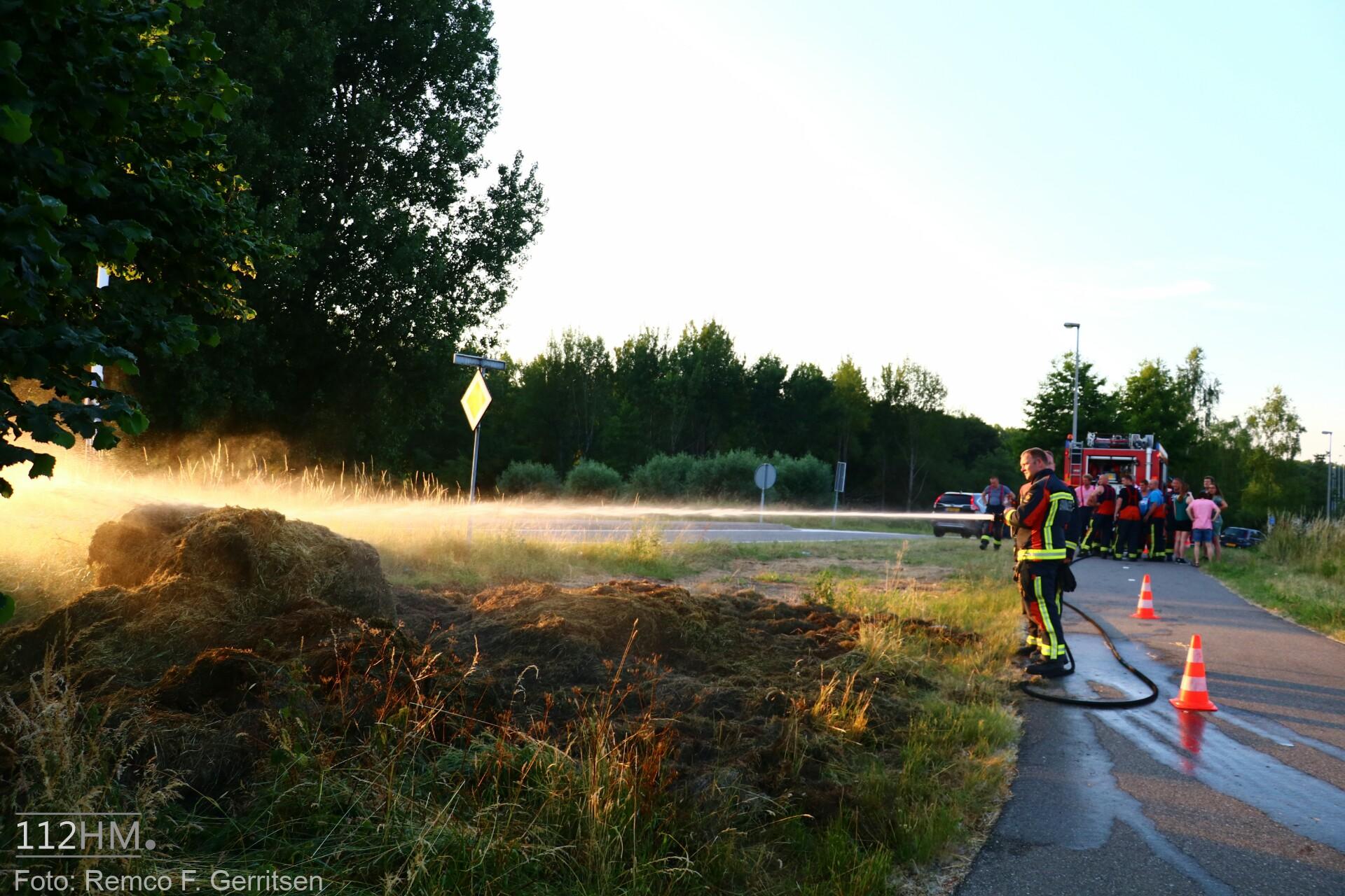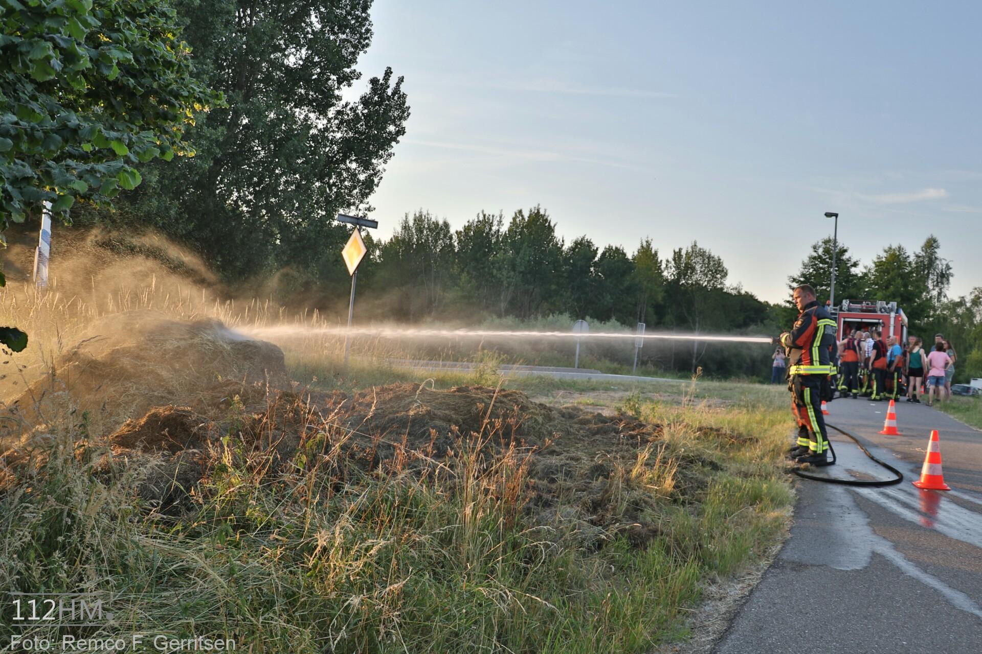 Zo ook aan de Reeuwijksehoutwal in Reeuwijk vanavond. Toen de brandweer ter plaatse kwam bleken een aantal hooibalen in brand te staan.
