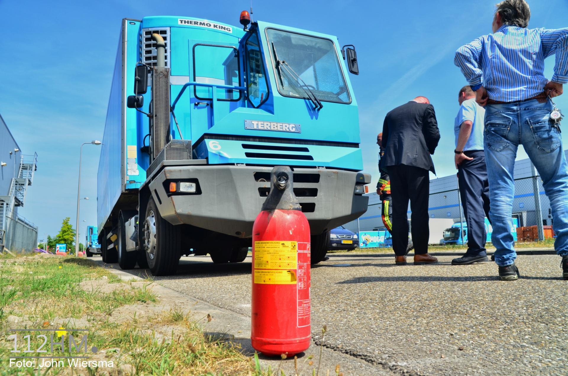 ALPHEN AAN DEN RIJN – Woensdagmiddag 21 juni vatte een terrein- / rangeertrekker van supermarkt Hoogvliet vlam op de Eikenlaan in Alphen aan den Rijn.