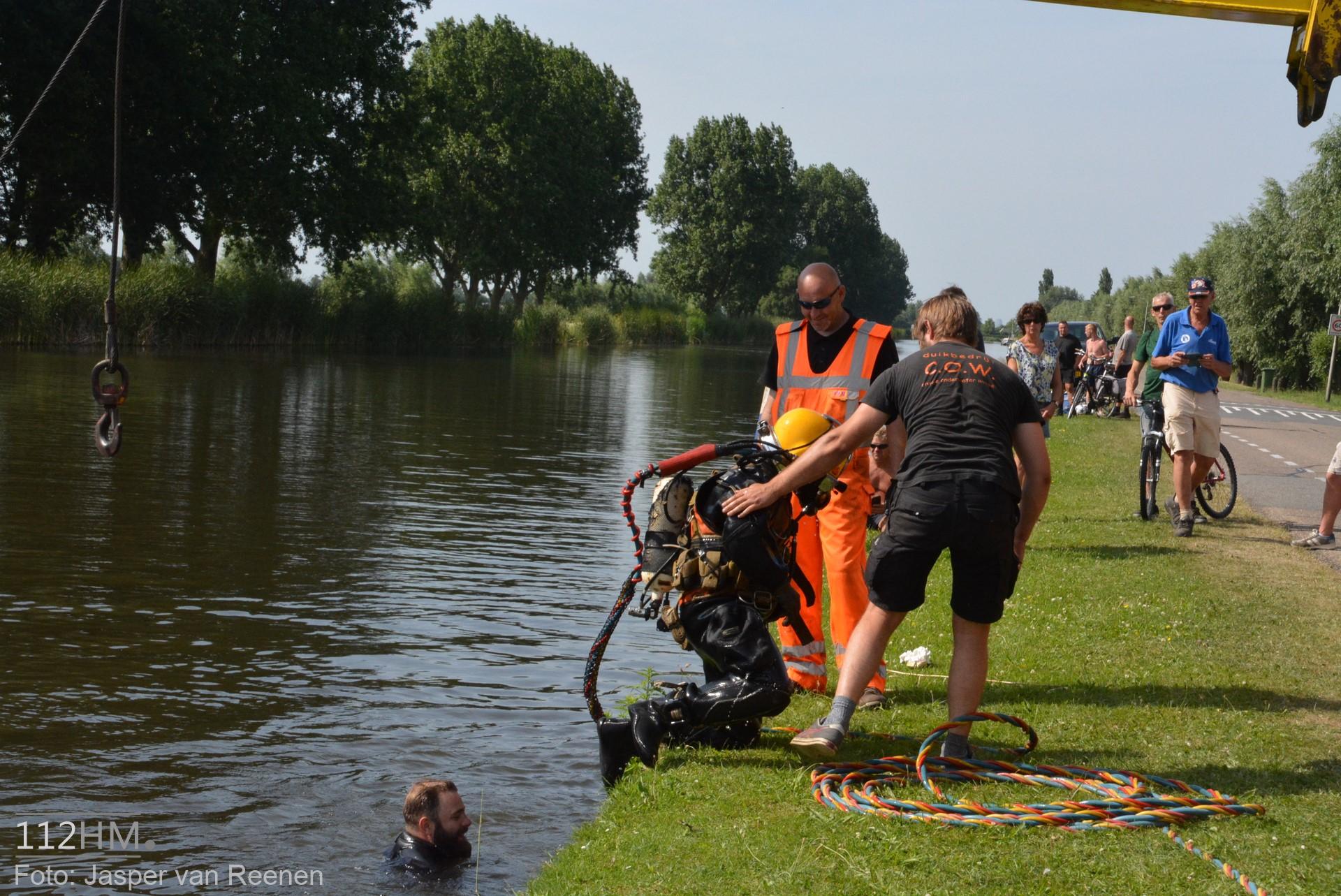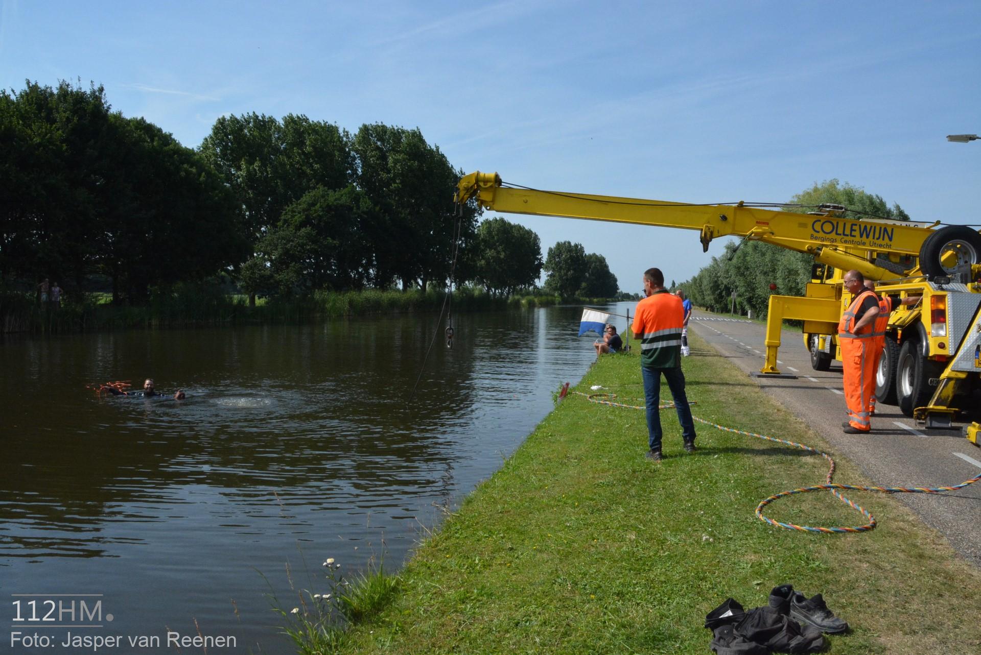 NIEUWVEEN – Woensdagmiddag 21 juni 2017 werd de politie opgeroepen voor een voertuig te water aan het Nieuwveens Jaagpad in Nieuwveen waarbij geen gewonden waren en de inzittende al uit het voertuig was.