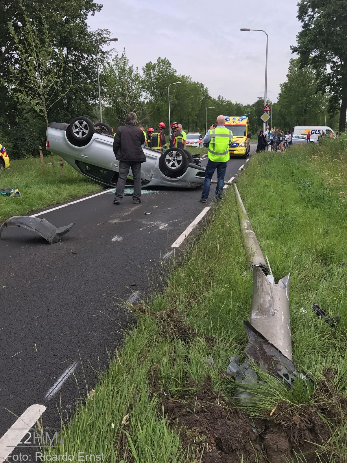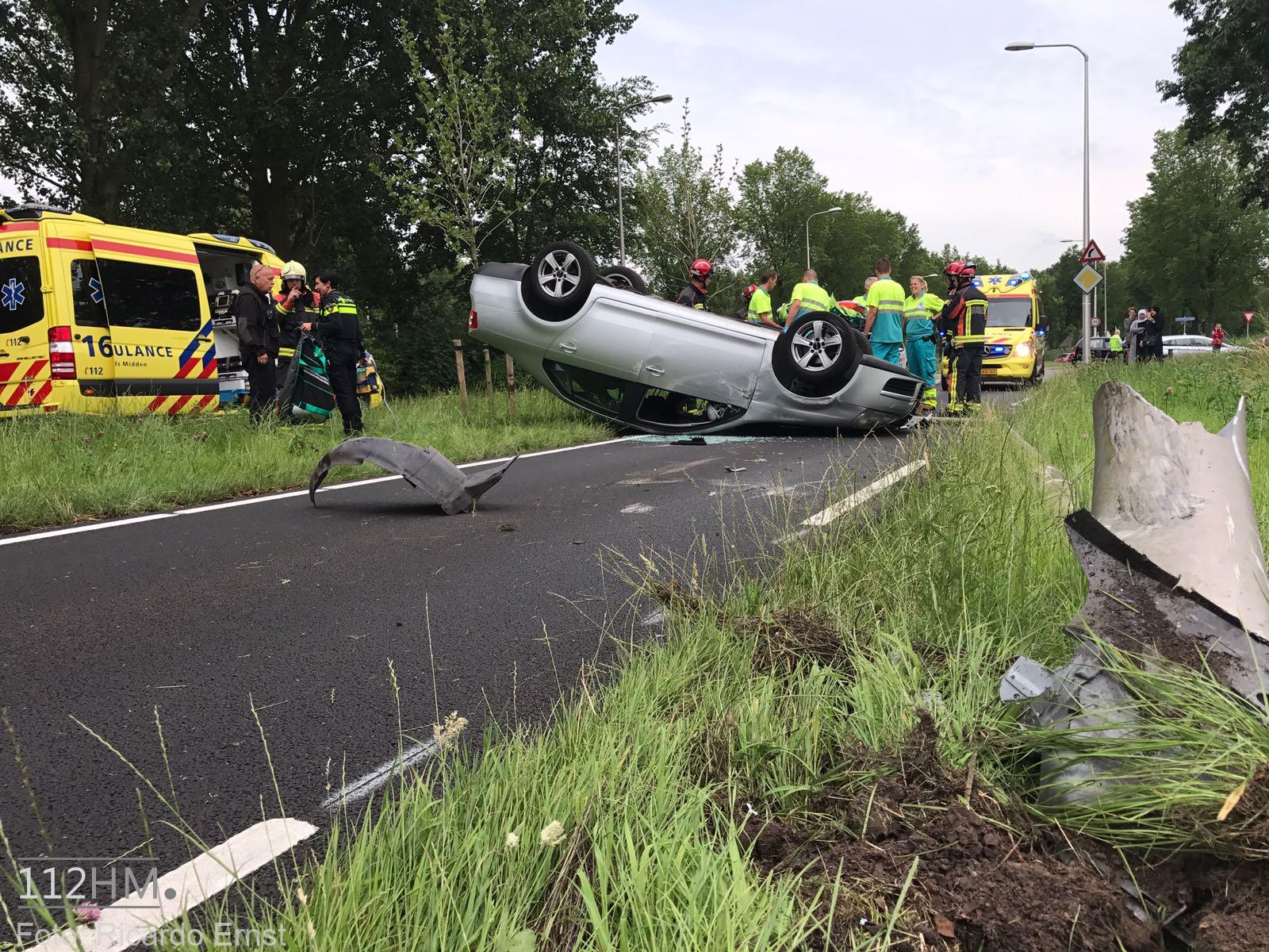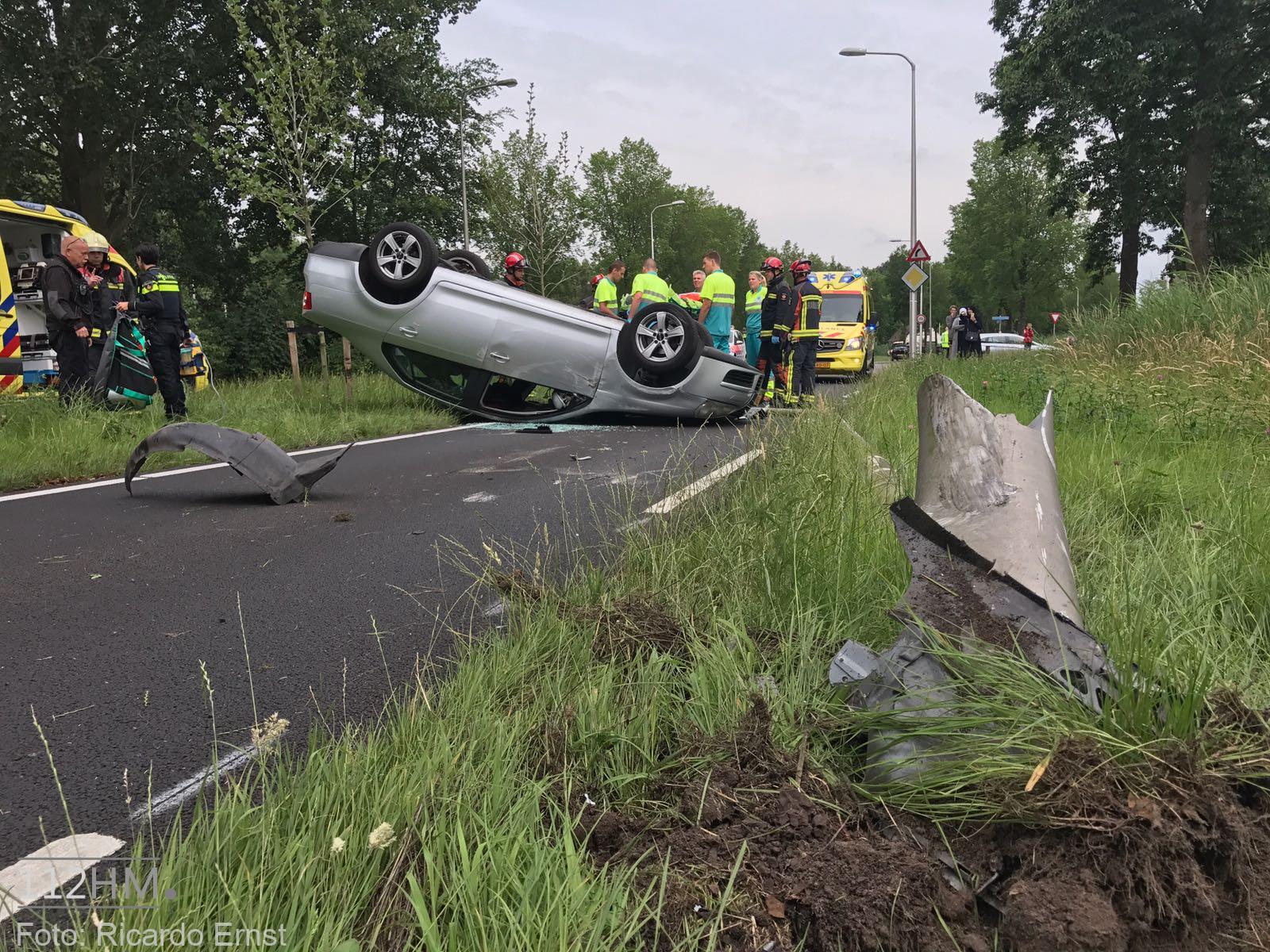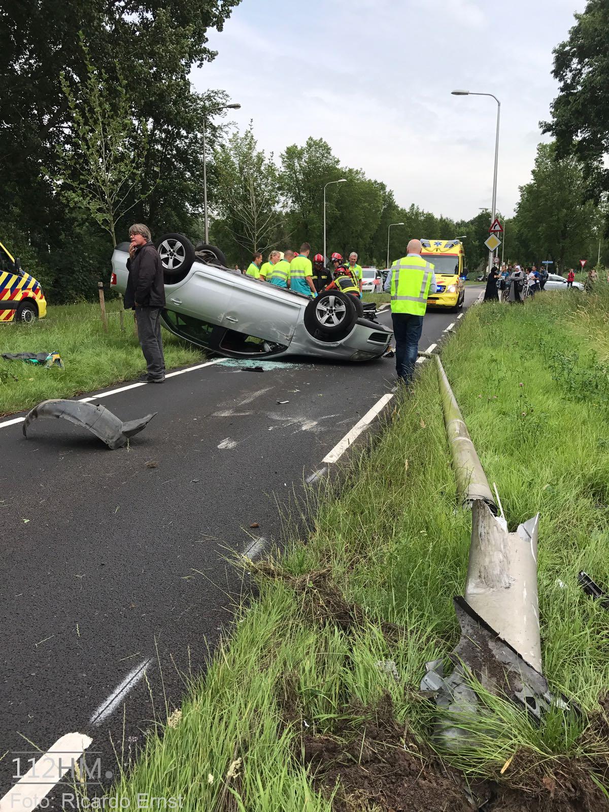 De automobilist heeft een lantaarnpaal geraakt en is daarna over de kop geslagen. De brandweer en ambulance zijn ter plaatse gekomen om het slachtoffer te helpen. Ook werd een traumahelikopter opgeroepen, deze werd echter vroegtijdig weer geannuleerd.