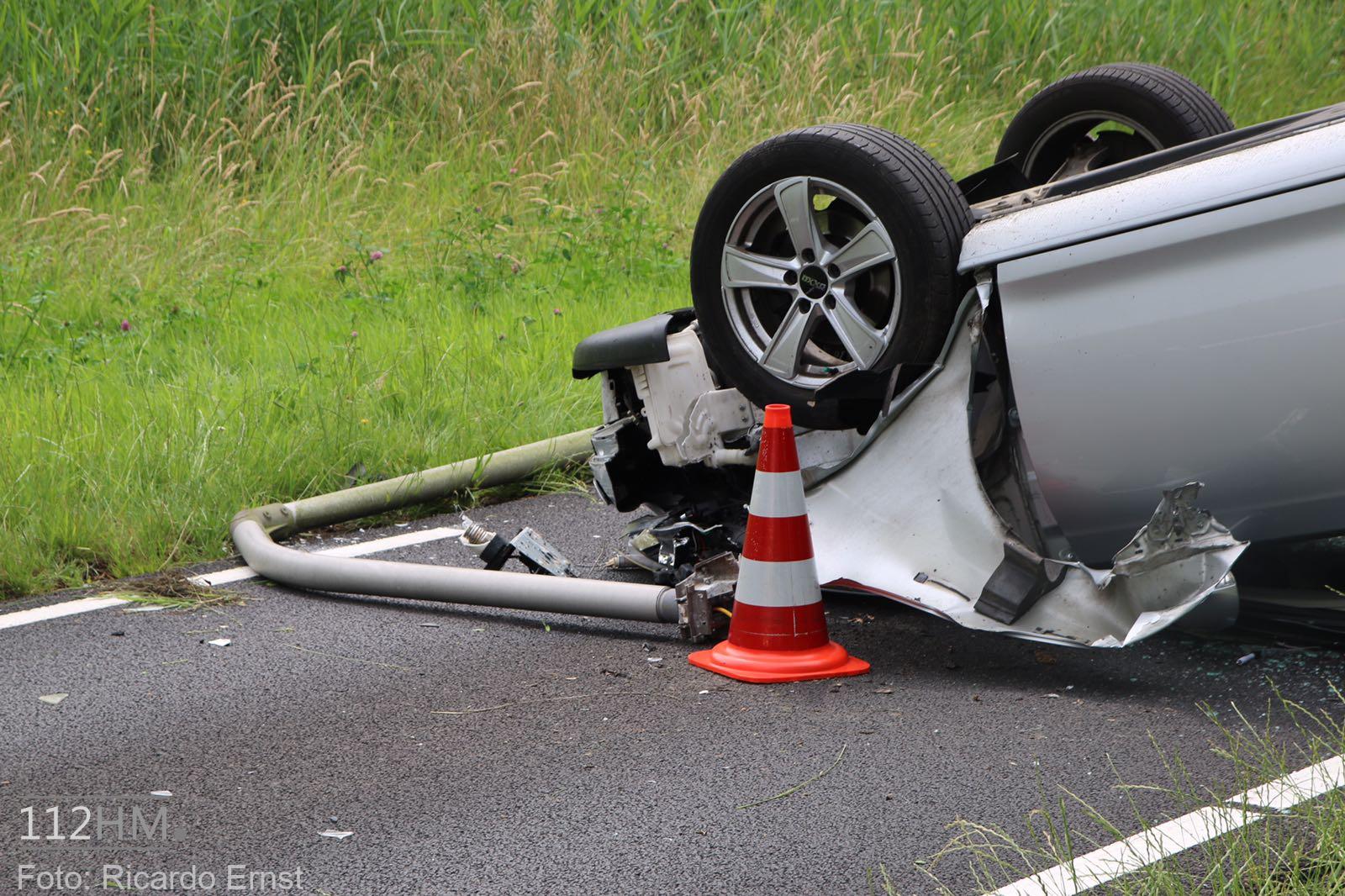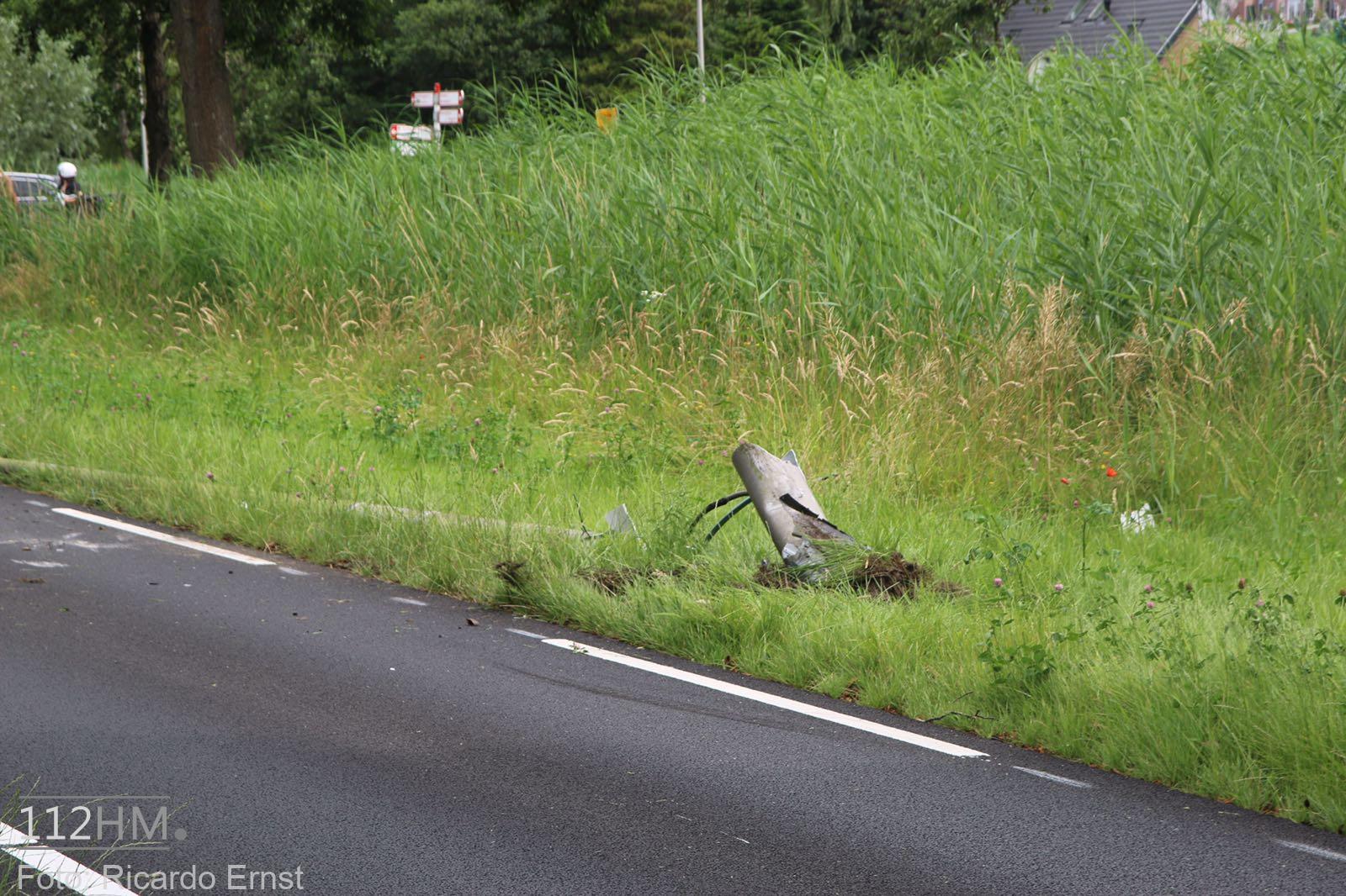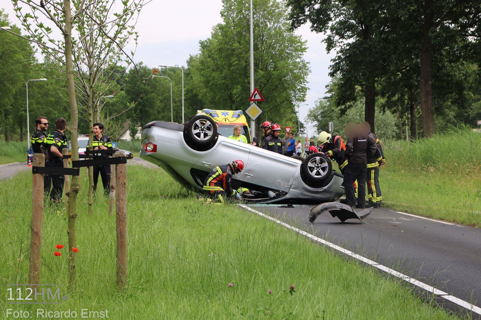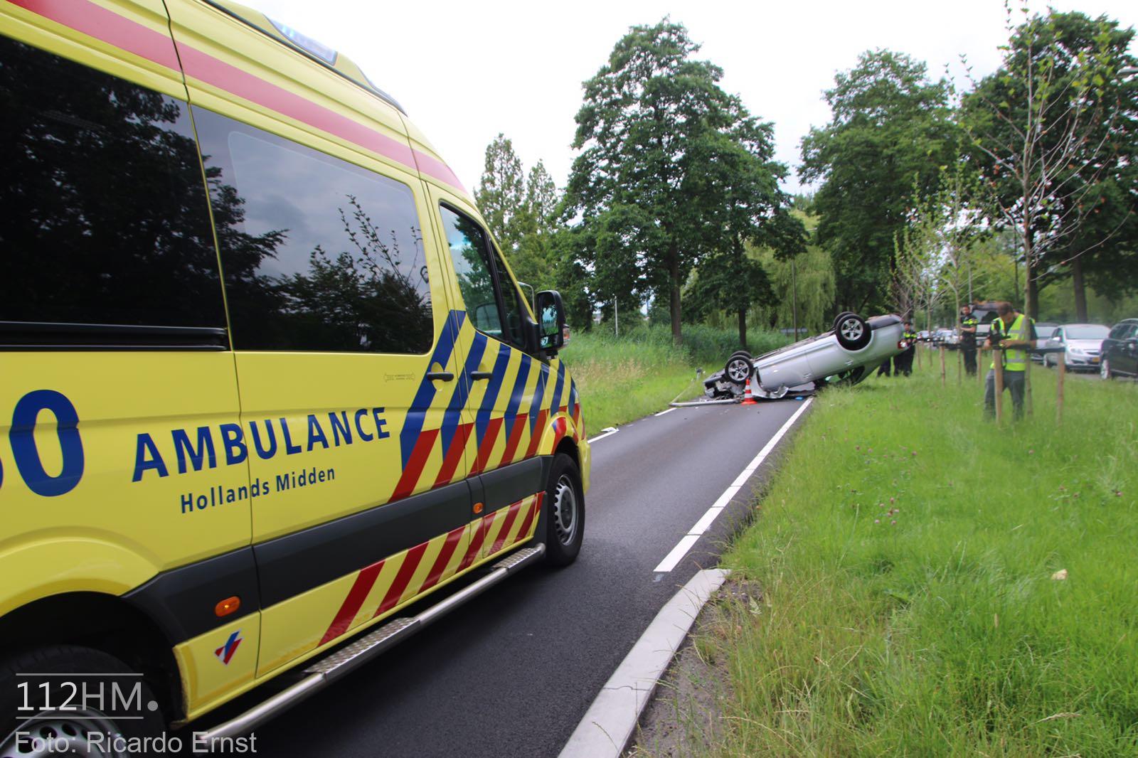 De automobilist heeft een lantaarnpaal geraakt en is daarna over de kop geslagen. De brandweer en ambulance zijn ter plaatse gekomen om het slachtoffer te helpen. Ook werd een traumahelikopter opgeroepen, deze werd echter vroegtijdig weer geannuleerd.