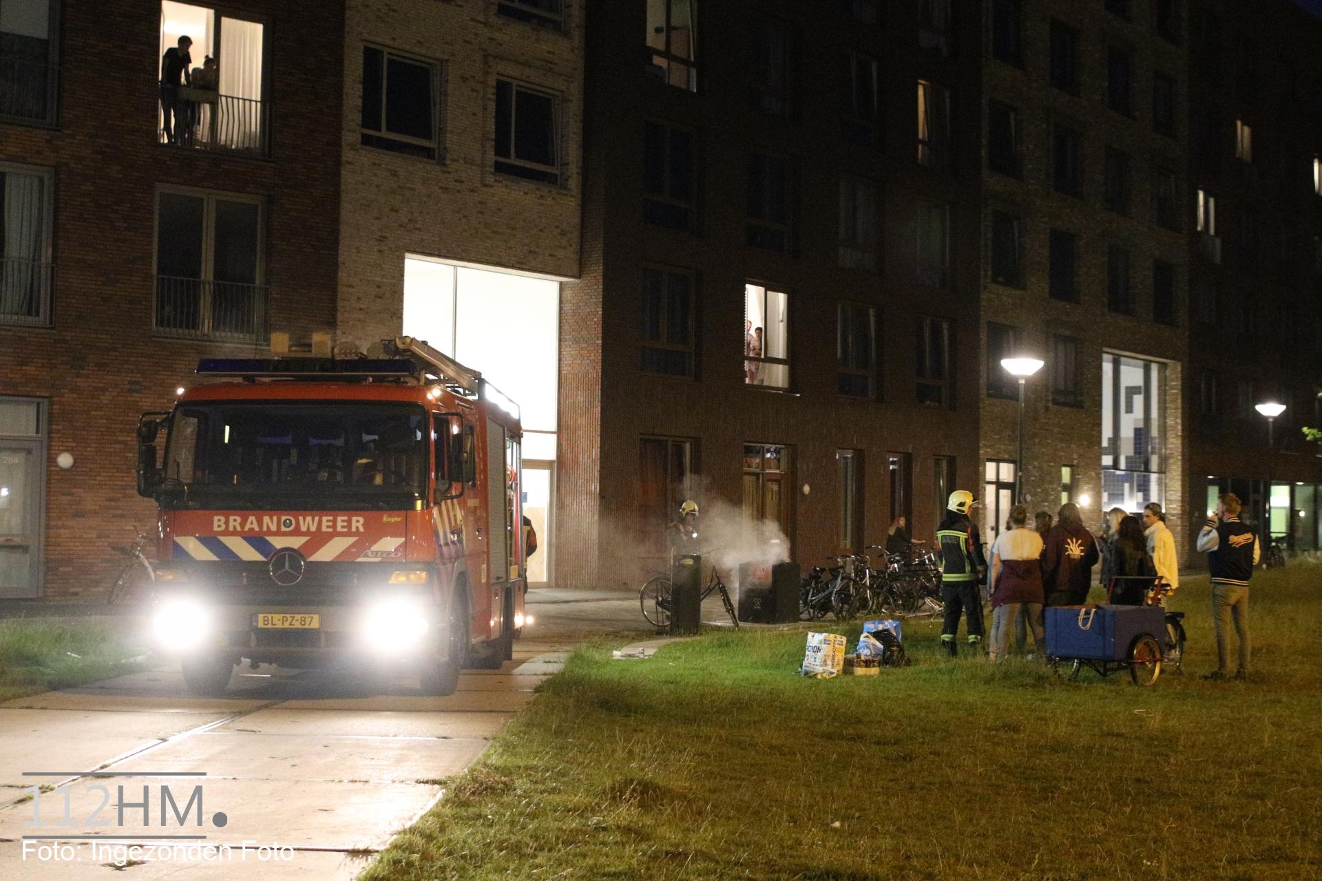 De brandweer heeft onder toeziend oog van de buurtbewoners de container laten vollopen met water. De brand ging gepaard met een flinke rookontwikkeling.