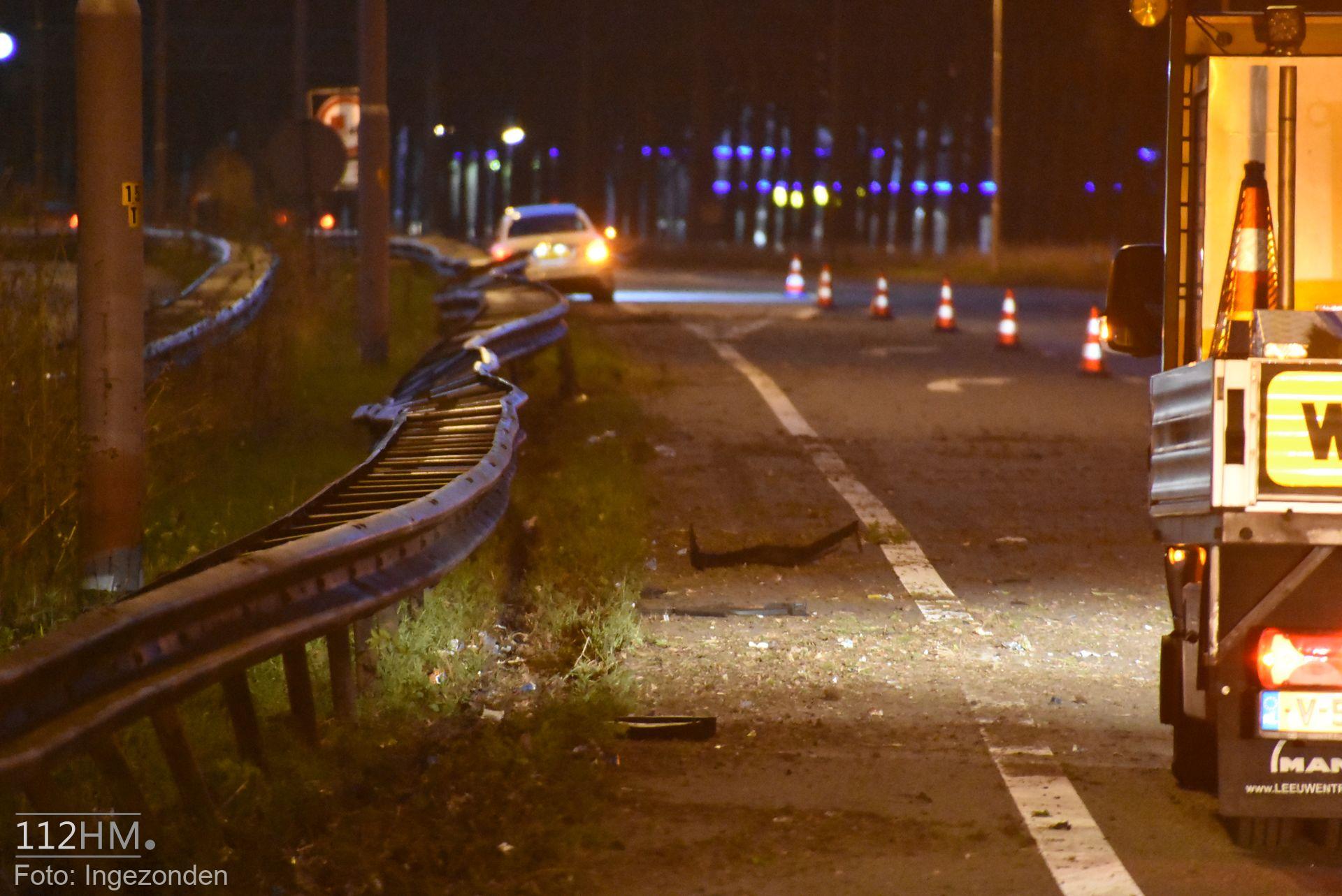De auto kwam uiteindelijk 230 meter verderop in de vangrail tot stilstand. De auto was aan de linkerzijde zwaar gehavend en zal naar alle waarschijnlijkheid total loss worden verklaard. Uiteindelijk hoefde niemand mee naar het ziekenhuis.