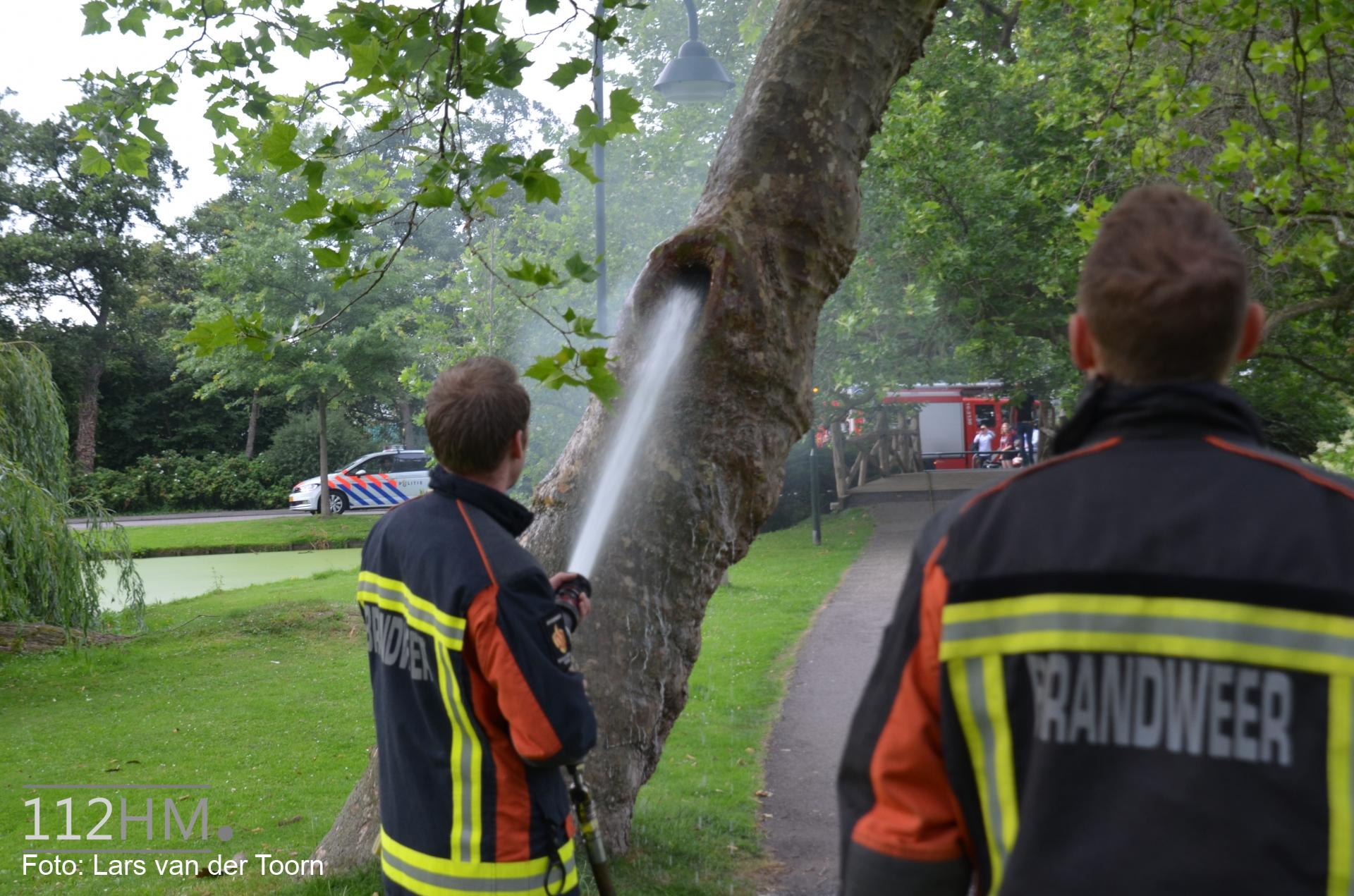 GOUDA – Maandagavond 10 juli woedde een brandje in een holle boom aan de Van Bergen IJzendoornpark in Gouda.