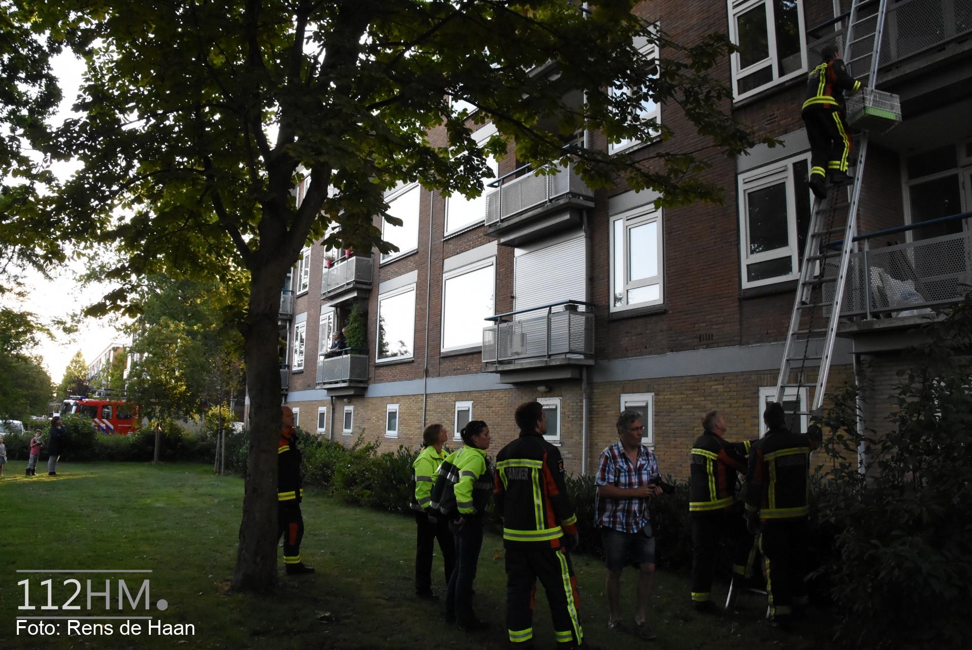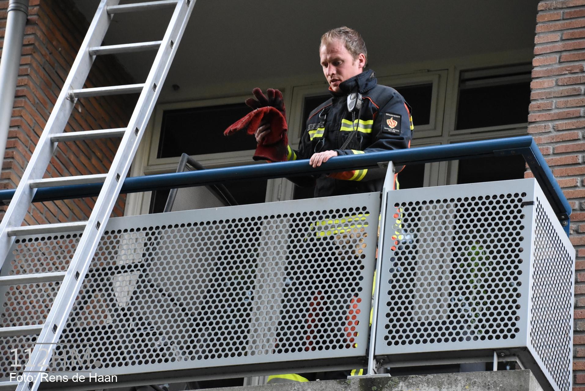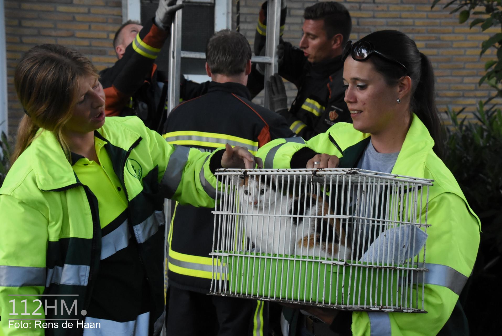 Ter plaatse bleek een kat van de derde verdieping, zijn ouderlijk huis, naar de tweede verdieping te zijn gevallen. Omdat de onderburen niet thuis waren en de kat niet te vangen was heeft de brandweer een ladder geplaatst.