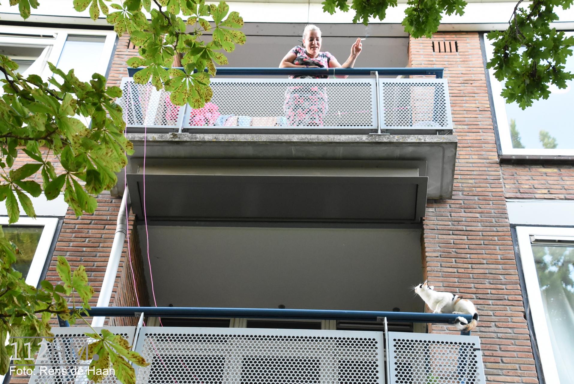 Toen men eenmaal op het balkon geklommen was, was de kat snel gevangen en kon deze worden terug gebracht bij zijn bezorgde baasje.