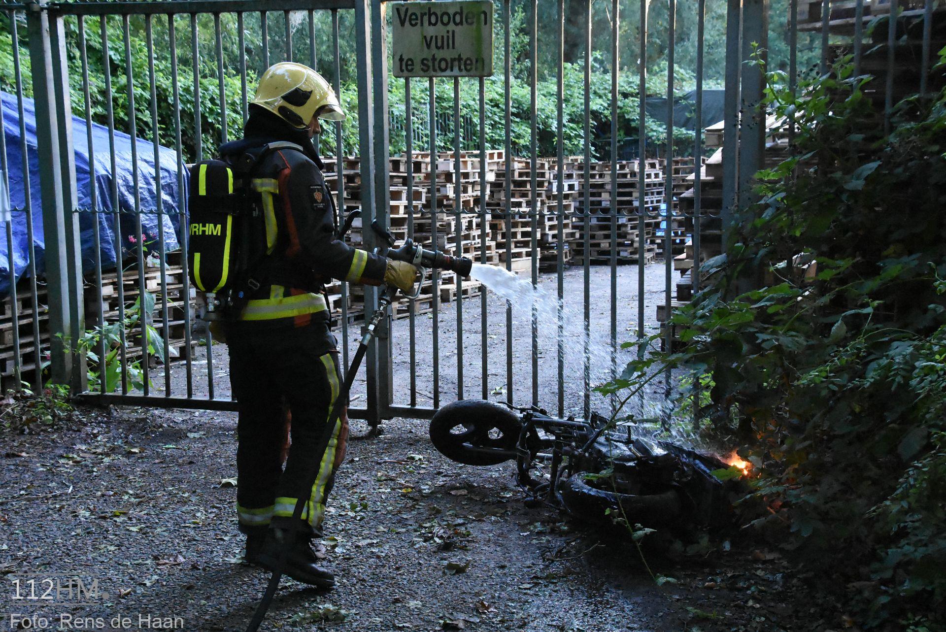 GOUDA – De brandweer werd deze morgen door een passant gealarmeerd dat er een scooter in brand zou staan langs de Noordhoef in Gouda.