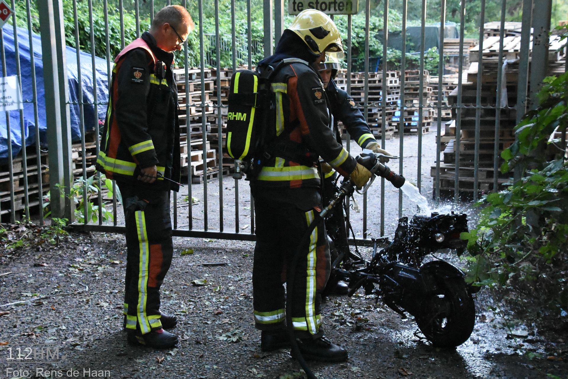 Ter plaatse bleek aan de rand van het Noorderhout inderdaad een scooter te liggen die grotendeels al was uitgebrand. Enkele kleine laatste vlammetjes waren de laatste ademhalingen van de brand.