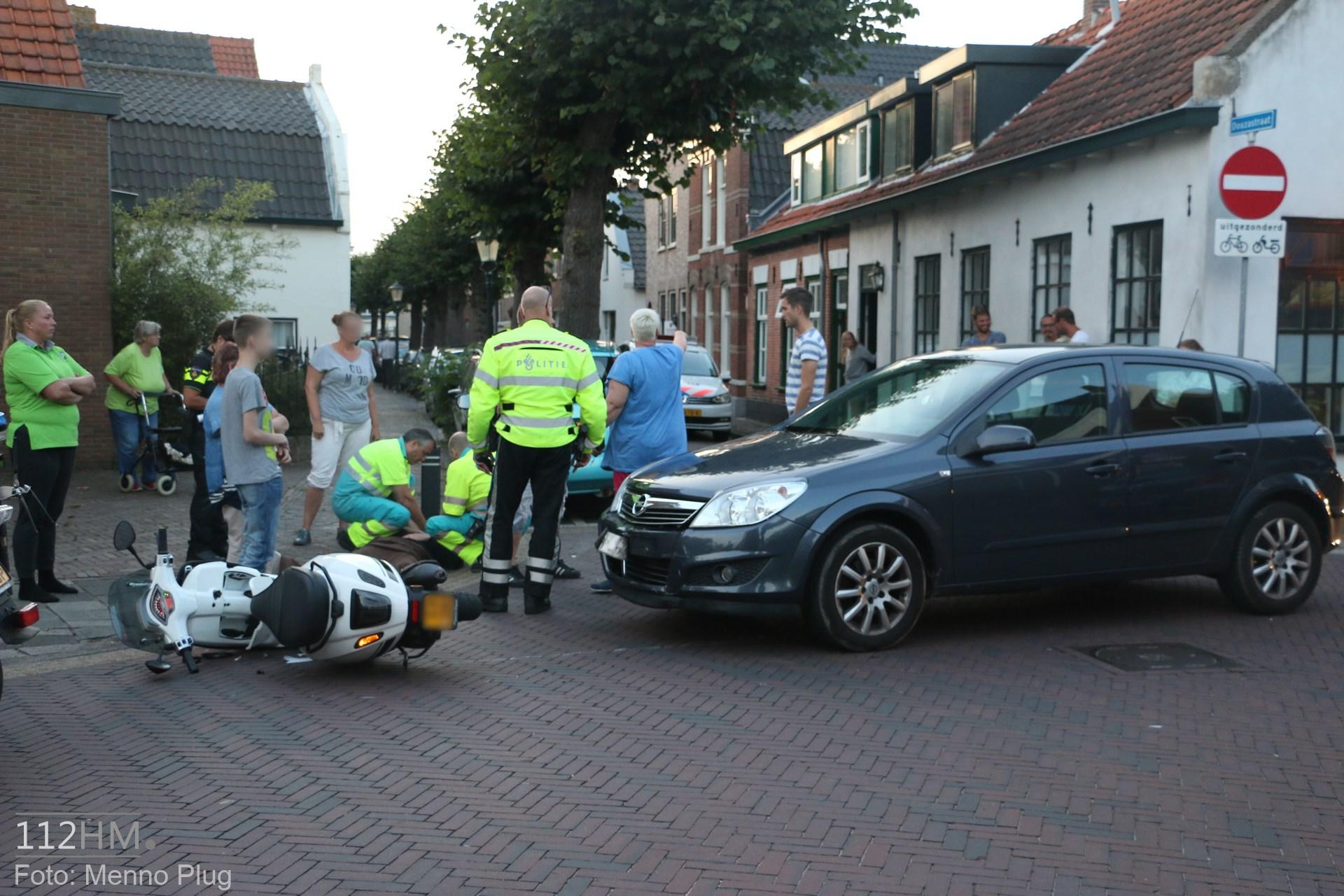 De scooterrijder vloog over de motorkap, daarna kwam hij lelijk ten val. De scooterrijder is door het ambulancepersoneel behandeld, echter hoefde hij niet mee naar het ziekenhuis.