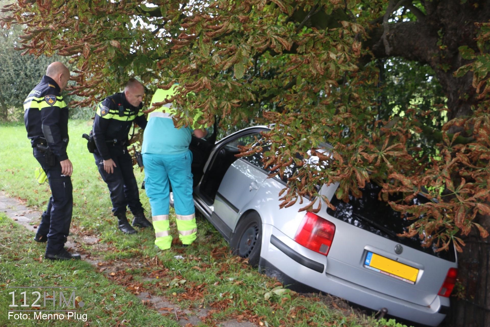 Auto rijdt tegen boom aan de Verlengde Vinkenweg in Sassenheim