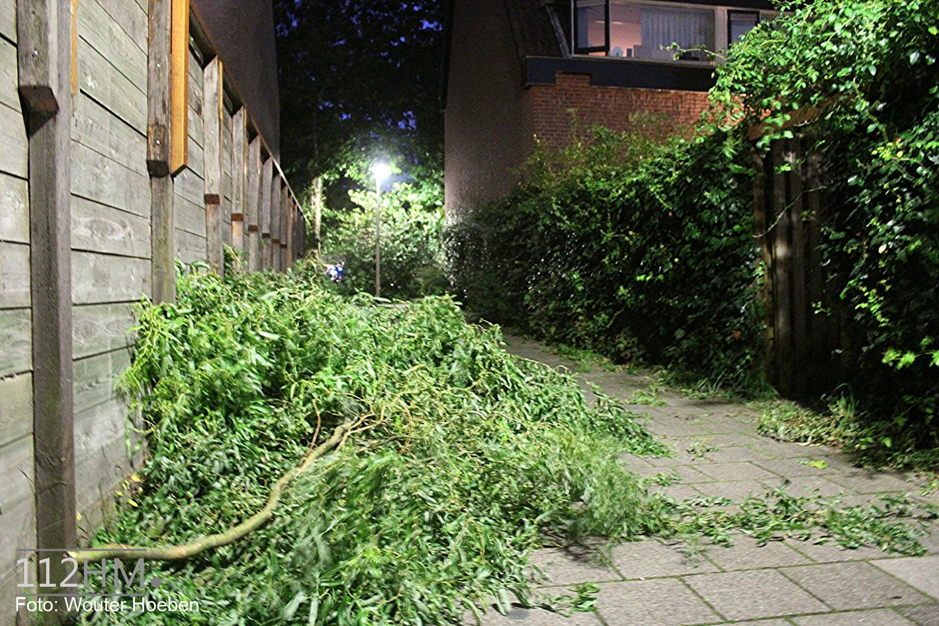 De boom zorgde voor acuut gevaar, de brandweer heeft het afgebroken deel, wat door de bewoner was vast geplakt met ductape, er af gezaagd.