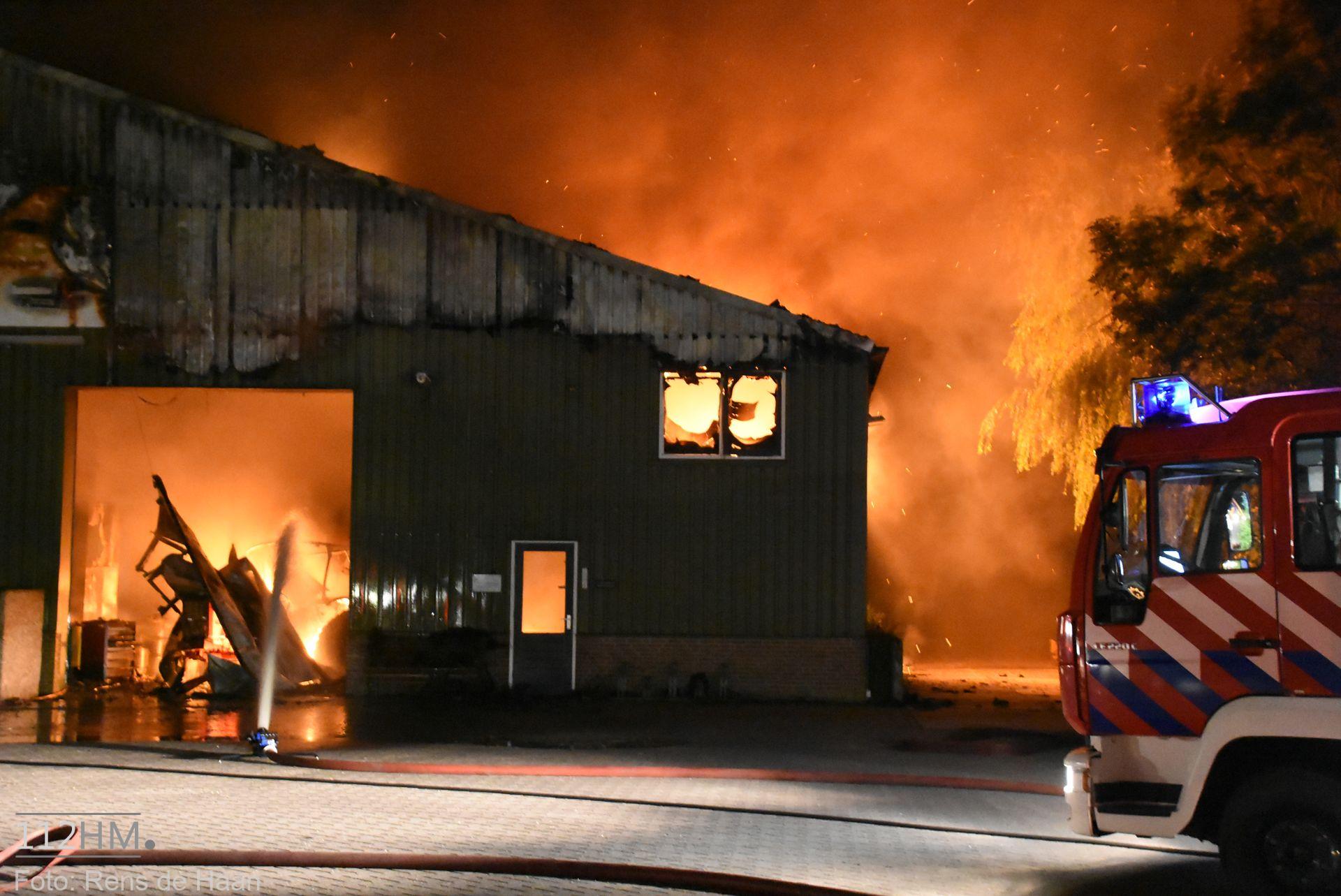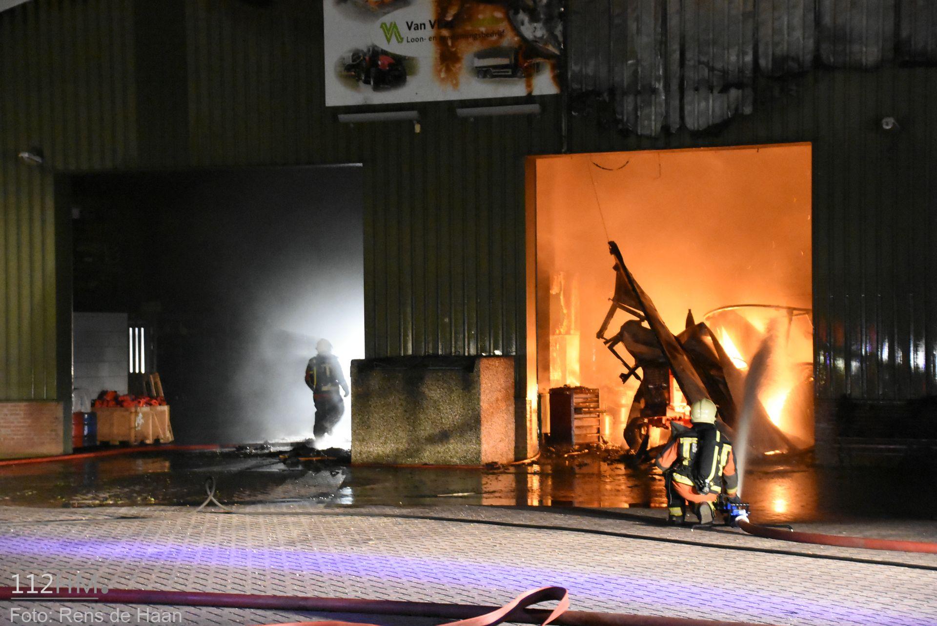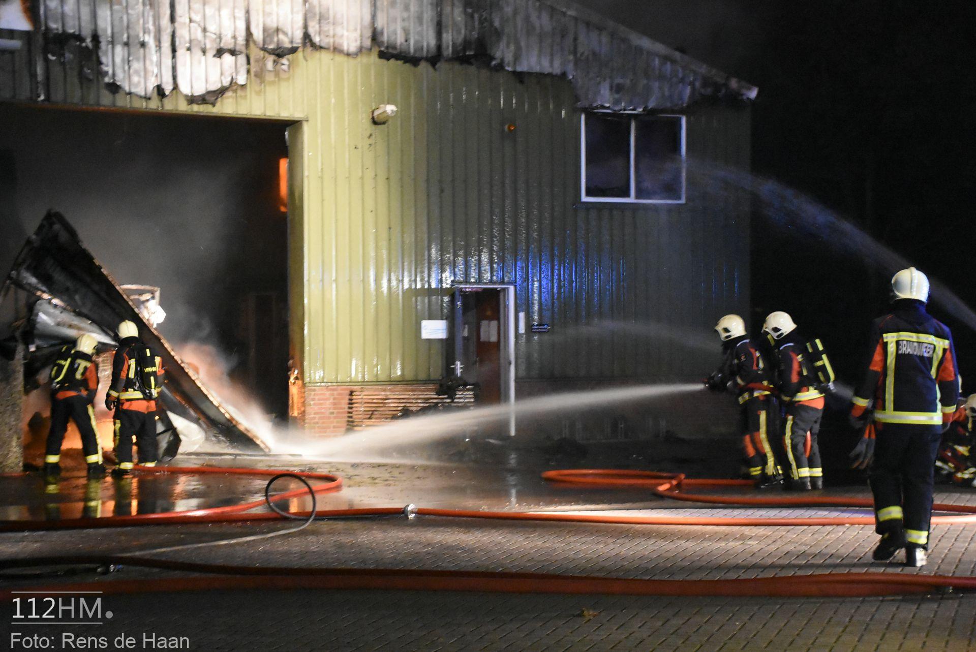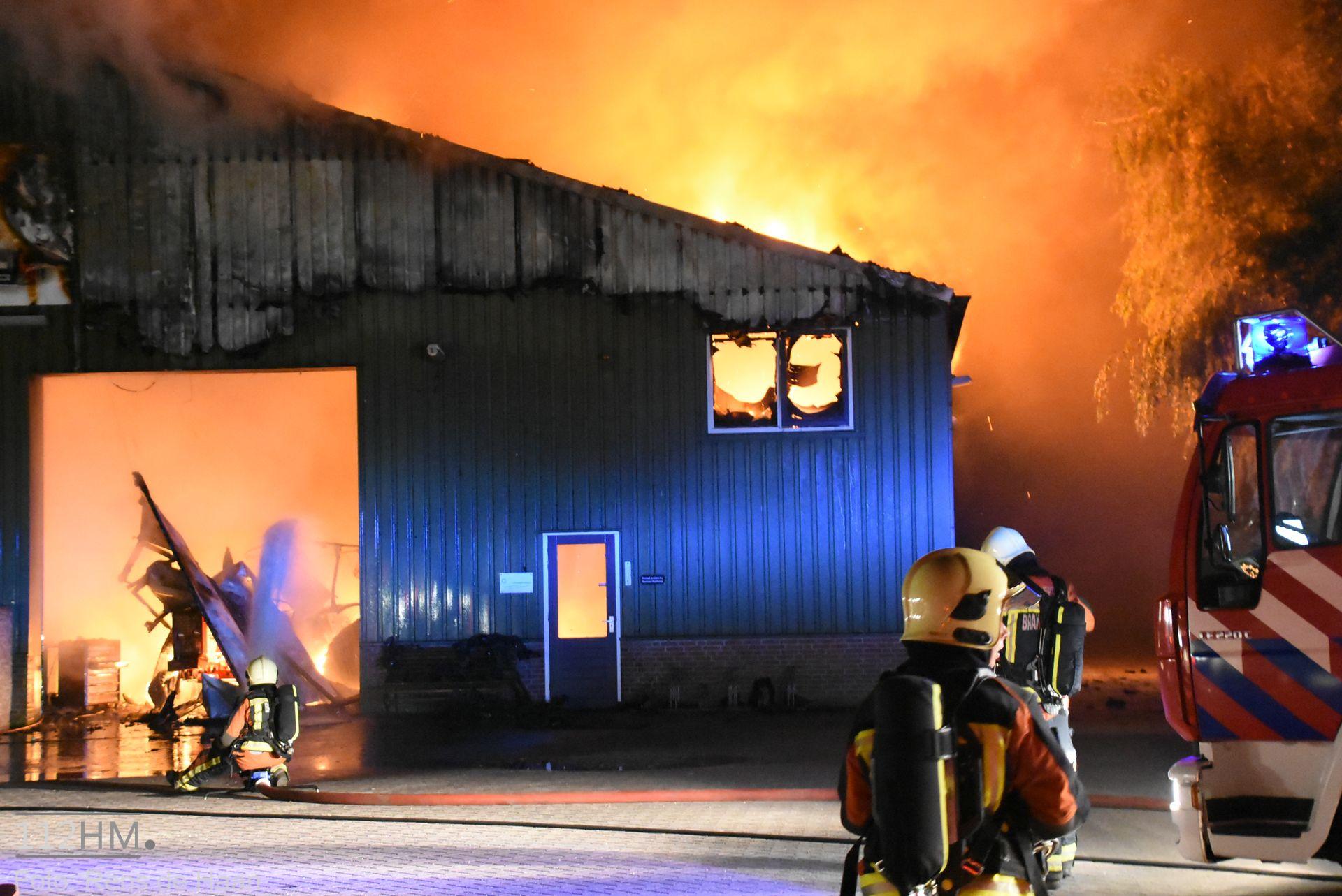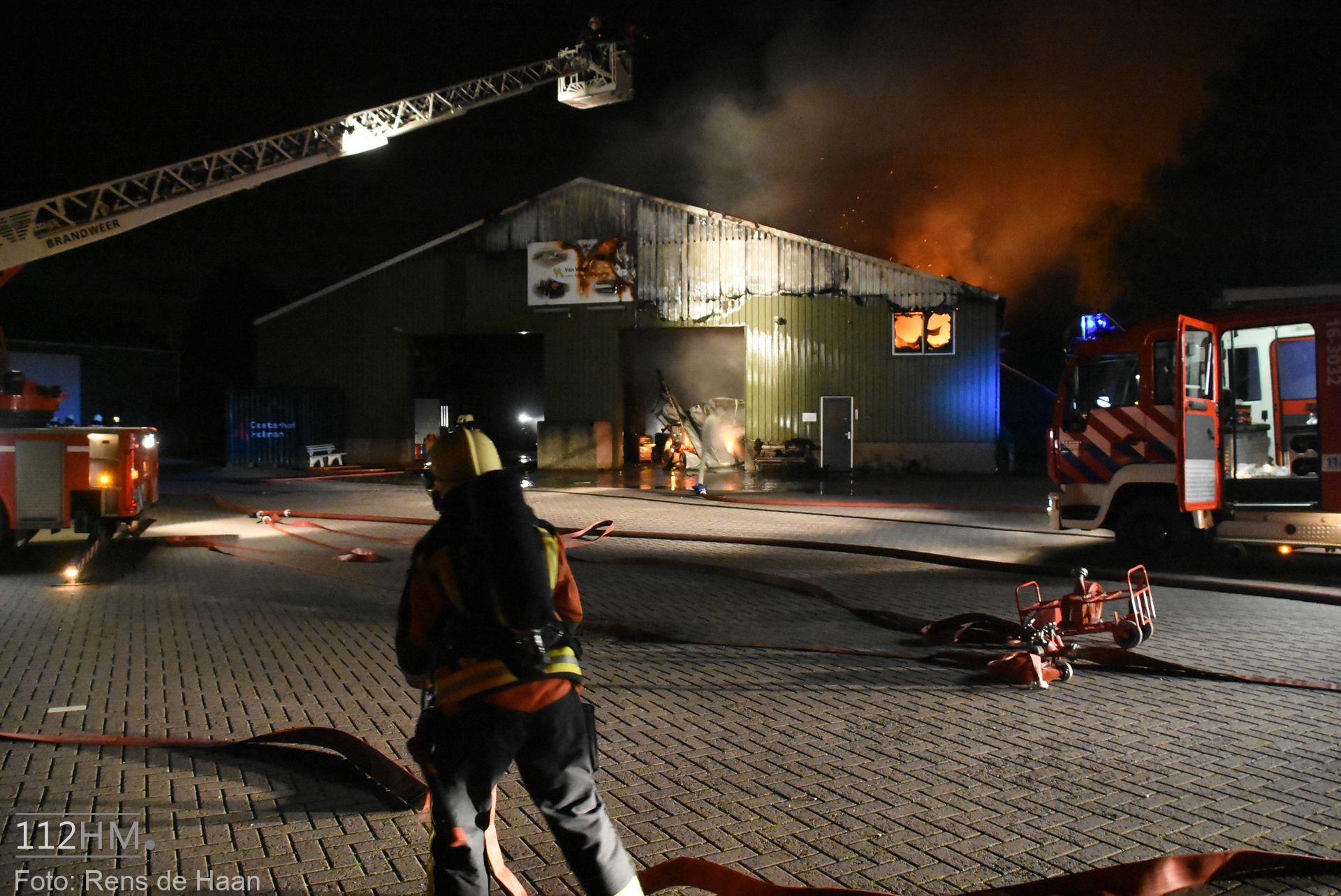 De razendsnel ter plaatse gekomen brandweer kon door direct in te zetten op de uitbreiding, voorkomen dat het achterste deel van de loods ook in vlammen op ging maar kon niet voorkomen dat het voorste deel van de loods en een bijbehorend kantoor volledig door de brand werden verwoest.