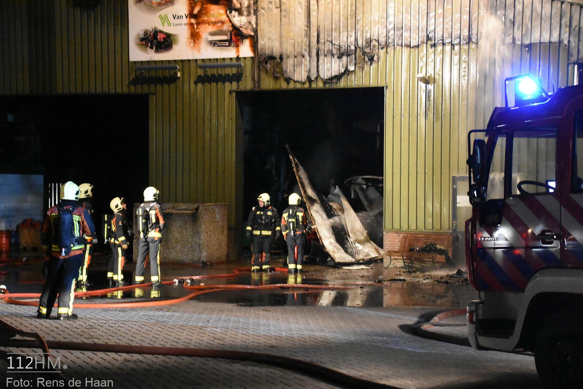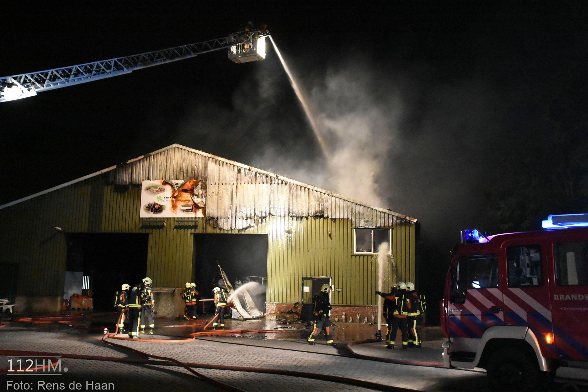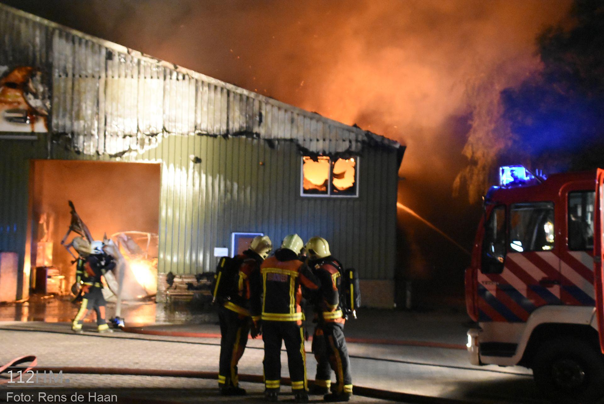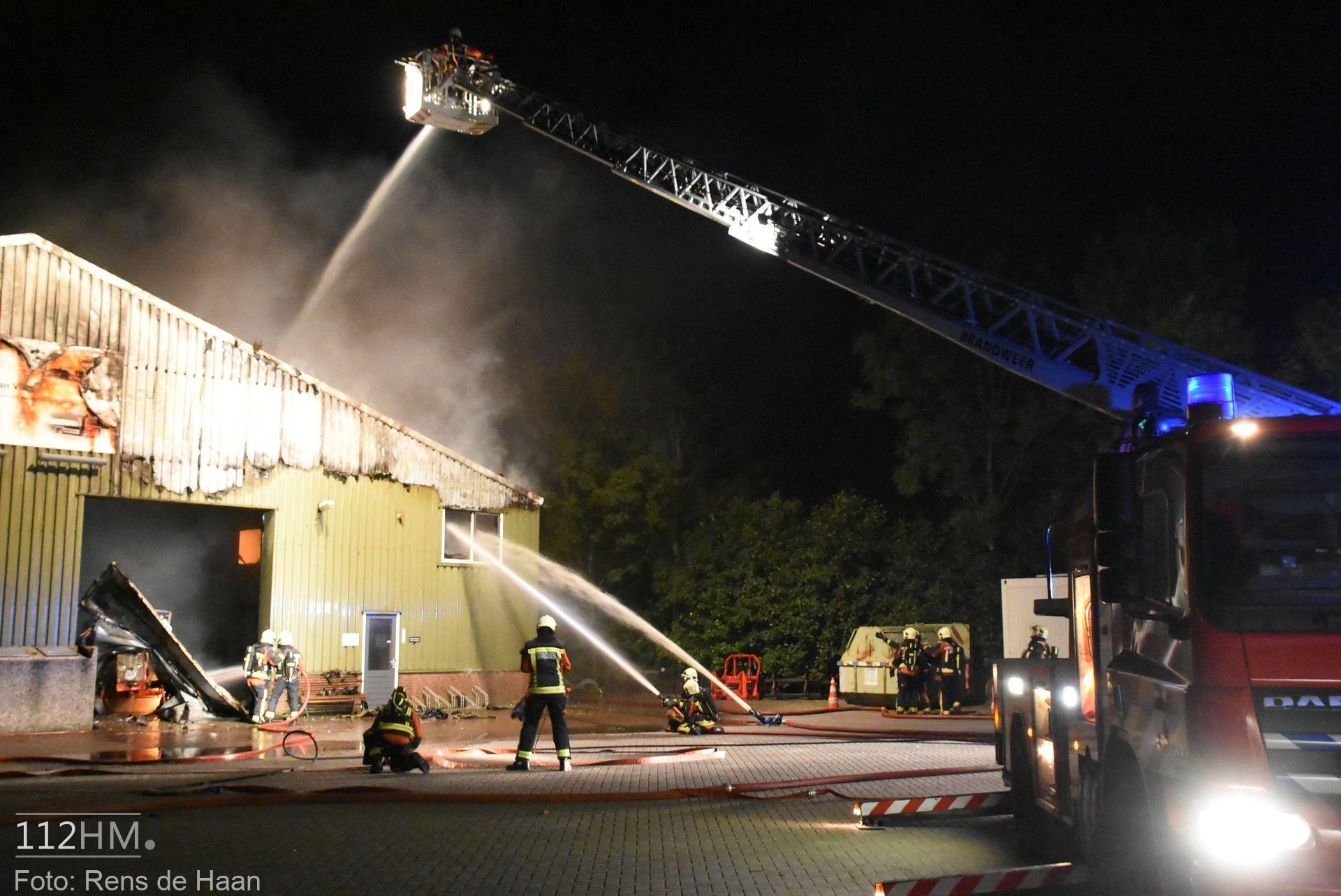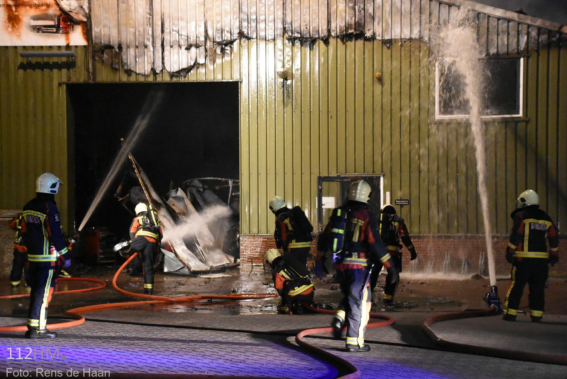 De razendsnel ter plaatse gekomen brandweer kon door direct in te zetten op de uitbreiding, voorkomen dat het achterste deel van de loods ook in vlammen op ging maar kon niet voorkomen dat het voorste deel van de loods en een bijbehorend kantoor volledig door de brand werden verwoest.