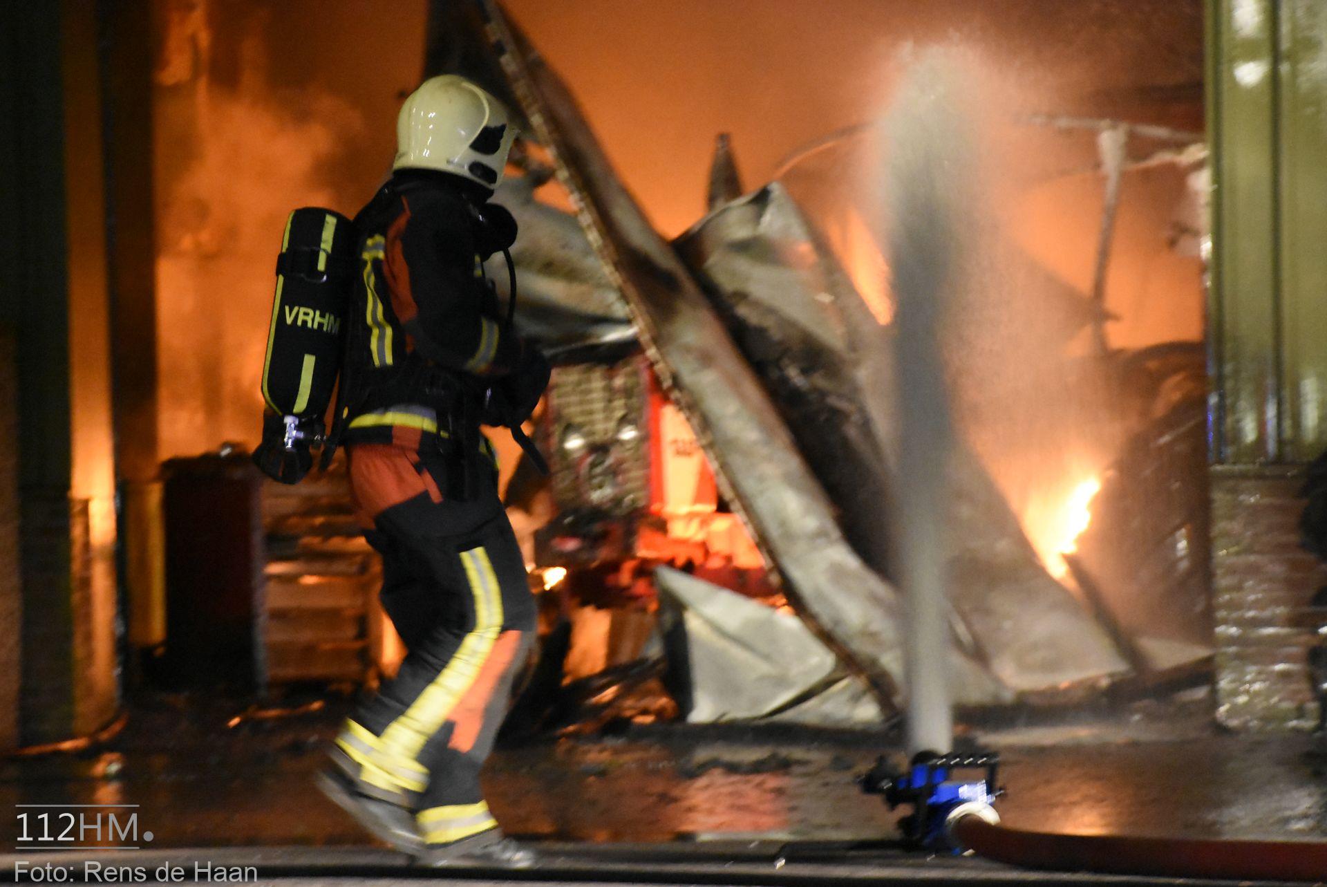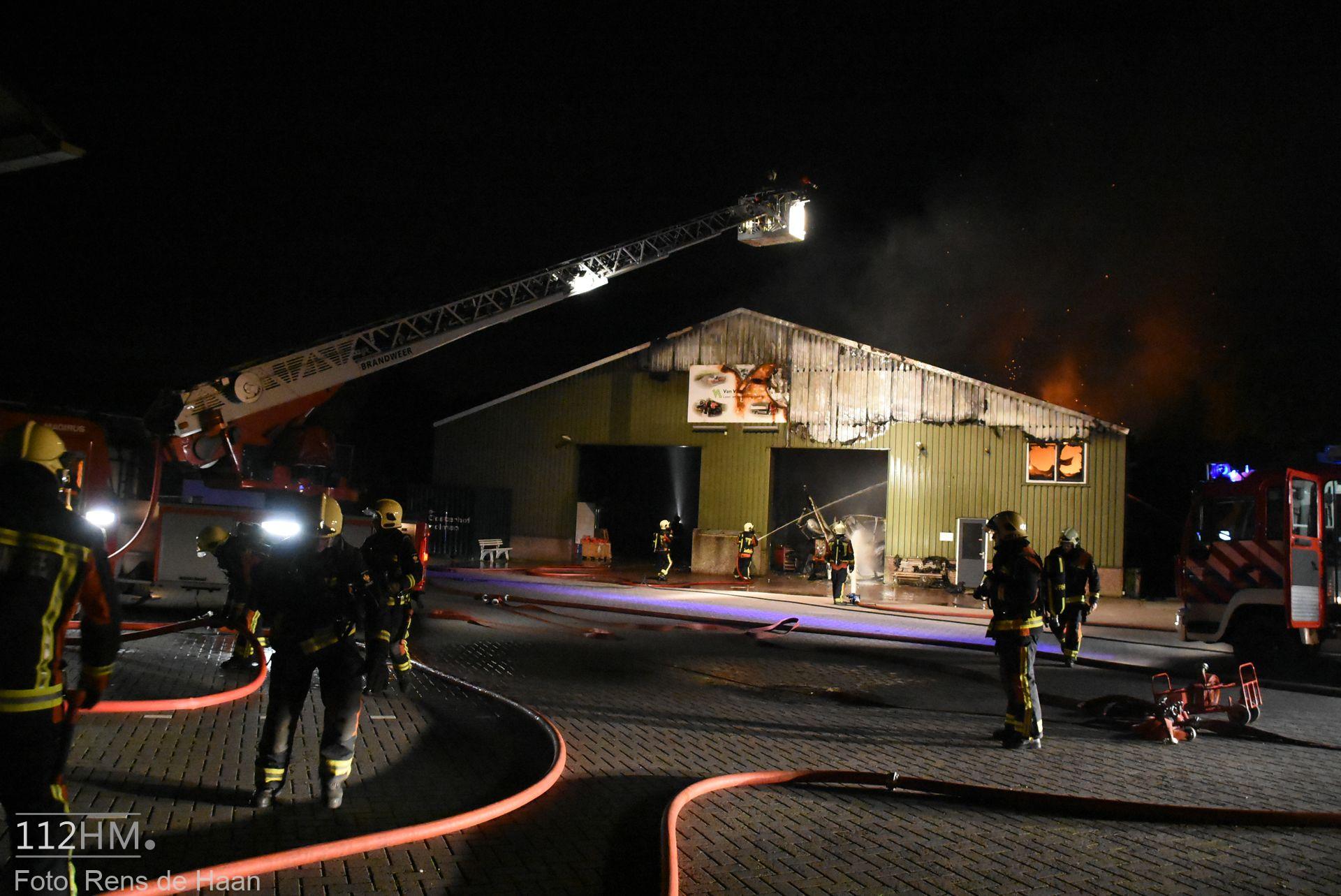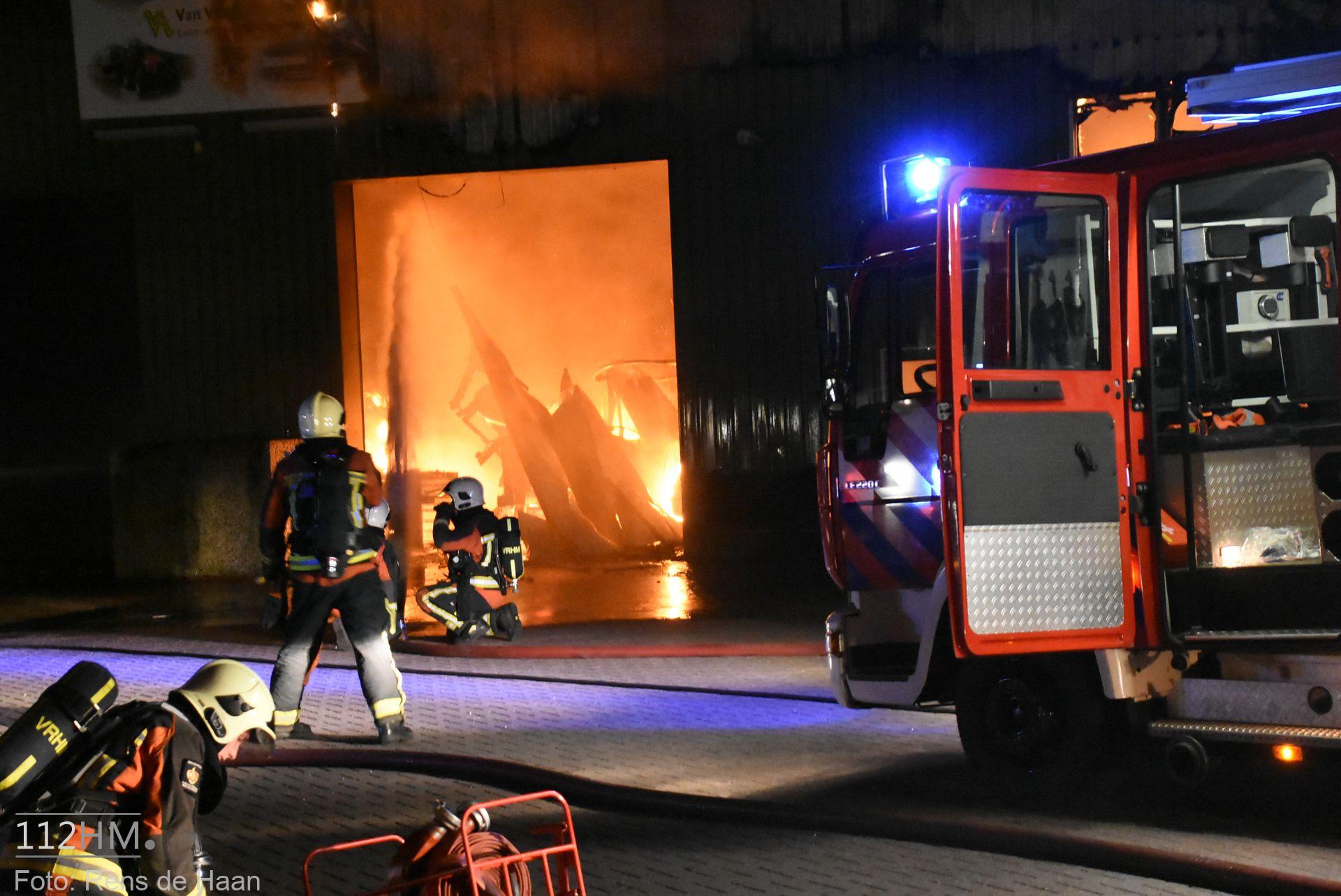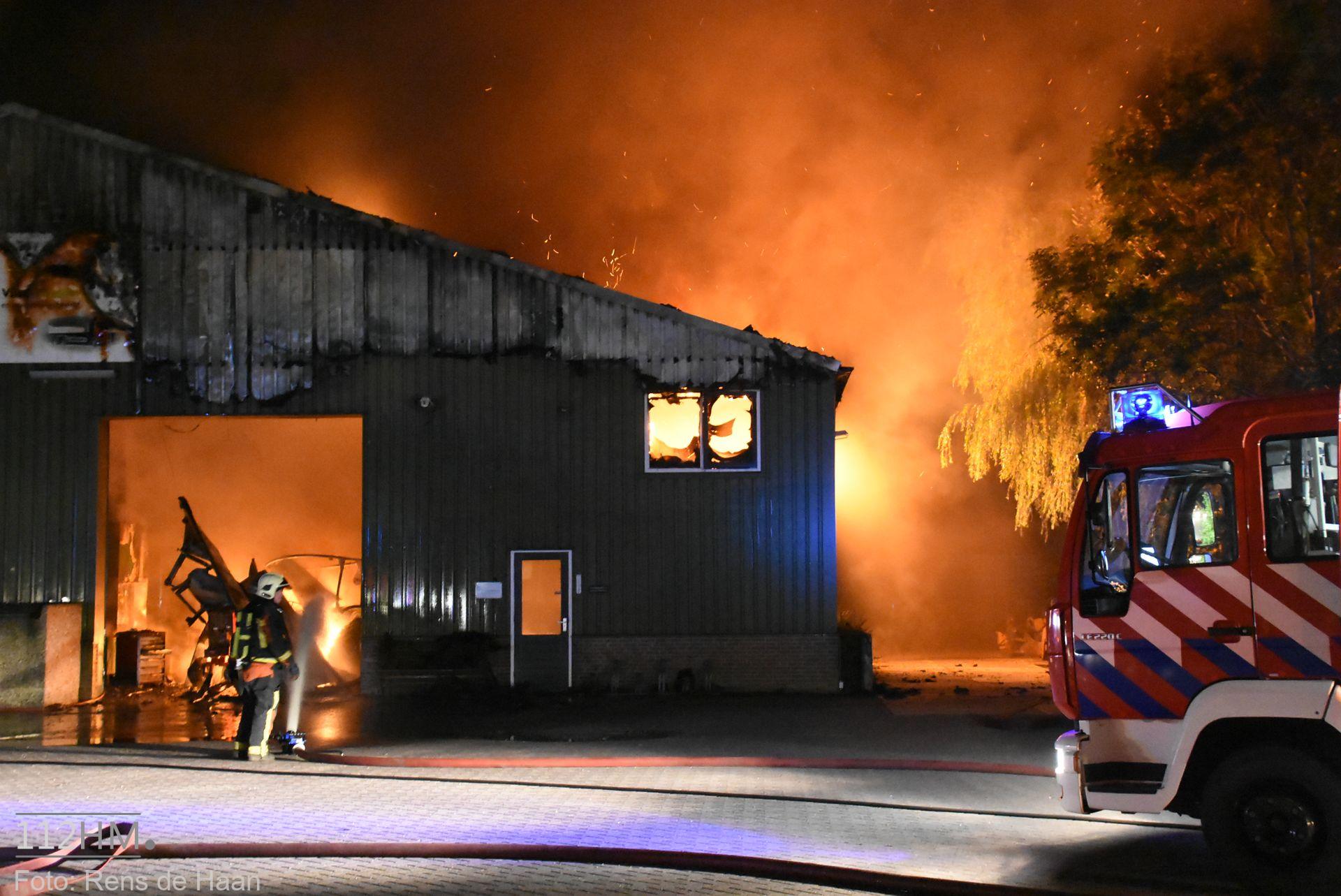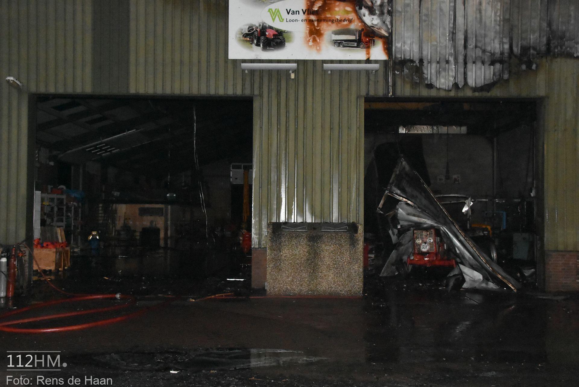 De razendsnel ter plaatse gekomen brandweer kon door direct in te zetten op de uitbreiding, voorkomen dat het achterste deel van de loods ook in vlammen op ging maar kon niet voorkomen dat het voorste deel van de loods en een bijbehorend kantoor volledig door de brand werden verwoest.