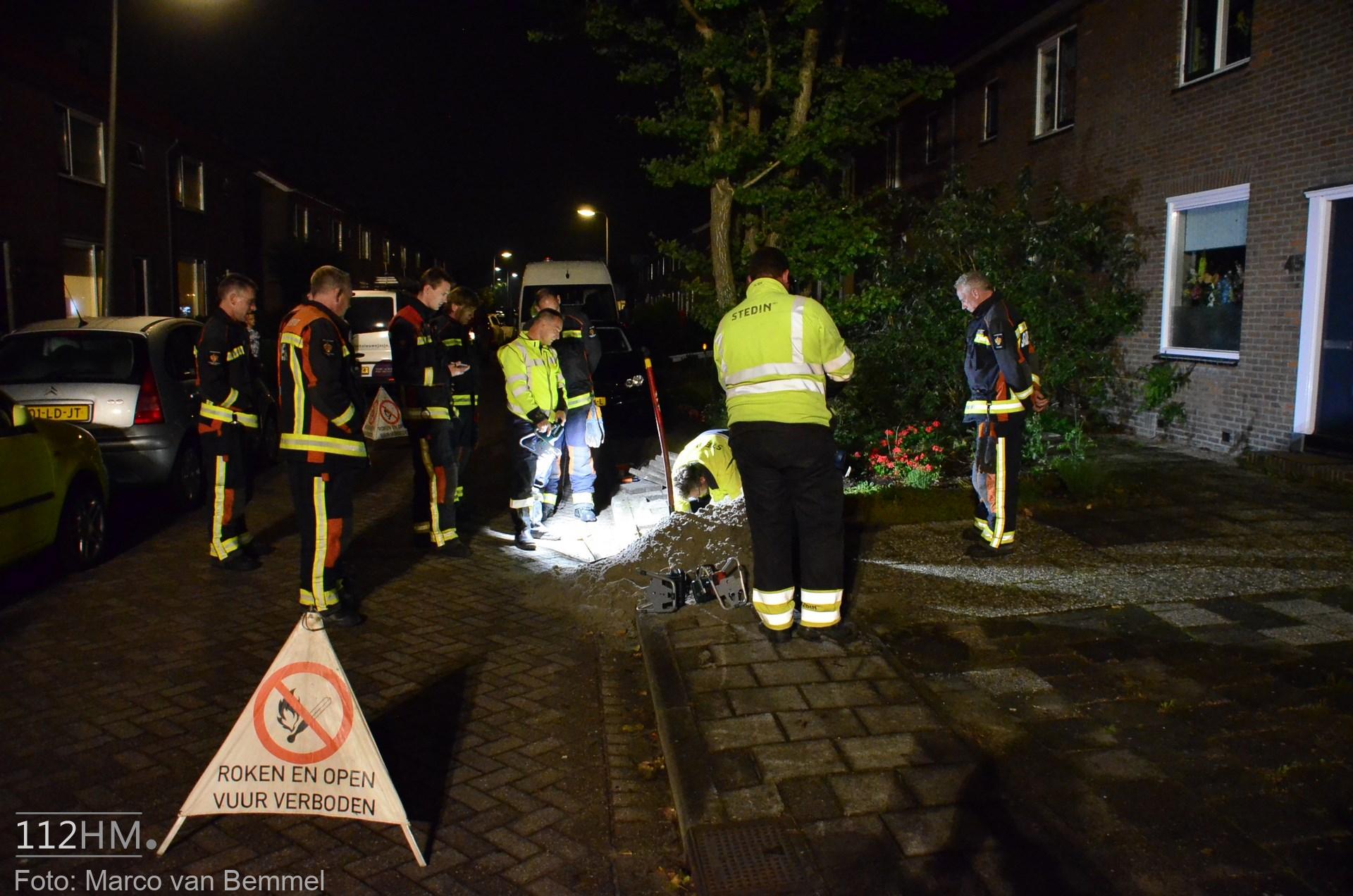 Ter plaatse bleek er een sterke geur waarneembaar. De brandweer heeft diverse metingen verricht en er werd geconstateerd dat het eventuele lek zich onder de stoep zou bevinden. Medewerkers van Stedin, welke snel ter plaatse waren, hebben de stoep open gegraven waarna er daadwerkelijk een lek werd gevonden.