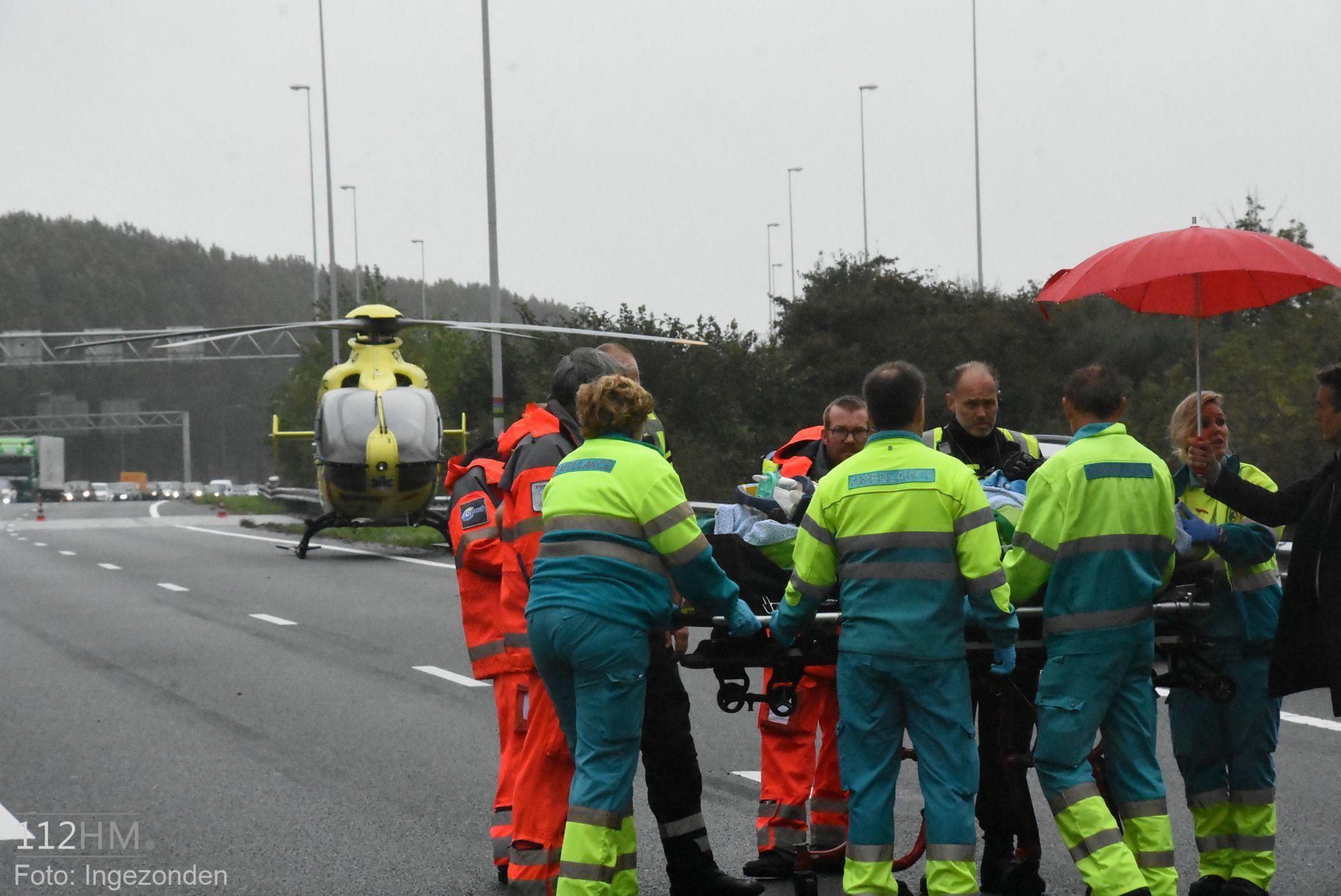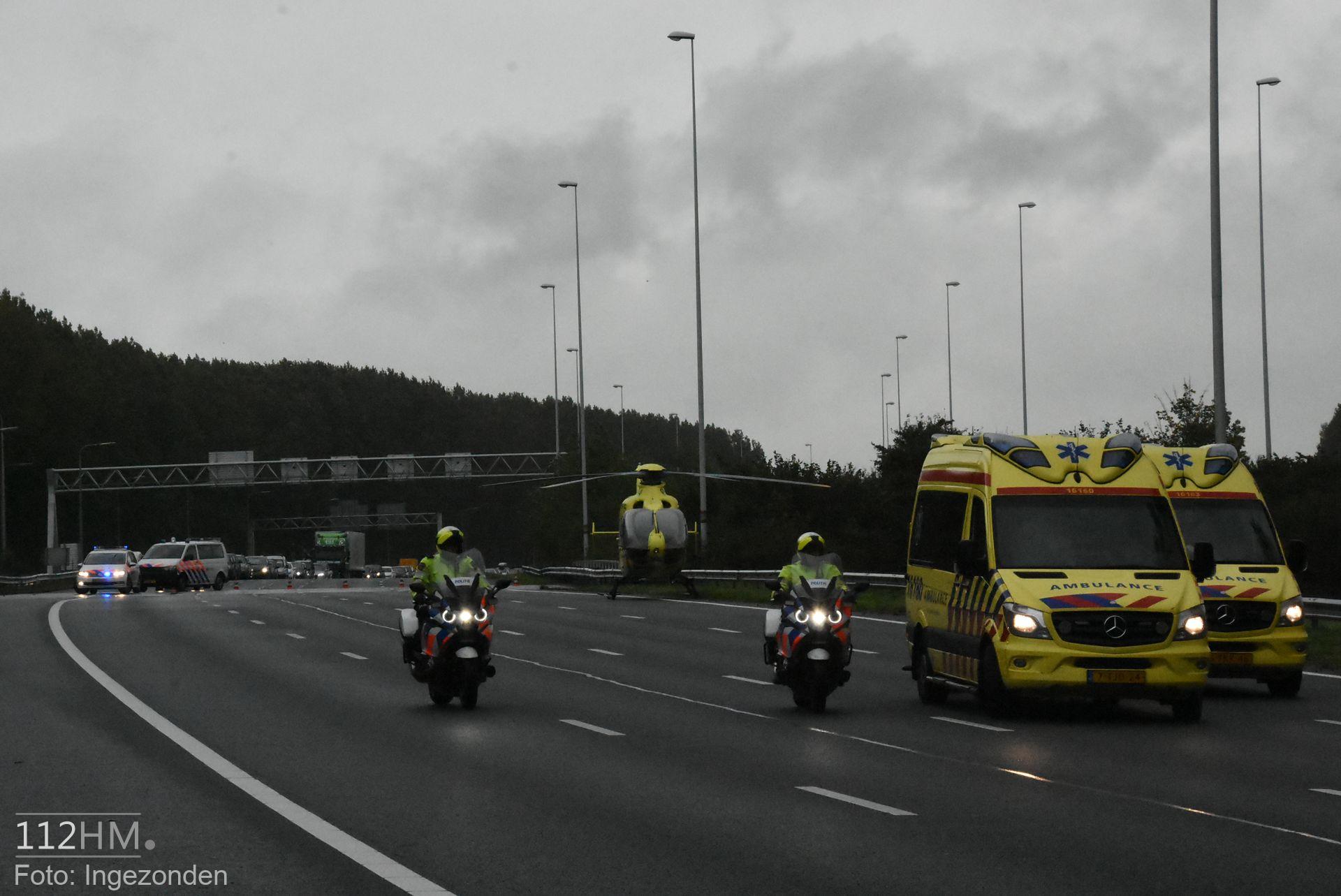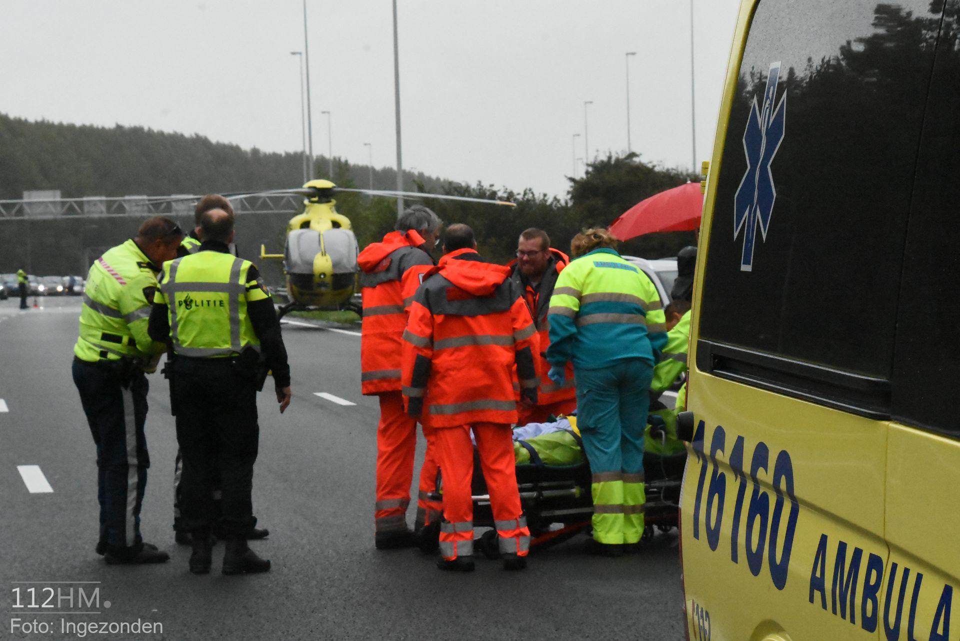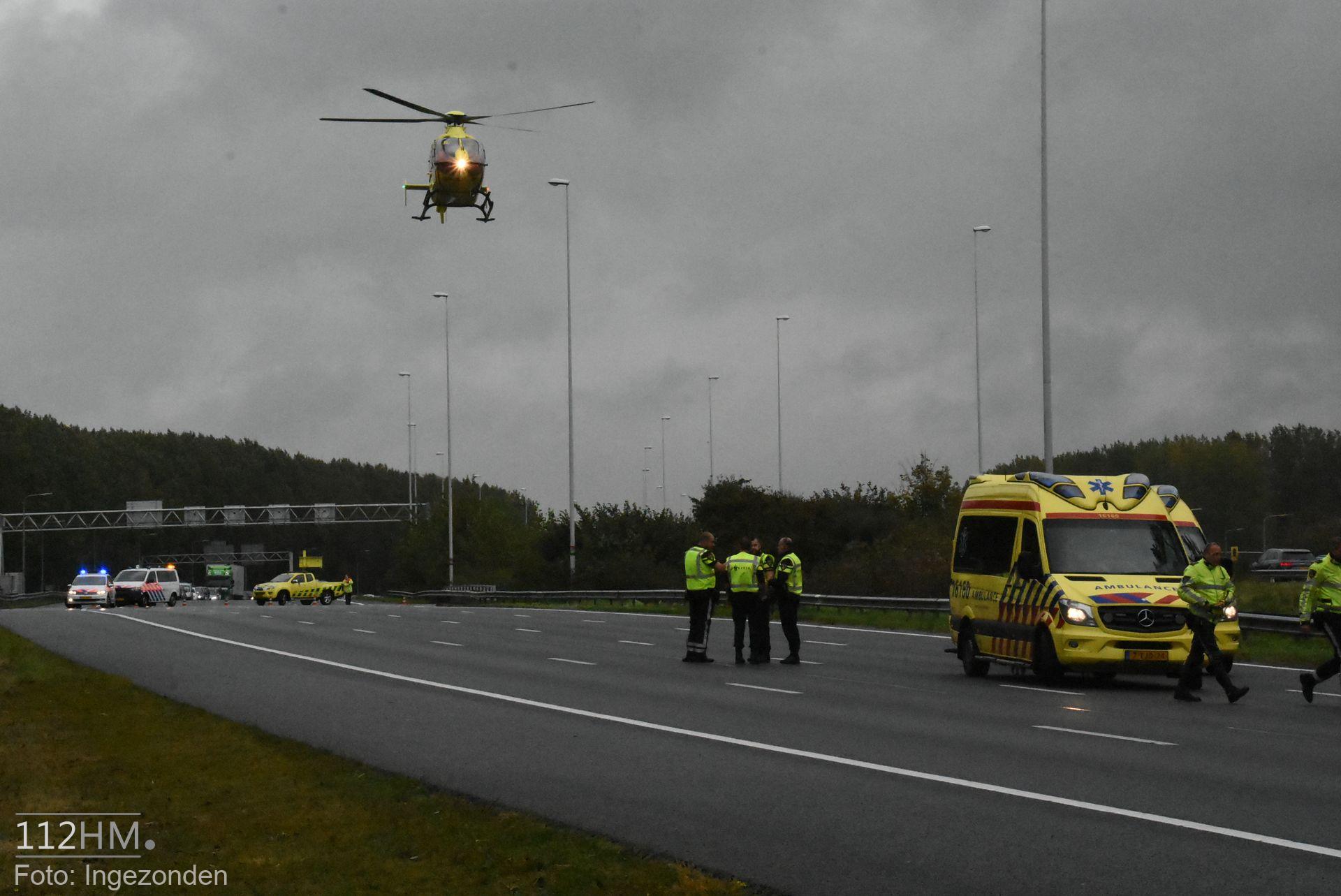 De traumahelikopter landde op de snelweg en het mobiel medisch team ontfermde zich samen met het ambulance personeel over het slachtoffer waarna deze met spoed naar het ziekenhuis werd vervoerd.