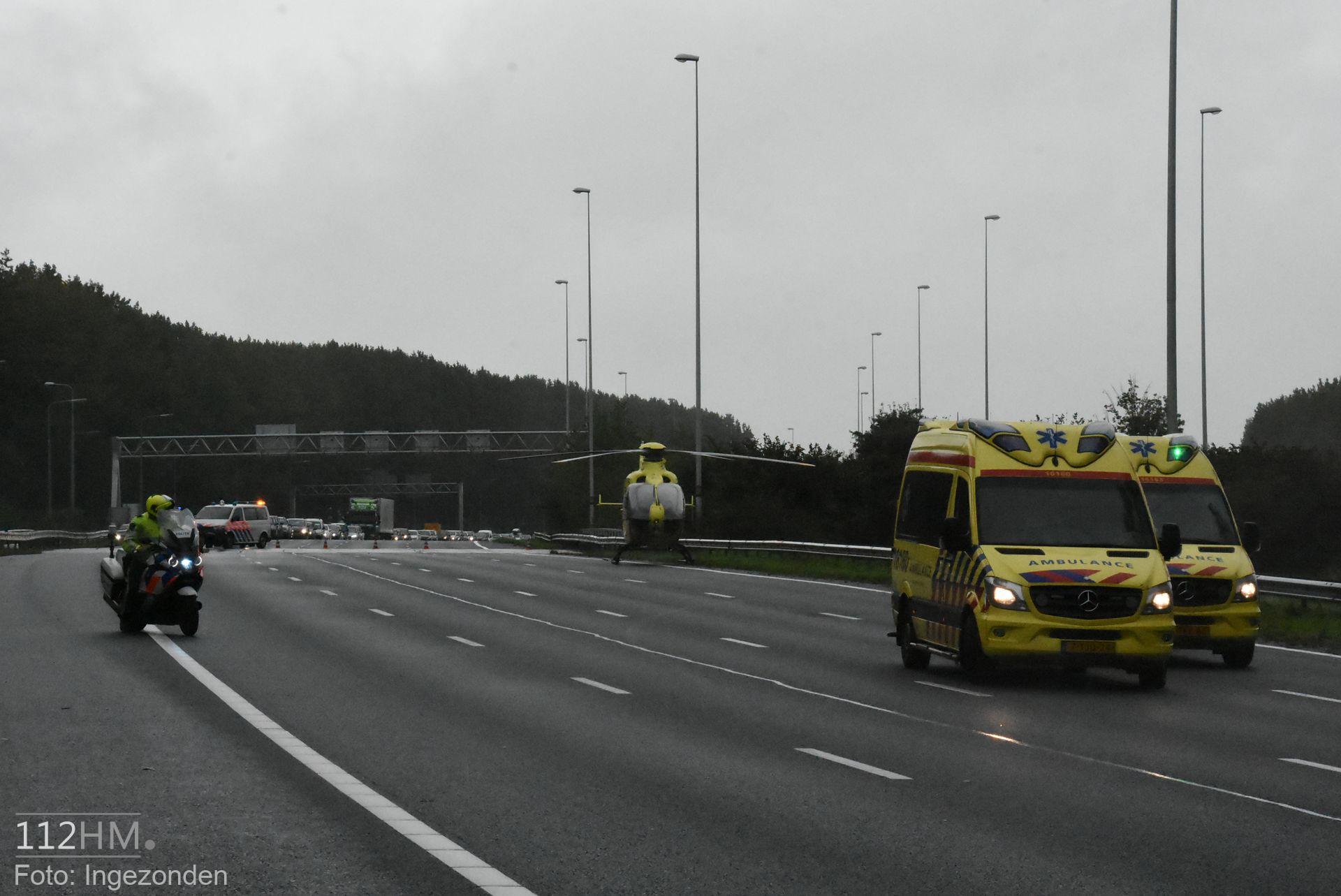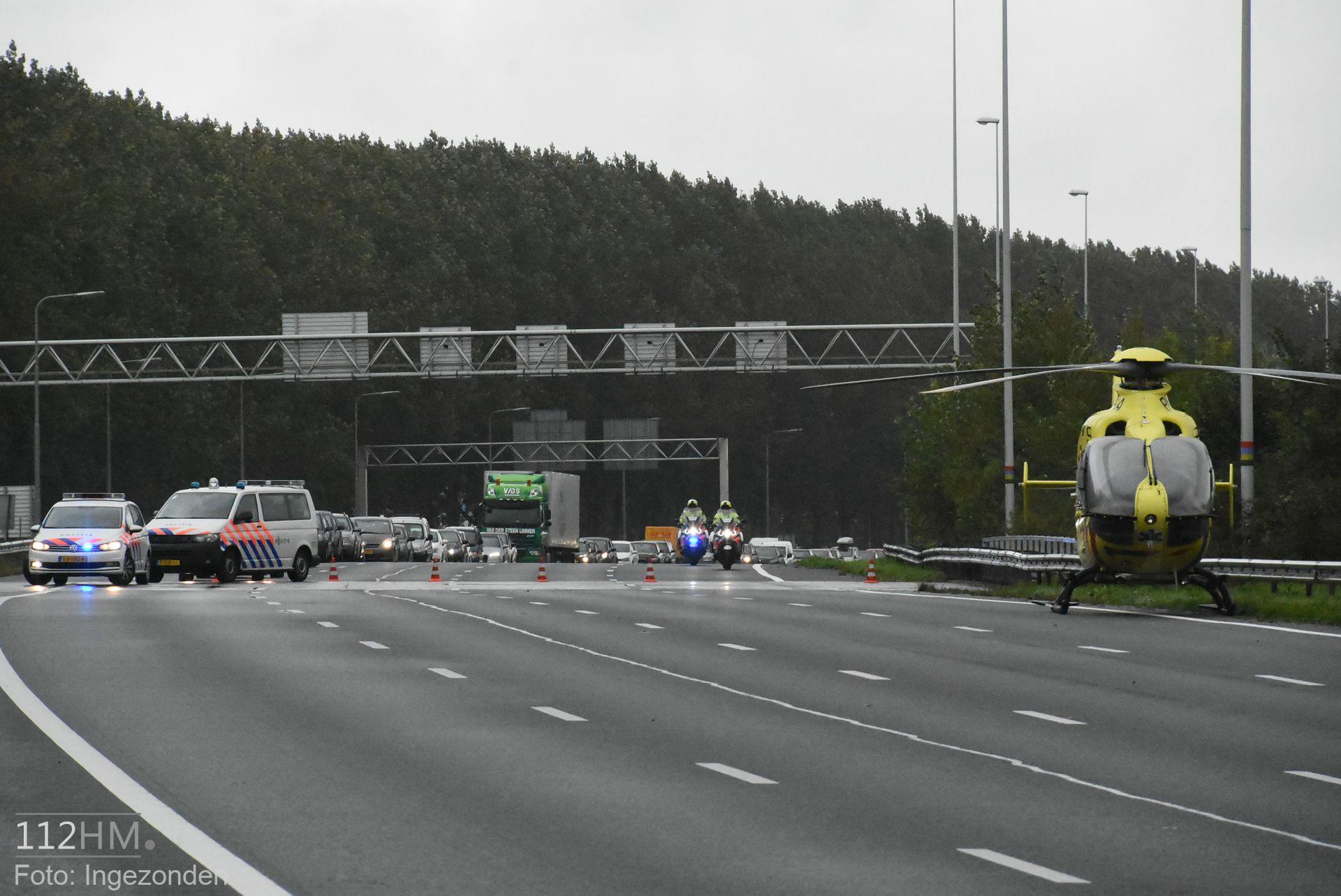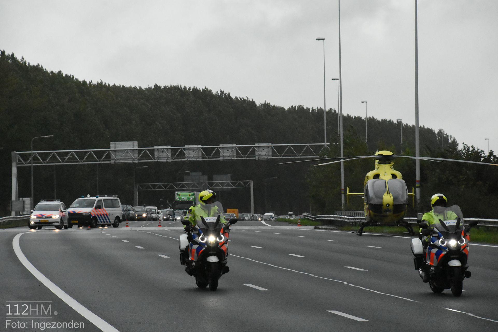 De traumahelikopter landde op de snelweg en het mobiel medisch team ontfermde zich samen met het ambulance personeel over het slachtoffer waarna deze met spoed naar het ziekenhuis werd vervoerd.