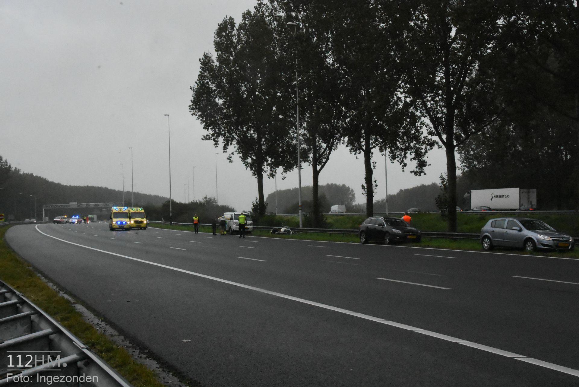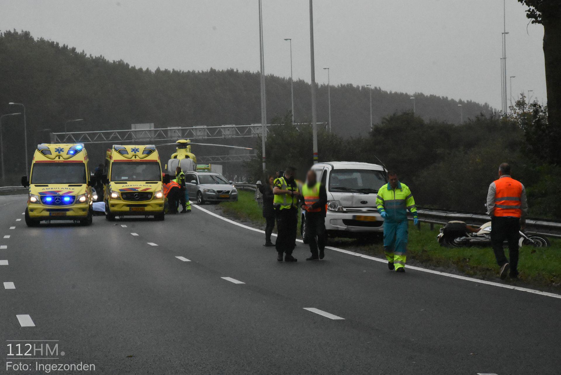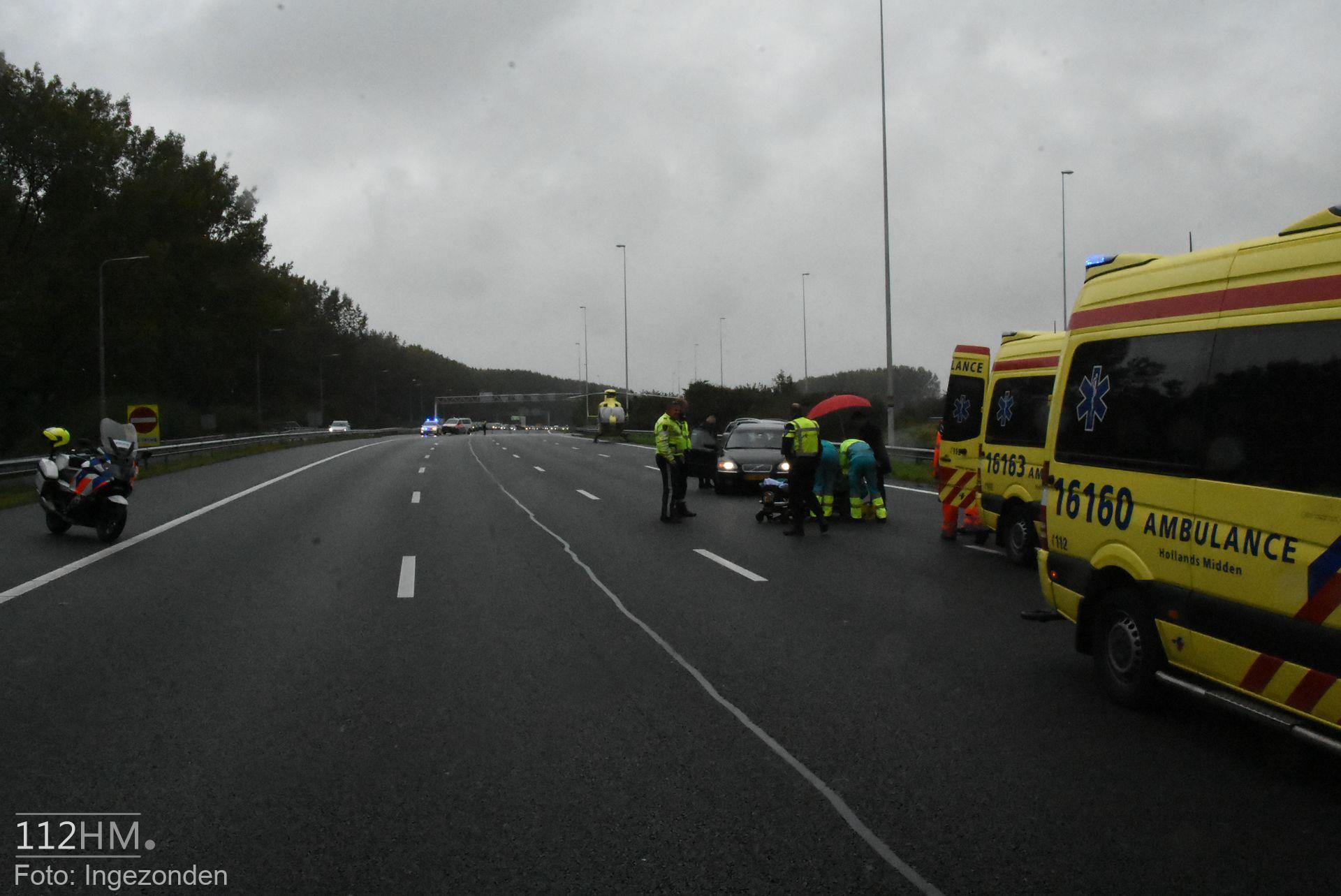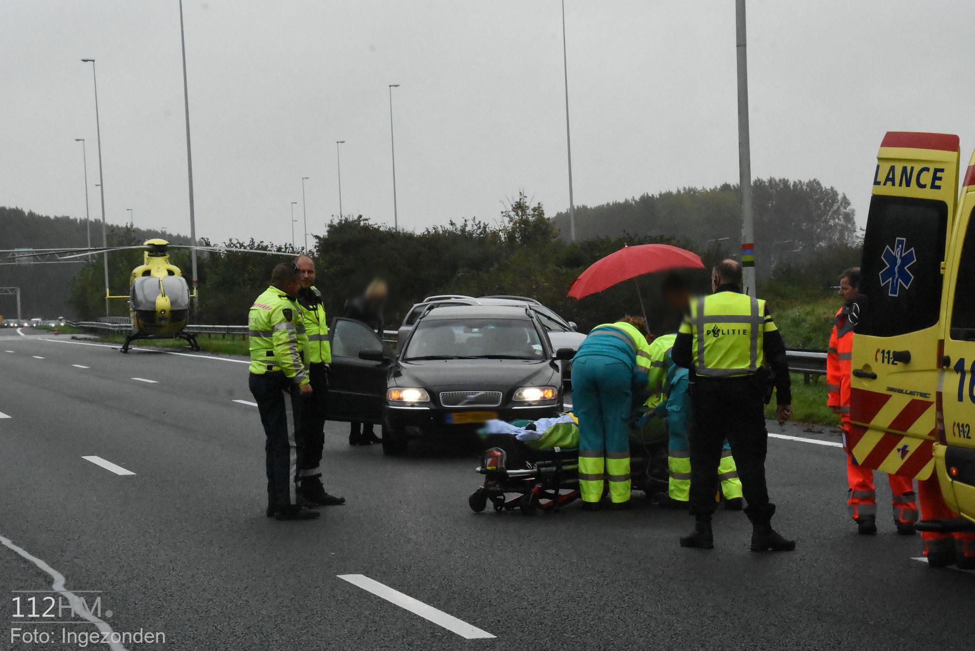 De traumahelikopter landde op de snelweg en het mobiel medisch team ontfermde zich samen met het ambulance personeel over het slachtoffer waarna deze met spoed naar het ziekenhuis werd vervoerd.