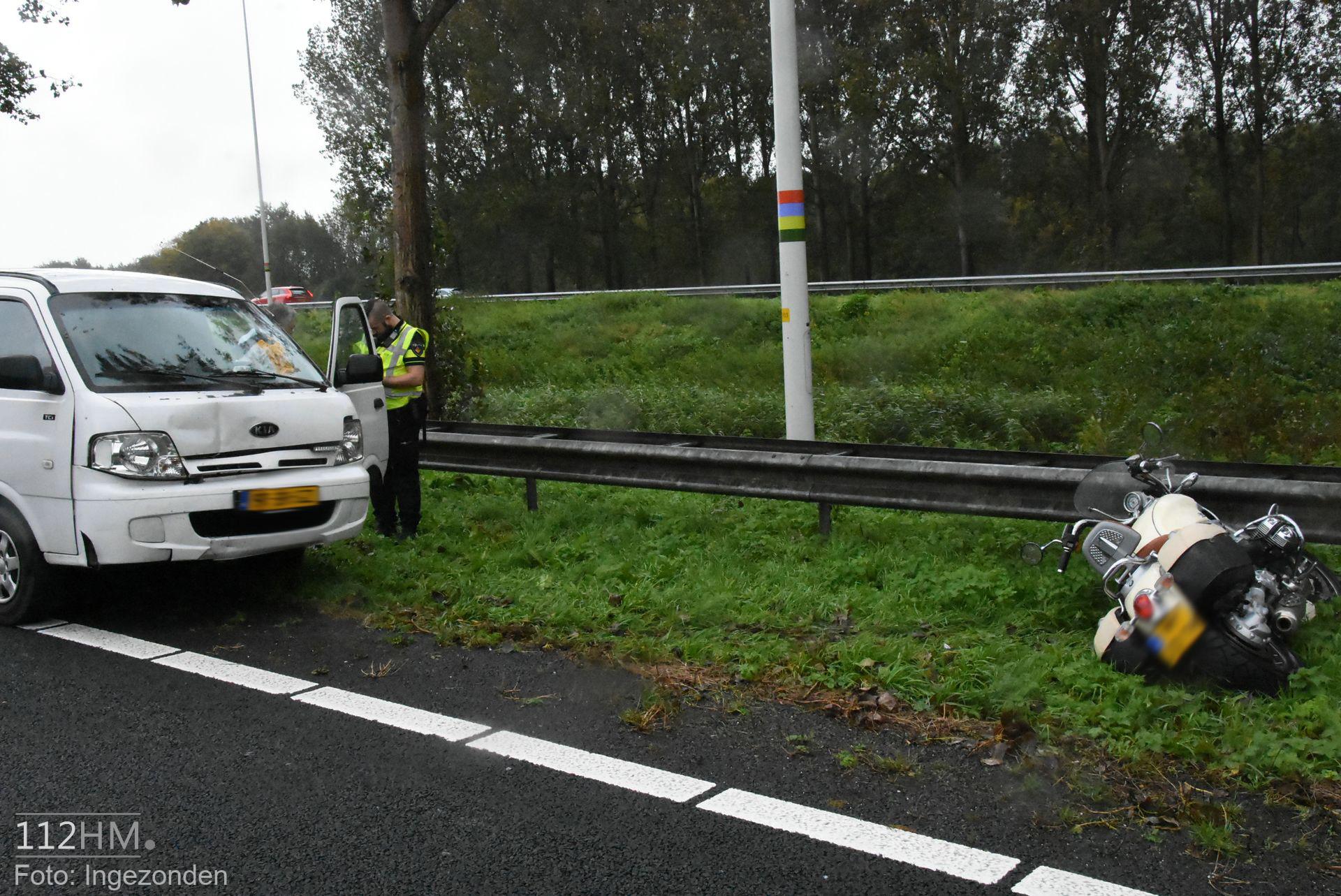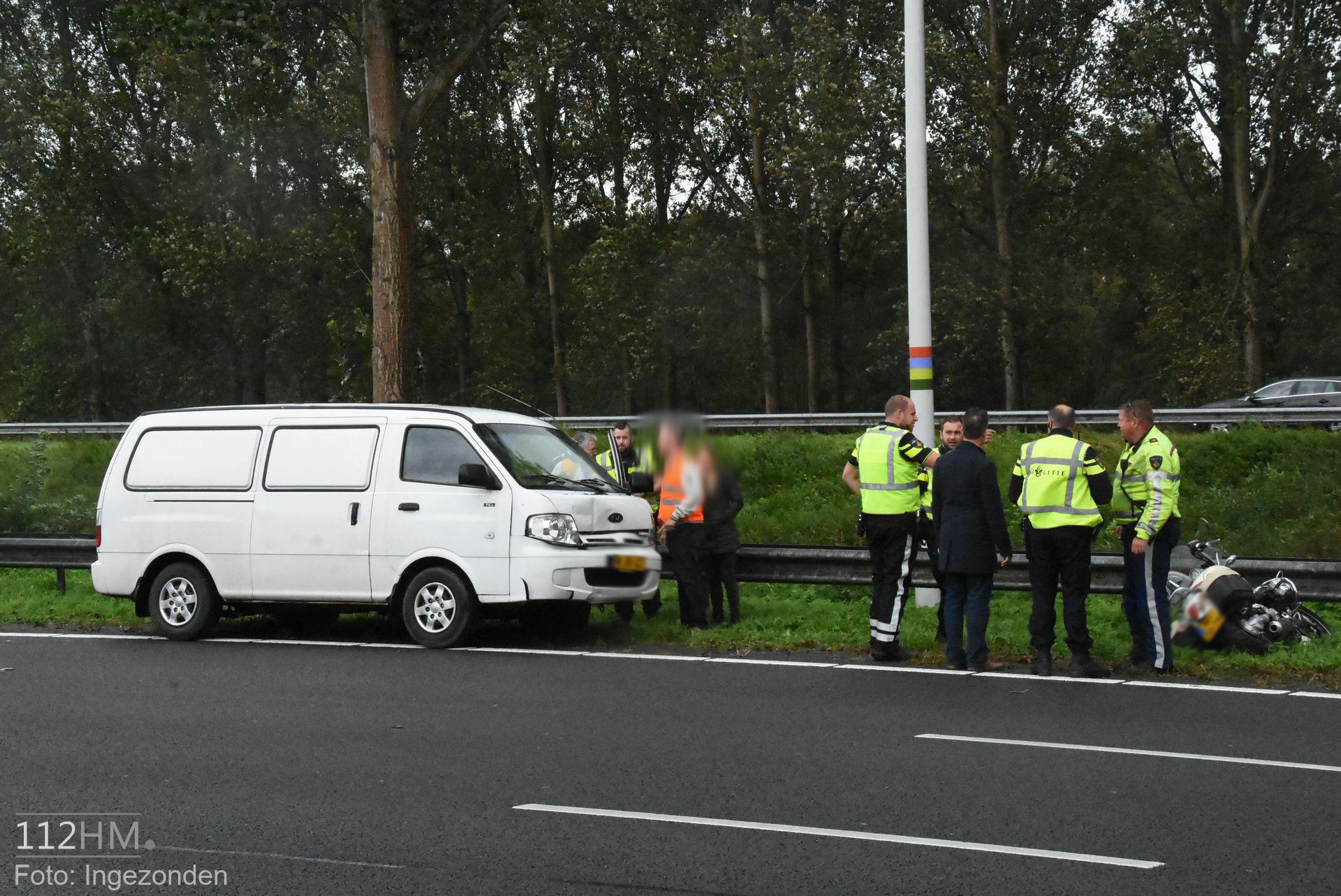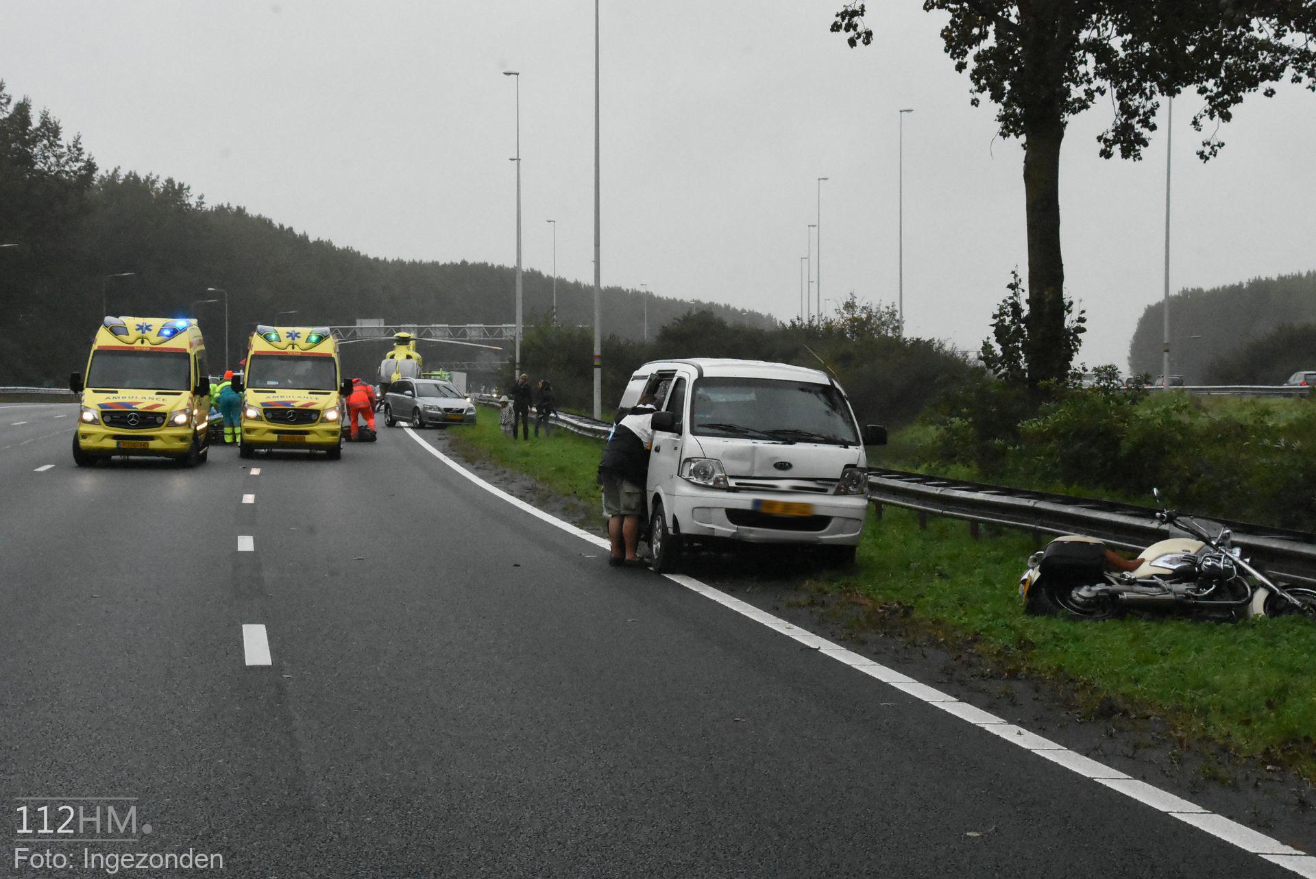 BODEGRAVEN – De hulpdiensten werden vanmiddag gealarmeerd voor een ernstig ongeval op de A12 bij Bodegraven even voor afslag Reeuwijk. Ter plaatse bleek er een ongeval te hebben plaats gevonden tussen een bestelbusje, een auto en en motorrijder.