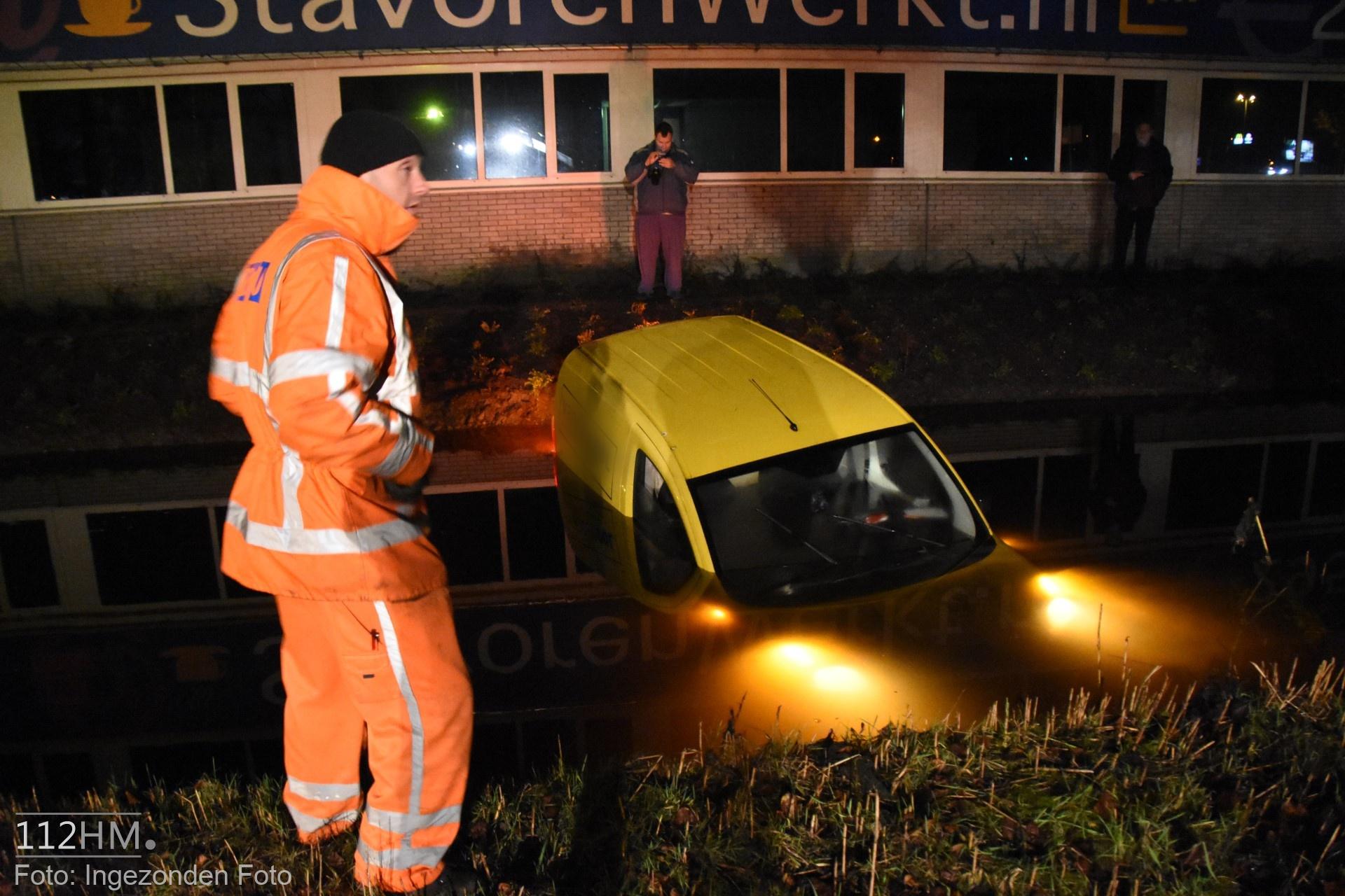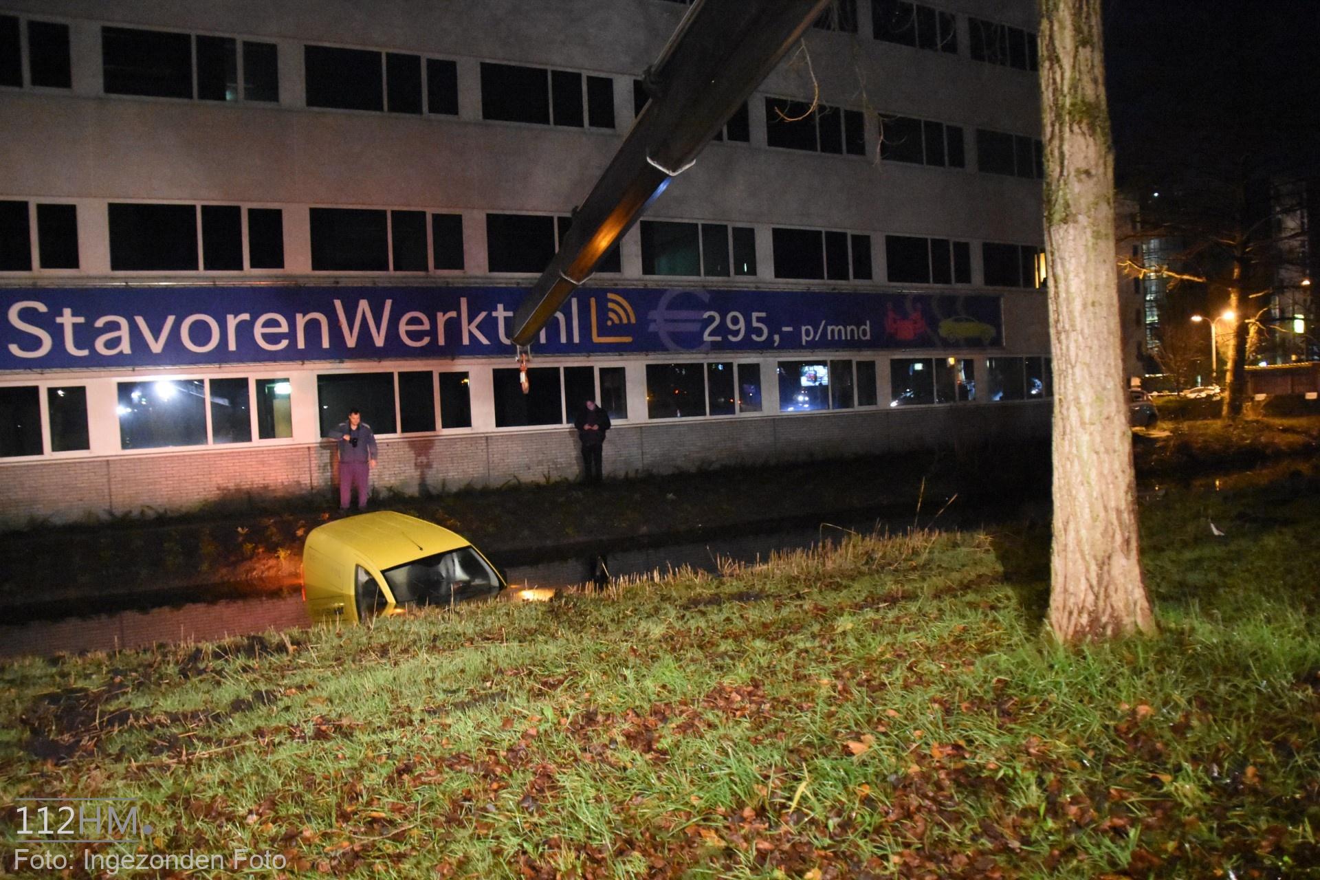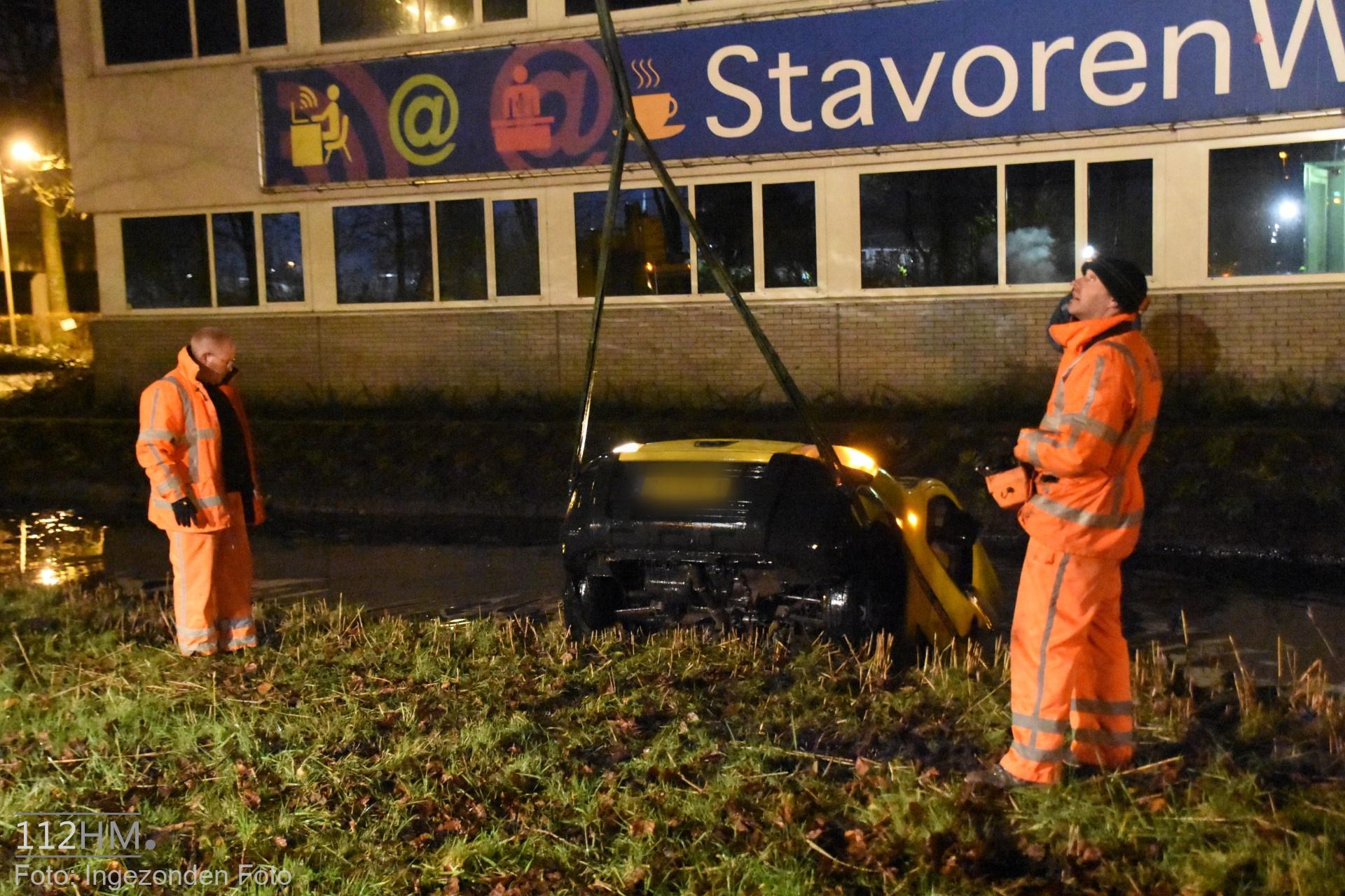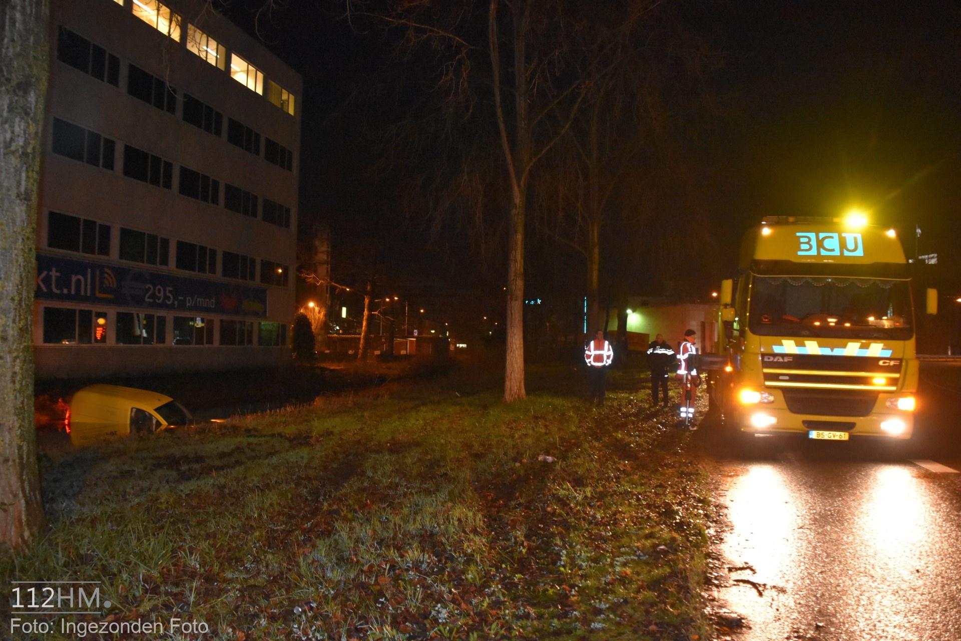 In de bocht van de Goudse Poort in de richting van de binnenstad bleek er een auto in de slip te zijn geraakt waardoor deze door de groenstrook is gegleden het water in. De bestuur kon zelfstandig en zonder verwondingen zijn voertuig verlaten.