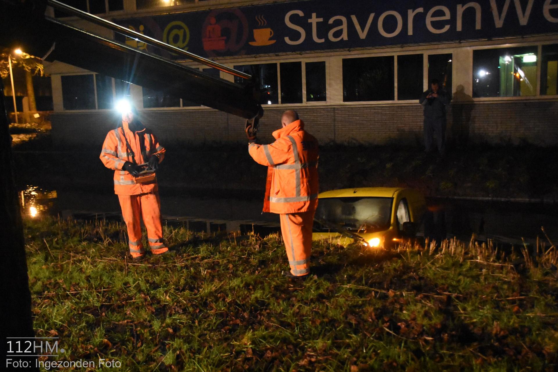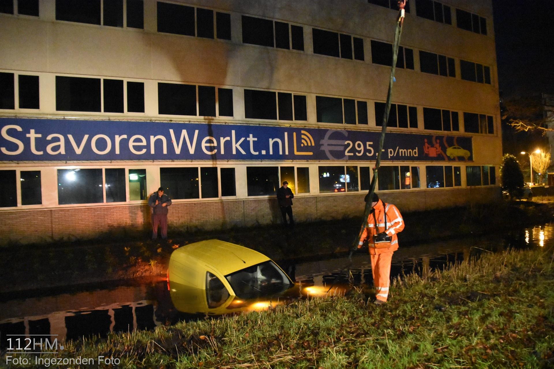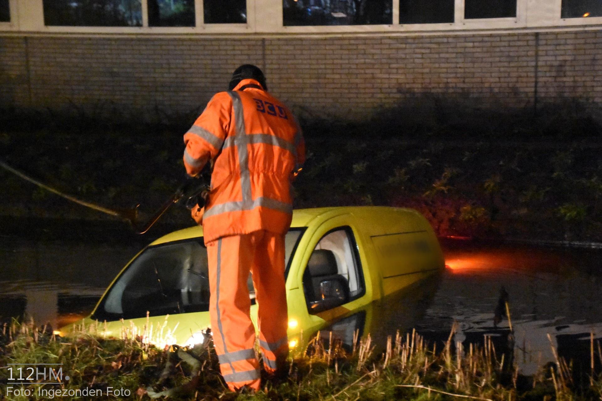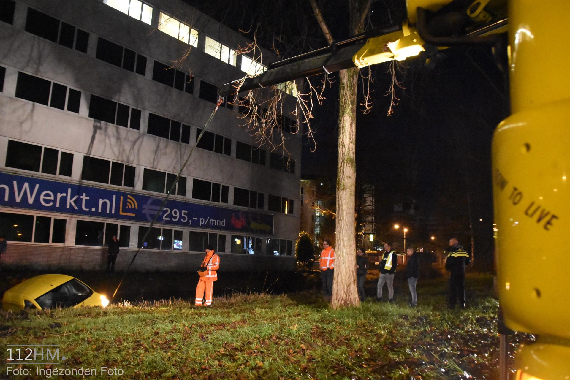 In de bocht van de Goudse Poort in de richting van de binnenstad bleek er een auto in de slip te zijn geraakt waardoor deze door de groenstrook is gegleden het water in. De bestuur kon zelfstandig en zonder verwondingen zijn voertuig verlaten.