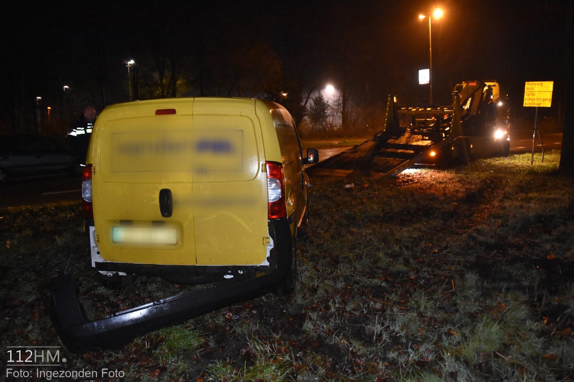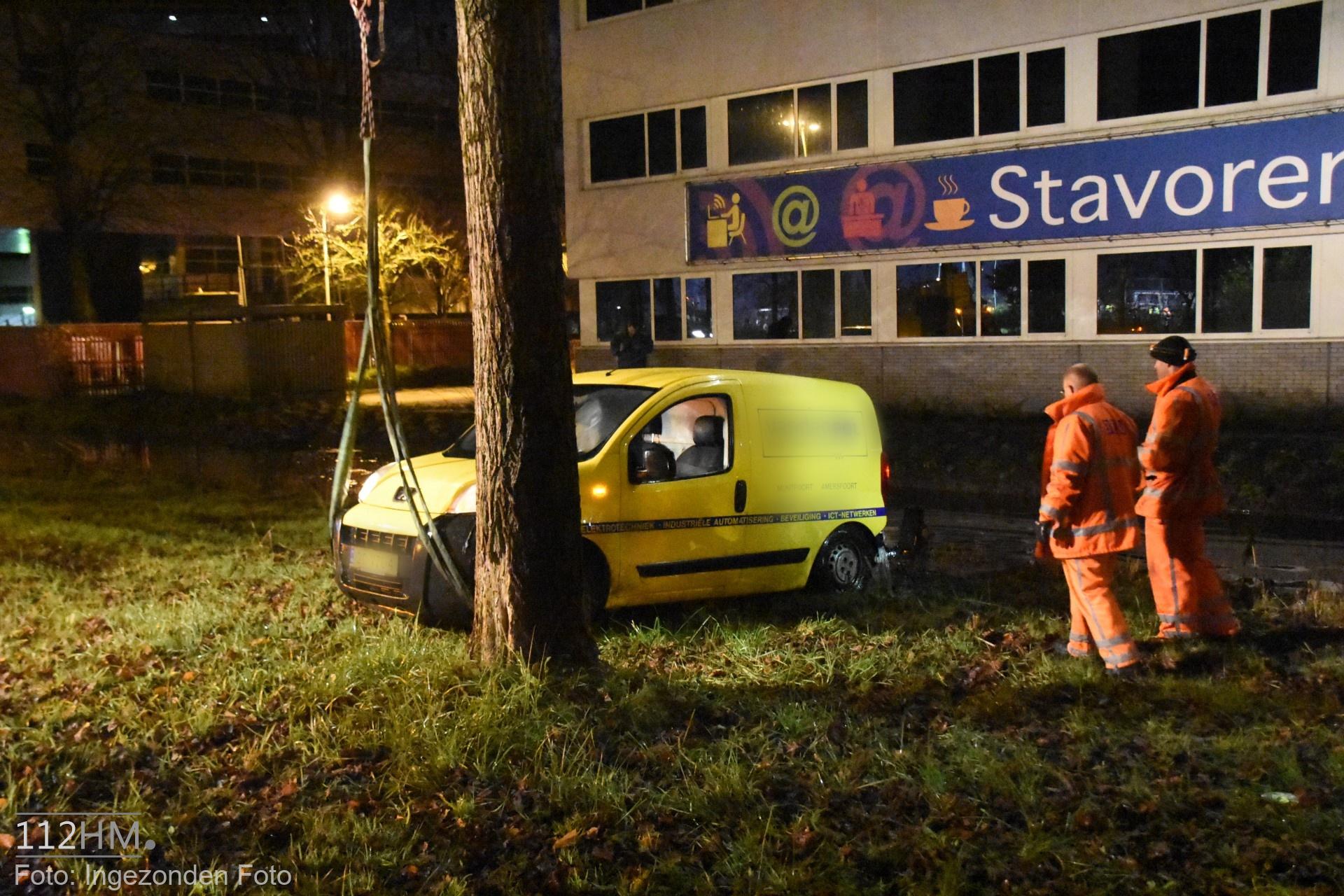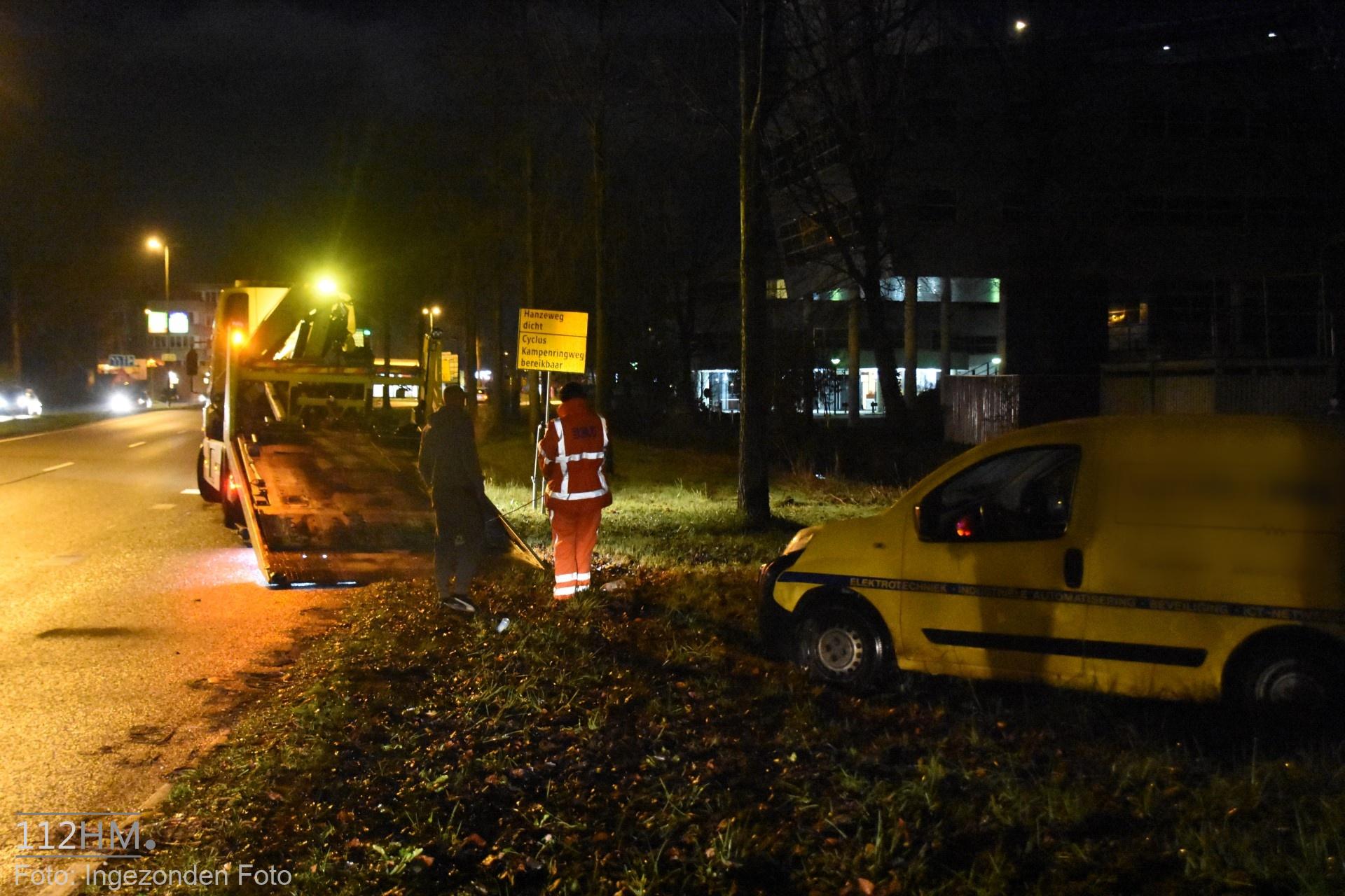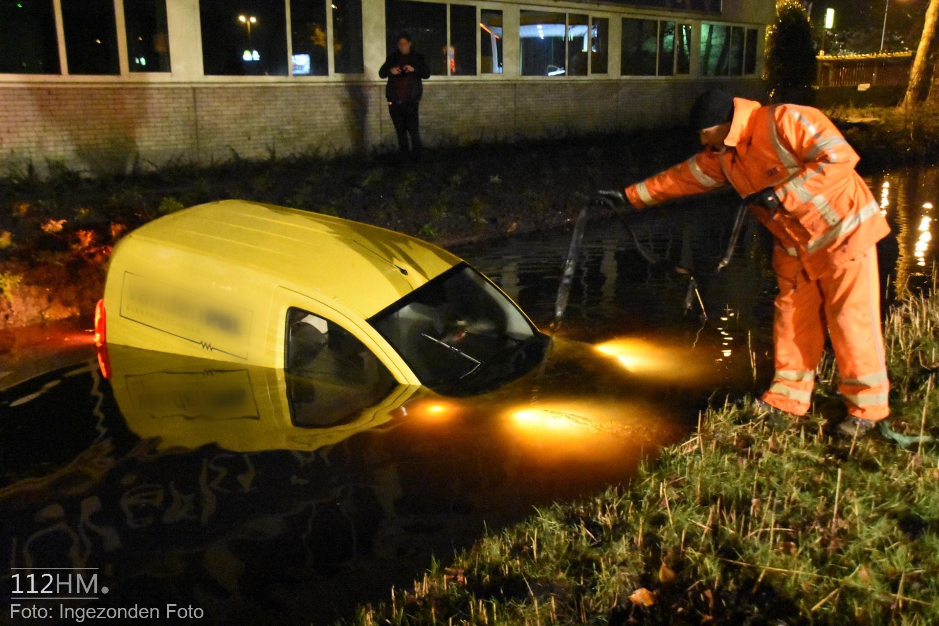 In de bocht van de Goudse Poort in de richting van de binnenstad bleek er een auto in de slip te zijn geraakt waardoor deze door de groenstrook is gegleden het water in. De bestuur kon zelfstandig en zonder verwondingen zijn voertuig verlaten.