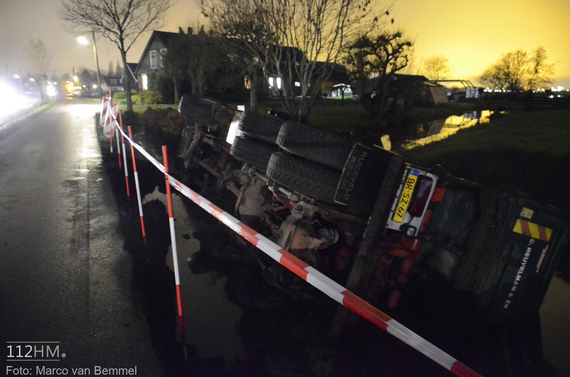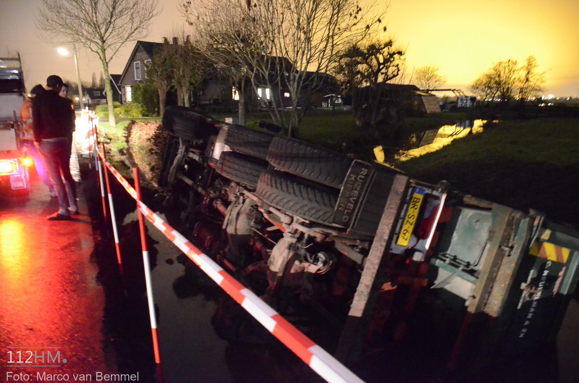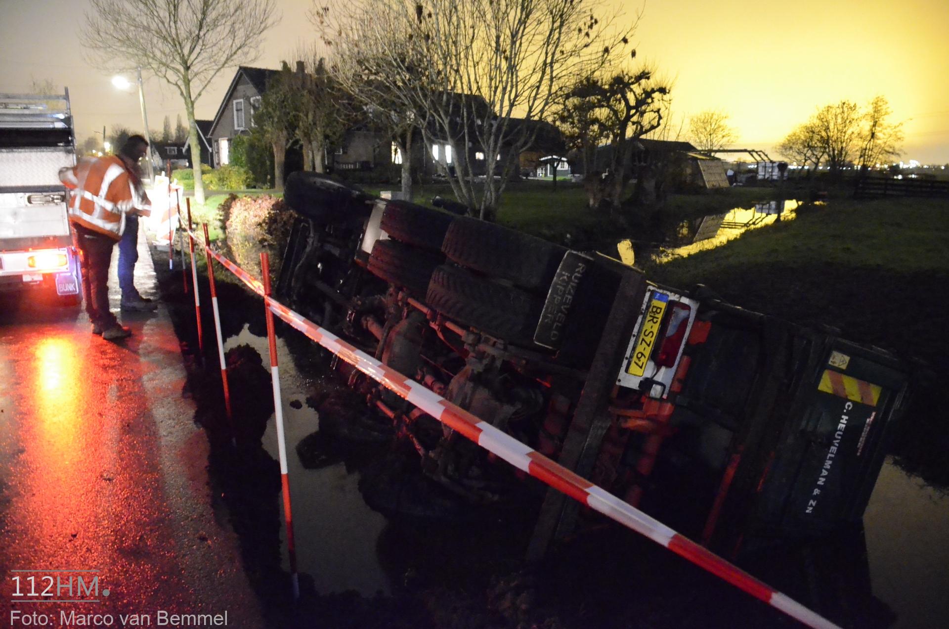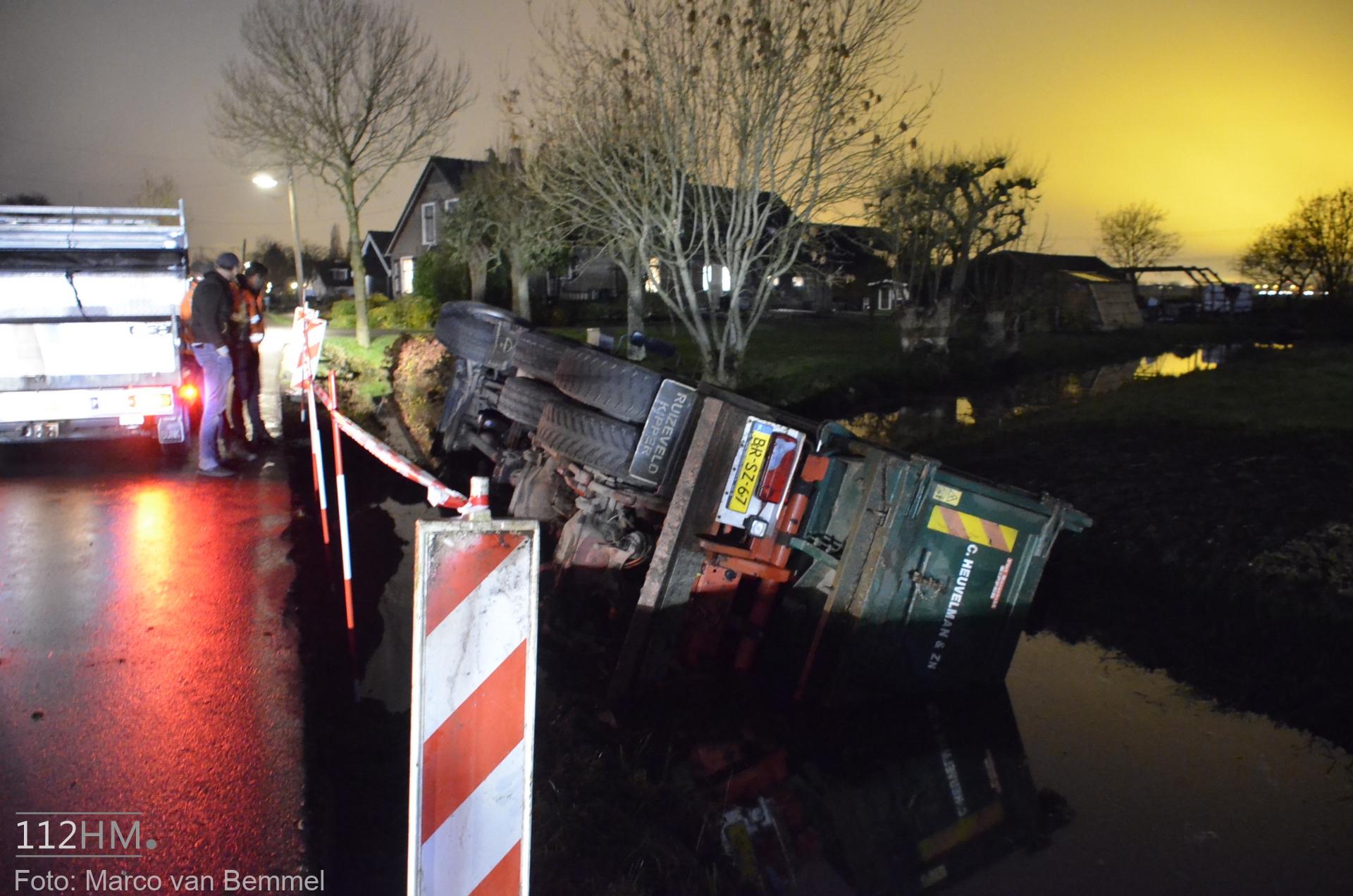 Een vrachtwagen bleek van de weg te zijn gekanteld waarna deze in de sloot terechtkwam. De chauffeur probeerde uit zijn cabine te klimmen maar het lukte niet. Omwonenden die het ongeval zagen gebeuren wisten met een ladder de cabine te bereiken en hielpen de chauffeur uit zijn benarde positie.