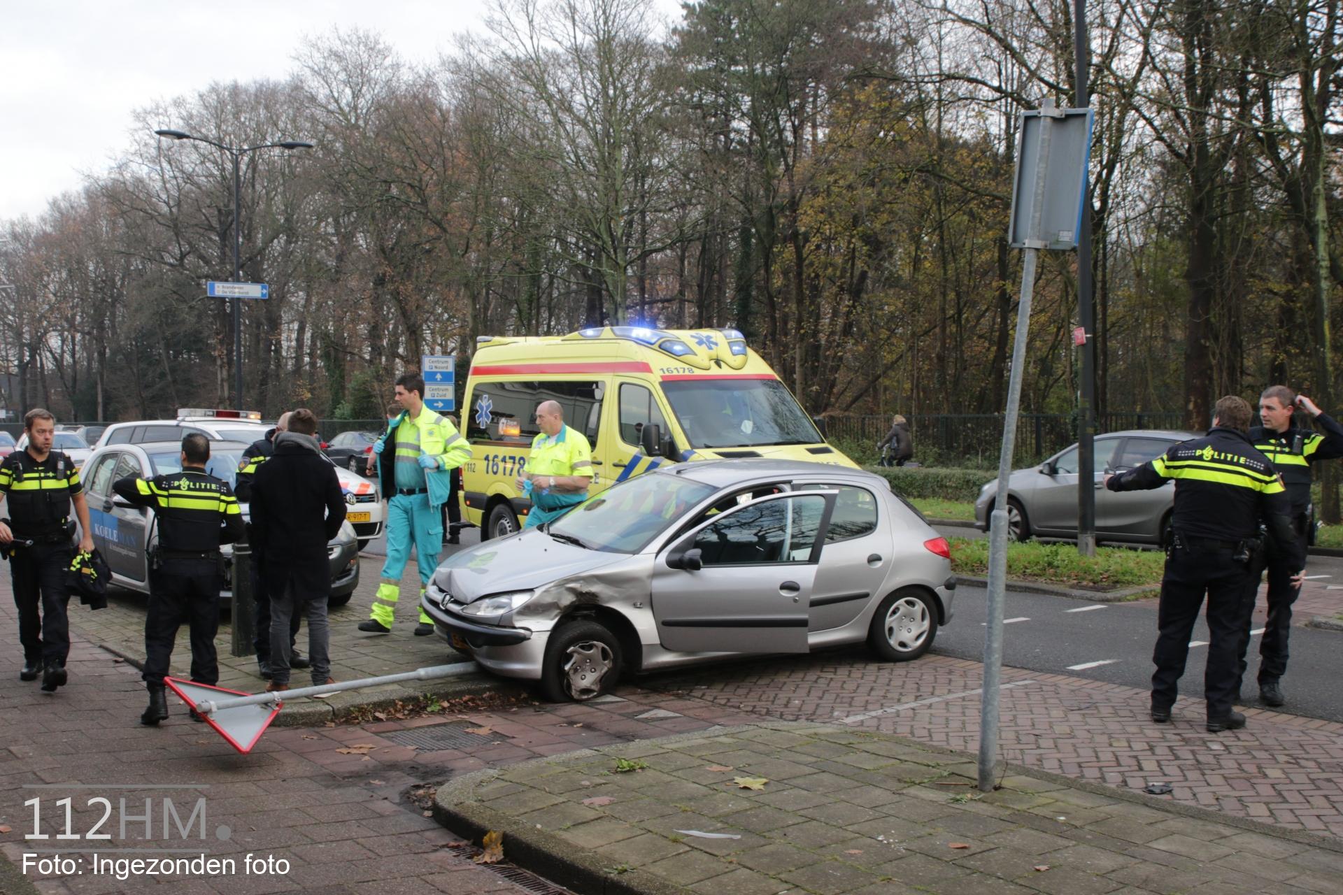 De bestuurder van de grijze personenauto wilde vanaf de Papelaan afslaan richting de Veurseweg toen hij tijdens het opdraaien werd aangereden door een personenauto welke al op de Veurseweg reed. Hierbij is het grijze voertuig dusdanig gedraaid dat er ook een verkeerspaal werd meegenomen. Het ambulancepersoneel heeft de betrokkene van het ongeval nagekeken, maan niemand raakte gewond.