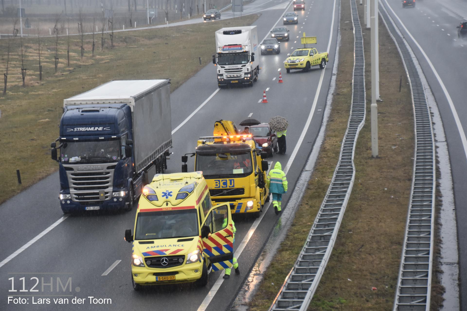 Het ambulancepersoneel heeft de inzittende gecontroleerd op verwondingen. Tijdens het incident is één rijstrook afgesloten geweest voor het verkeer. Dit leverde in de richting van Rotterdam enige vertraging op. Hoe het ongeval heeft kunnen gebeuren, is niet bekend.